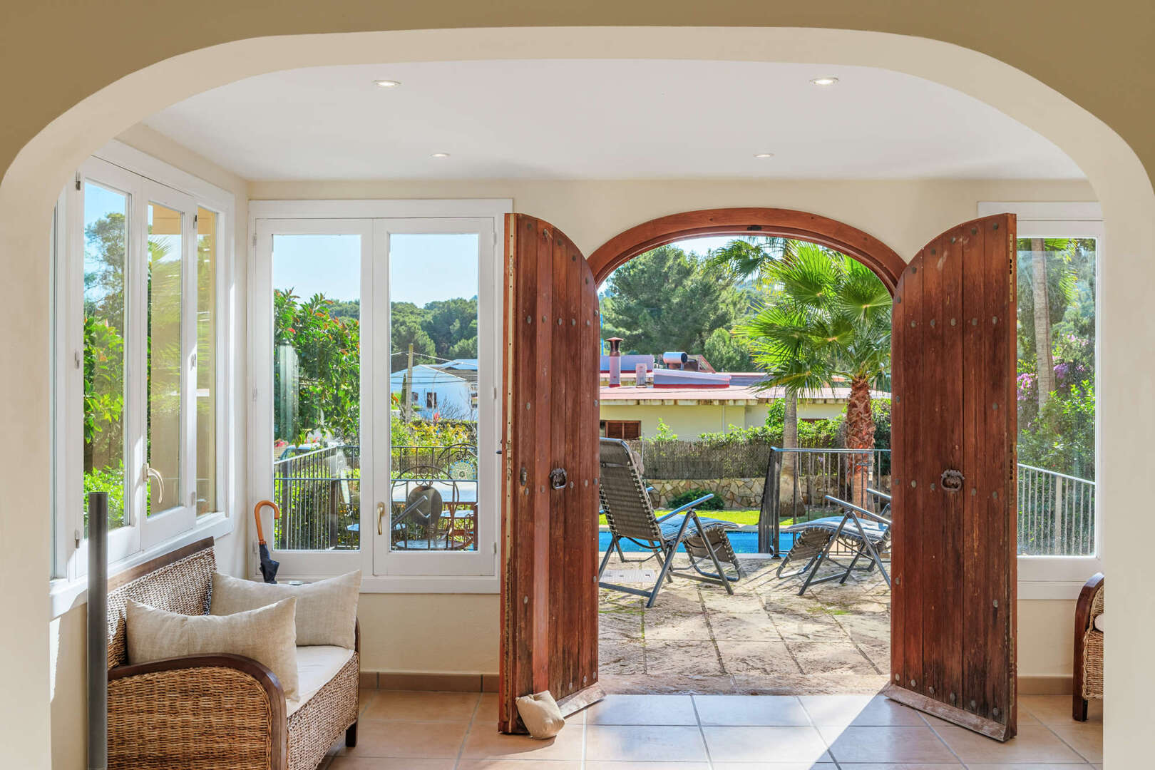 Este encantador bungalow está situado en una codiciada ubicación en las inmediaciones del puerto deportivo de Santa Ponsa. La amplia parcela llana de casi 1.300 m² ofrece mucho espacio para la relajación y la privacidad. Al entrar en la casa, le da la bienvenida un amplio hall de entrada, que crea una primera impresión acogedora. La cocina con comedor integrado se abre al exterior y permite un concepto de transición sin fisuras entre las zonas interiores y exteriores. Lo más destacado de la propiedad es la piscina privada, que invita a nadar y tomar el sol. Los tres dormitorios ofrecen tranquilas vistas al frondoso jardín y crean un ambiente relajado. La proximidad al puerto deportivo de Santa Ponsa hace que esta propiedad sea especialmente atractiva para los amantes de los deportes acuáticos y los propietarios de embarcaciones.