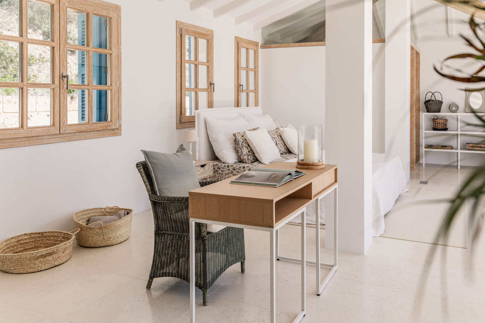 Una escalera ensanchada conduce a la planta superior, que ofrece un espacio de estar diáfano con techos impresionantemente altos. Hay otra zona para dormir en la galería, así como un acogedor escritorio para trabajar o leer. El cuarto de baño es espacioso y cuenta con una ducha a ras de suelo para mayor comodidad. La amplia terraza exterior con impresionantes vistas al mar invita a relajarse y tomar el sol. Una práctica cocina americana proporciona comodidad adicional para preparar comidas y bebidas directamente in situ.