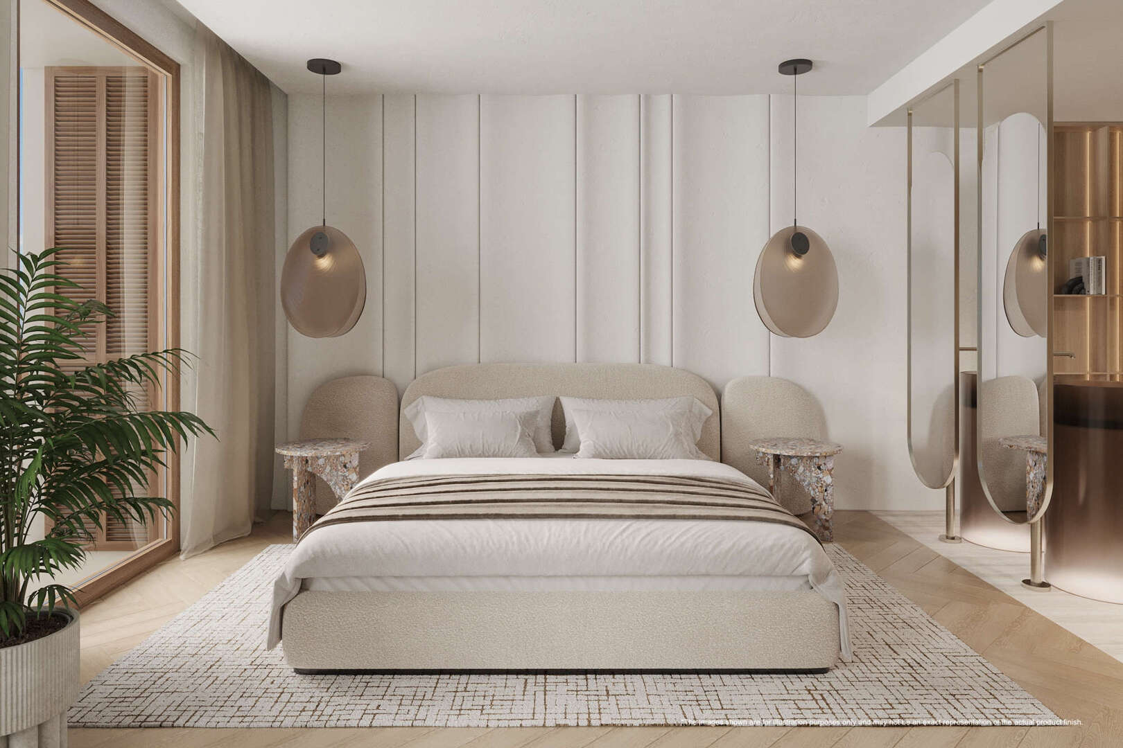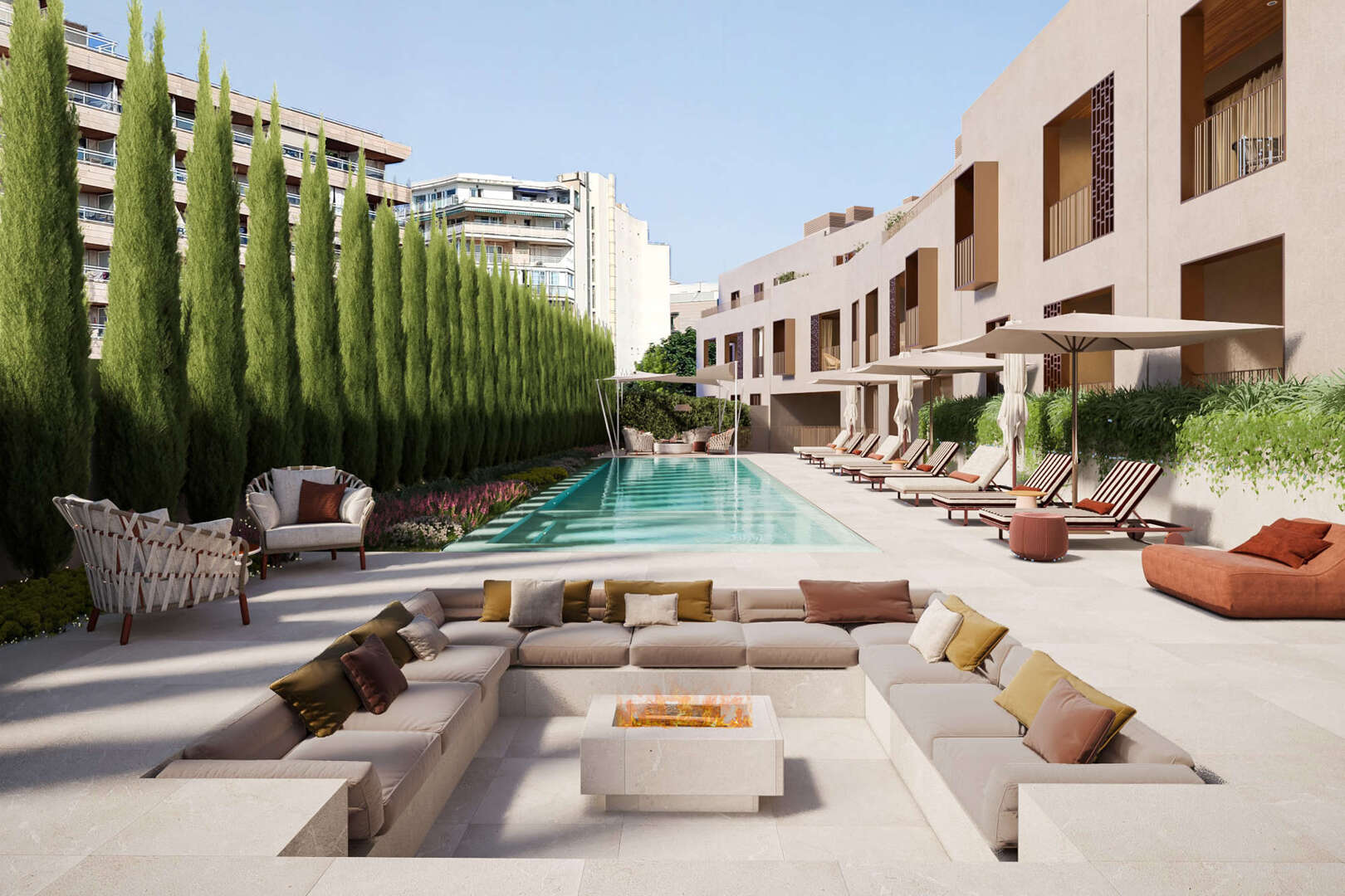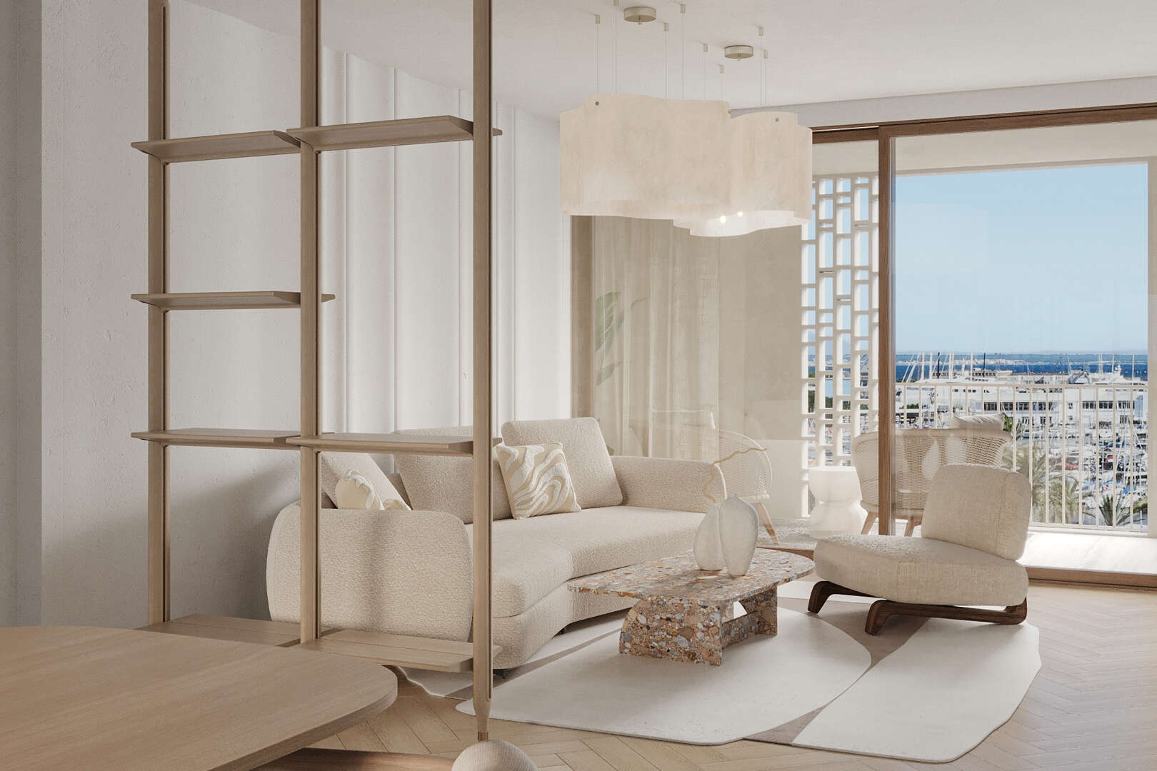 57 pisos de uno, dos y tres dormitorios, incluidos espectaculares áticos en la última planta y pisos en la planta baja con jardín y acceso privado a su propio garaje. Varían entre 120 y 400 metros cuadrados, incluida una villa privada de 850 metros cuadrados. Las diferentes tipologías incluyen: Dúplex con jardín y aparcamiento privado, pisos con doble terraza y los áticos Jonquet. Todos están equipados con modernos electrodomésticos y tecnología punta y ofrecen unas vistas excepcionales de la puesta de sol sobre el Marítimo.