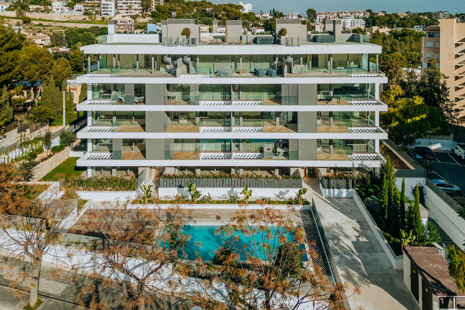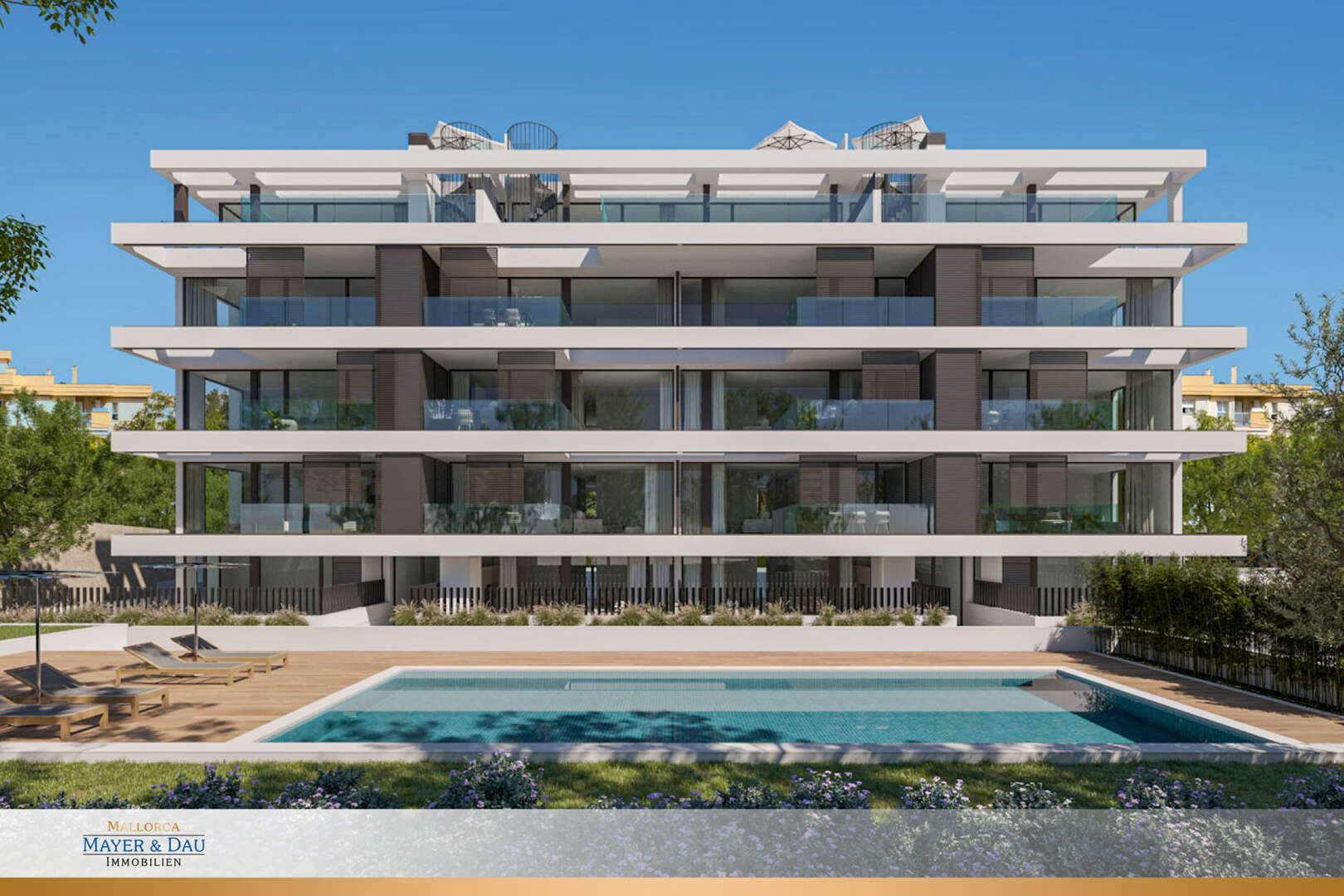 El edificio no sólo impresiona por su diseño estético, sino también por su estudiado concepto de confort y sostenibilidad. El jardín central con piscina proporciona relajación y un ambiente idílico. El uso de materiales exclusivos y duraderos y la planificación detallada ofrecen una experiencia de vida lujosa al más alto nivel.