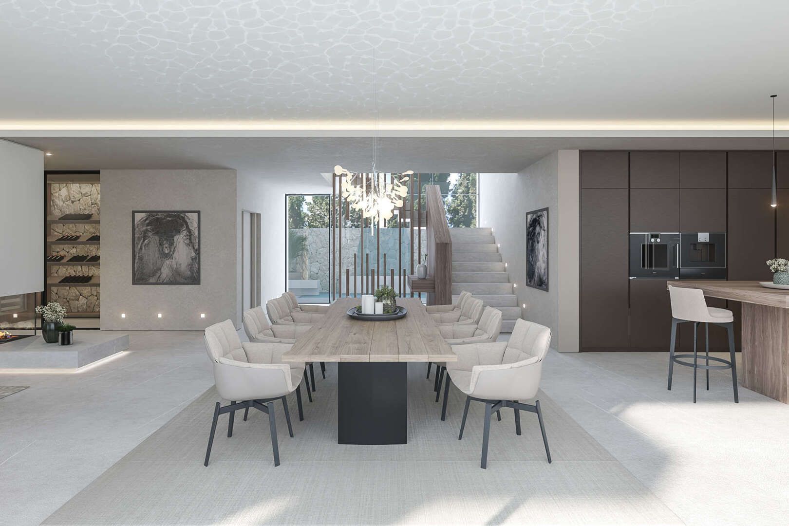 La sostenibilidad desempeña un papel fundamental: un sistema fotovoltaico de 30 kW con almacenamiento garantiza un suministro de energía eficiente y respetuoso con el medio ambiente. La villa estará equipada con un exclusivo diseño interior de **Terraza Balear**, que sintoniza perfectamente con el estilo de vida mediterráneo y enfatiza el ambiente de lujo.