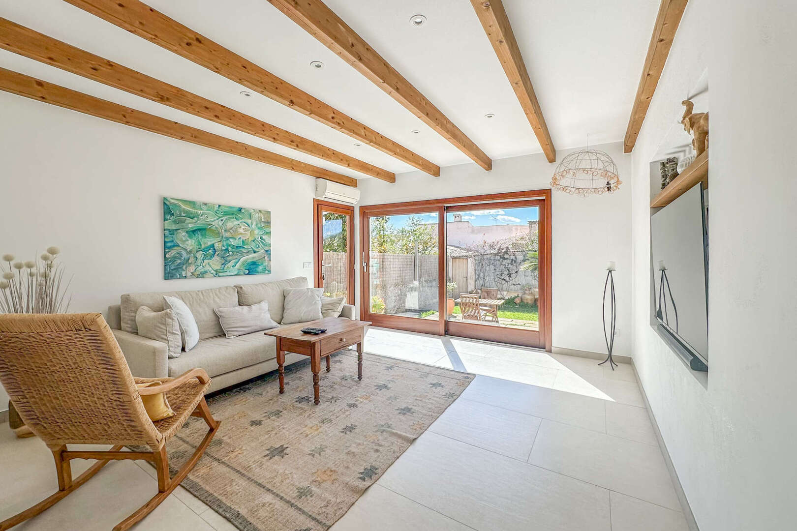 El adosado está situado en una zona tranquila pero céntrica, a poca distancia de restaurantes, tiendas y el mercado semanal de Capdepera. La construcción típica mallorquina, combinada con elementos modernos, confiere a esta propiedad un encanto muy especial.