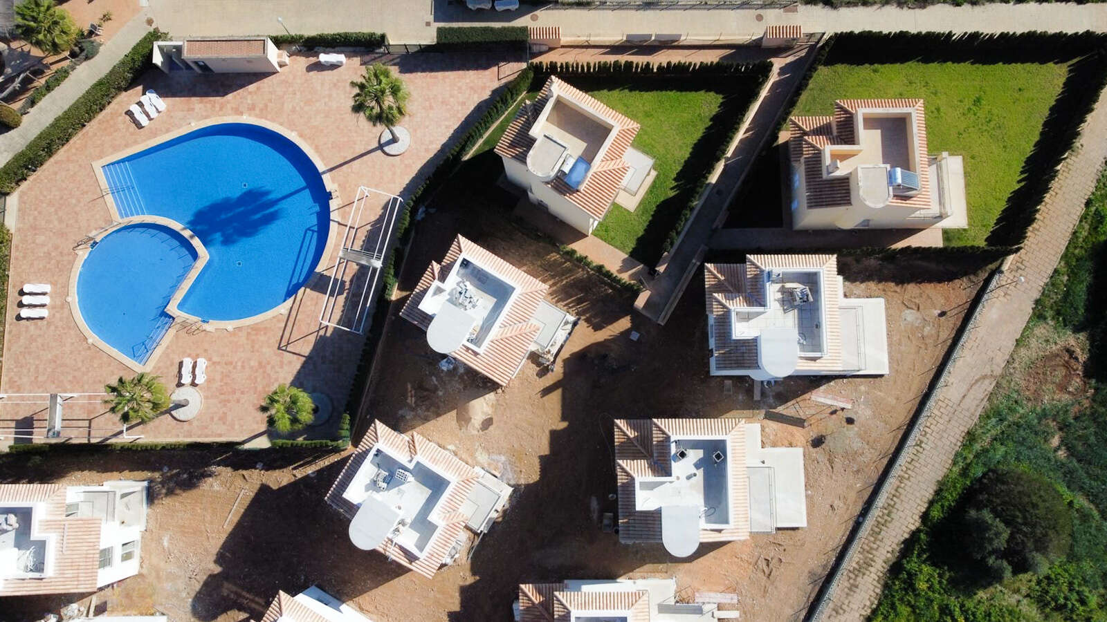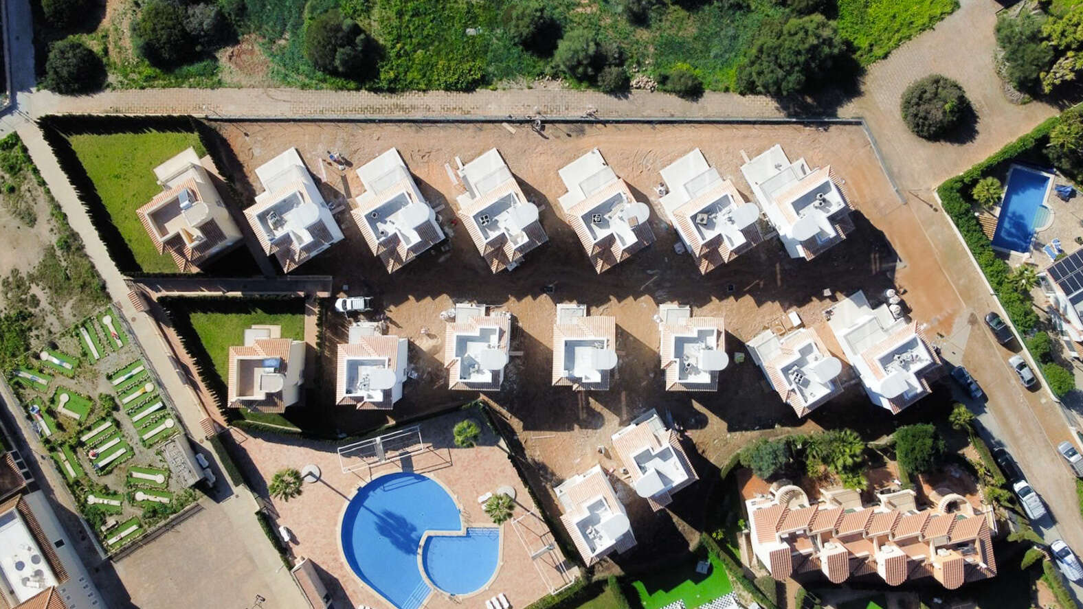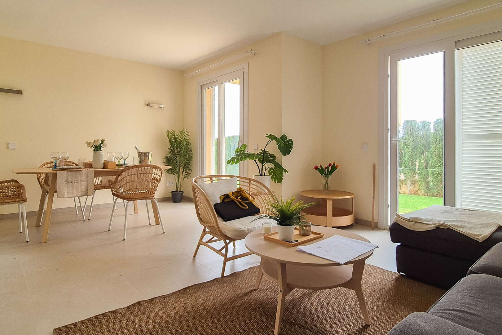 Estos chalets independientes se encuentran en el cuidado complejo residencial "El Paraíso" en Sa Vinyola, cerca de Sa Rápita en el sur de la isla, a sólo unos dos kilómetros de la playa natural de Es Trenc. El complejo consta de 16 villas independientes de dos plantas, dos terrazas y una azotea. Todas las villas ofrecen hermosas vistas al mar. Hay dos tipos de construcción: 96 m² con dos dormitorios y dos baños y 126 m² con tres dormitorios y tres baños. Las instalaciones comunitarias incluyen dos piscinas, pistas de tenis, un campo de minigolf, zonas verdes y un restaurante. Calefacción por suelo radiante, aire acondicionado y una moderna cocina totalmente equipada garantizan el confort.