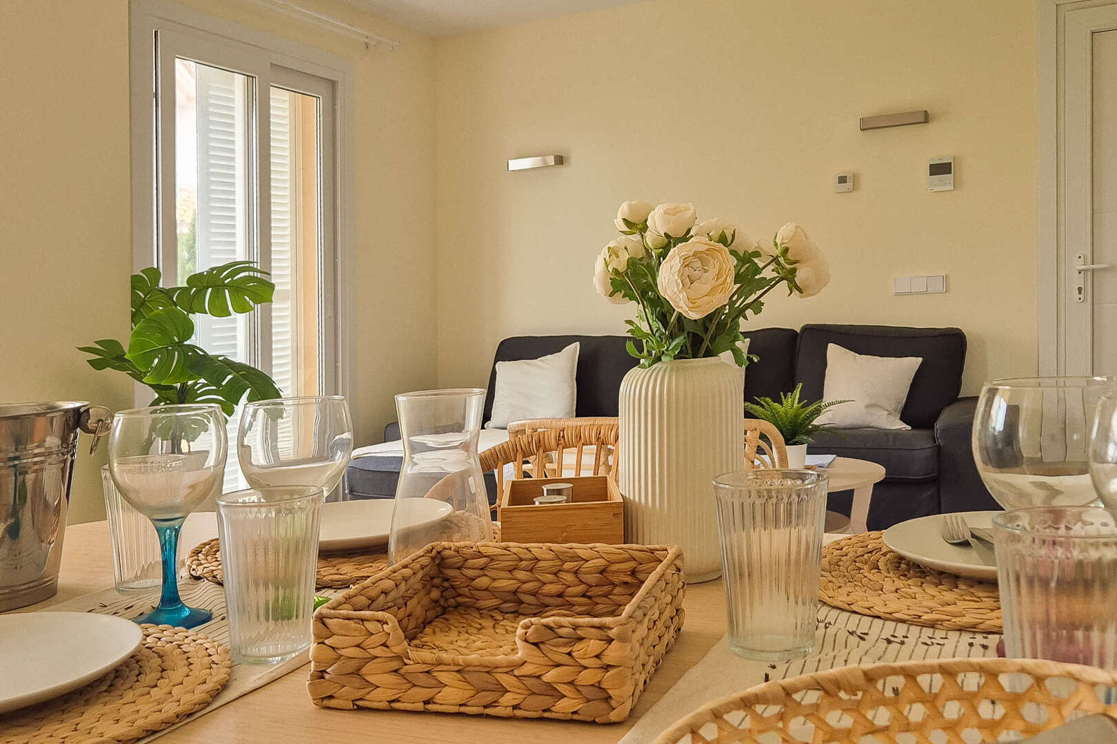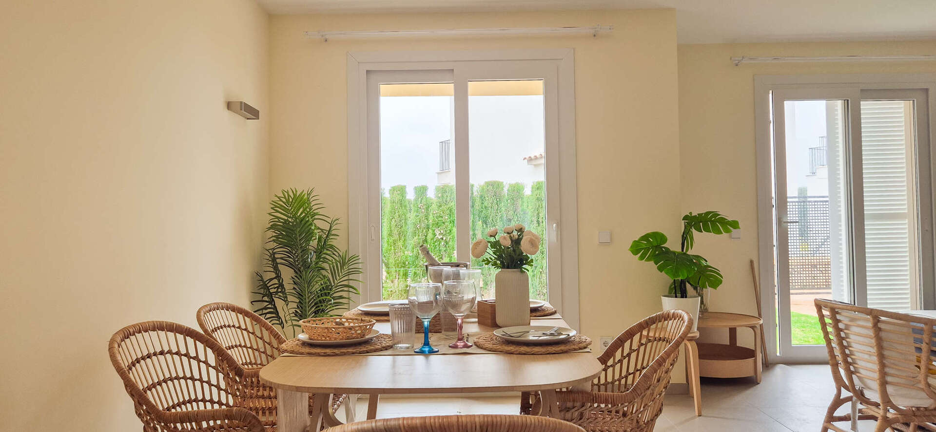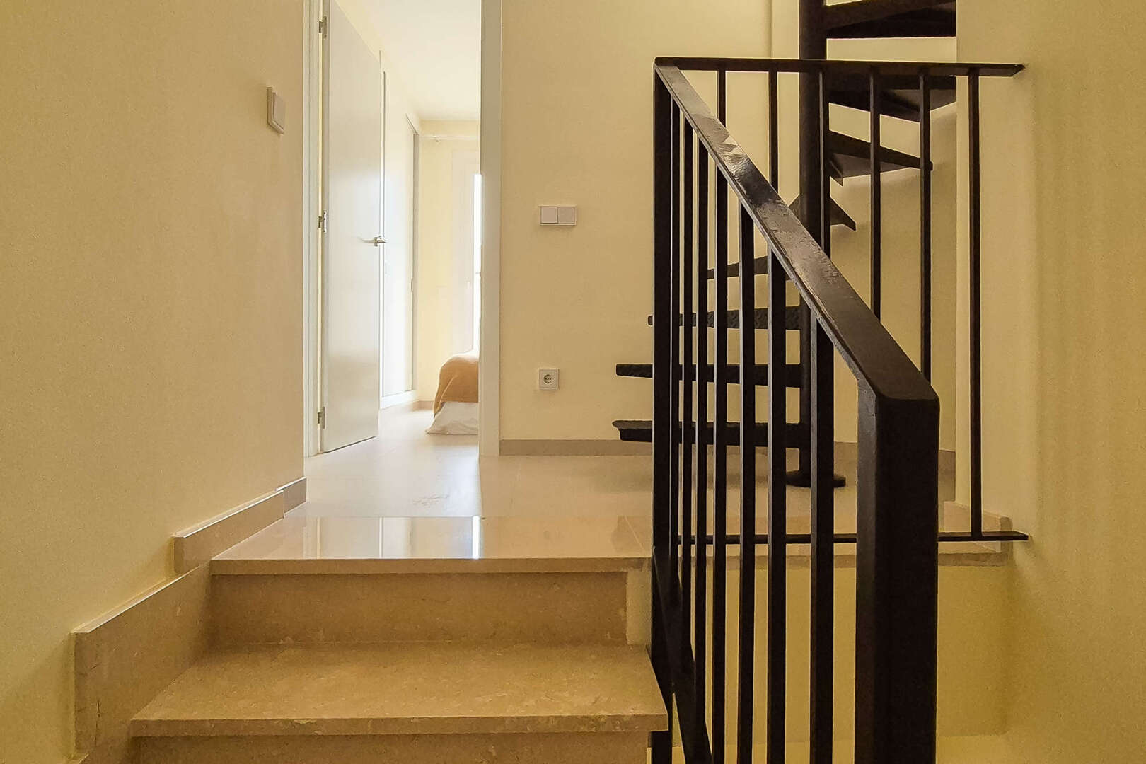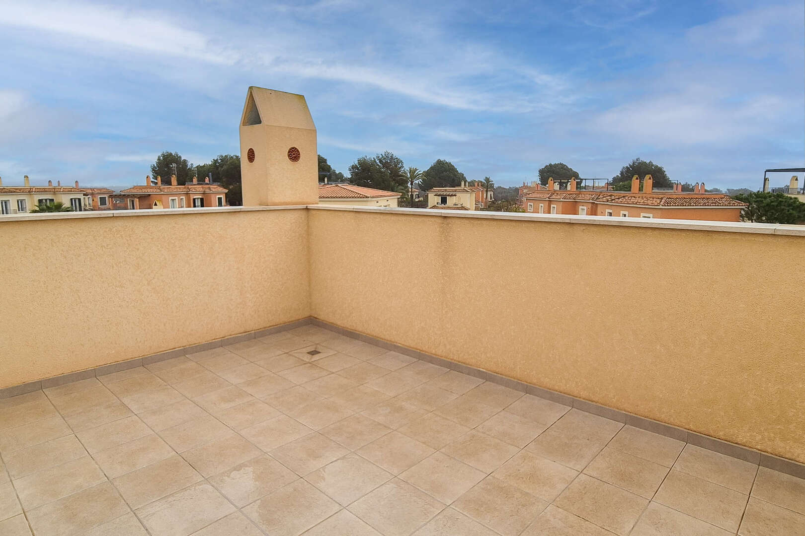 Estos chalets independientes se encuentran en el cuidado complejo residencial "El Paraíso" en Sa Vinyola, cerca de Sa Rápita en el sur de la isla, a sólo unos dos kilómetros de la playa natural de Es Trenc. El complejo consta de 16 villas independientes de dos plantas, dos terrazas y una azotea. Todas las villas ofrecen hermosas vistas al mar. Hay dos tipos de construcción: 96 m² con dos dormitorios y dos baños y 126 m² con tres dormitorios y tres baños. Las instalaciones comunitarias incluyen dos piscinas, pistas de tenis, un campo de minigolf, zonas verdes y un restaurante. Calefacción por suelo radiante, aire acondicionado y una moderna cocina totalmente equipada garantizan el confort.