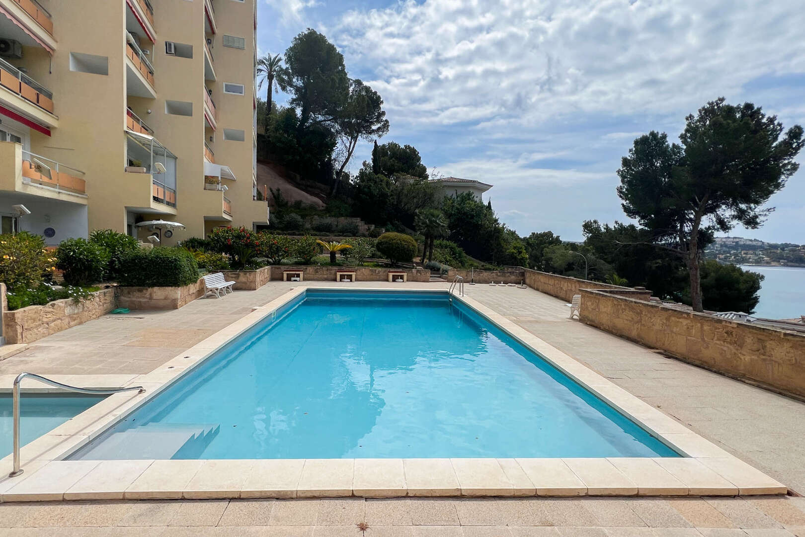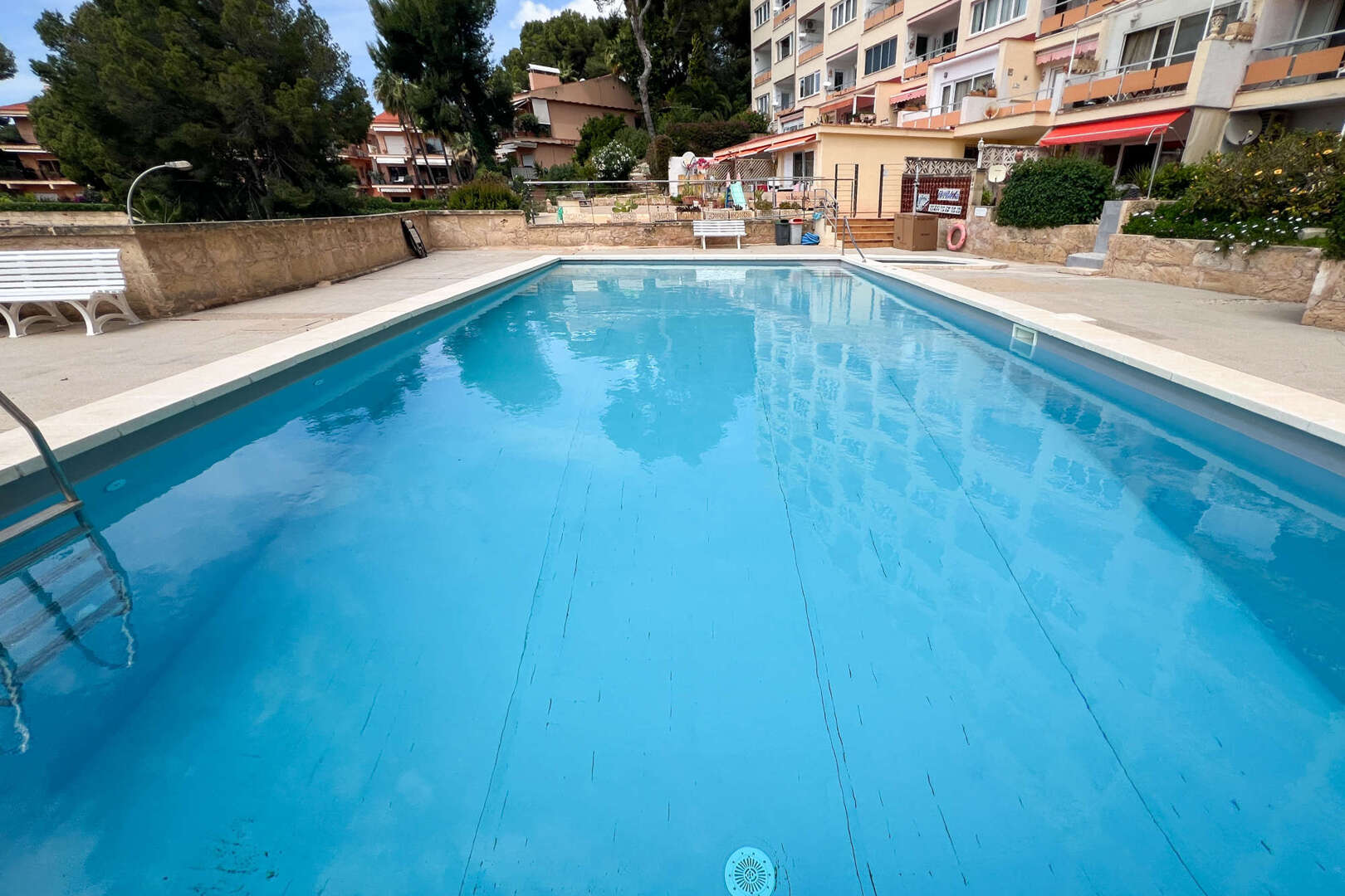 El edificio, construido en 1973, cuenta con una gran piscina comunitaria con vistas panorámicas al mar, ideal para disfrutar del clima mediterráneo. Costa de la Calma es una de las zonas más tranquilas de la isla, ideal para aquellos que buscan un retiro lejos del ajetreo y el bullicio, pero todavía cerca de todo lo que necesitan. La propiedad está cerca de playas y calas de aguas cristalinas, restaurantes, supermercados y otros servicios, por lo que es un lugar perfecto para vivir todo el año o pasar unas vacaciones.