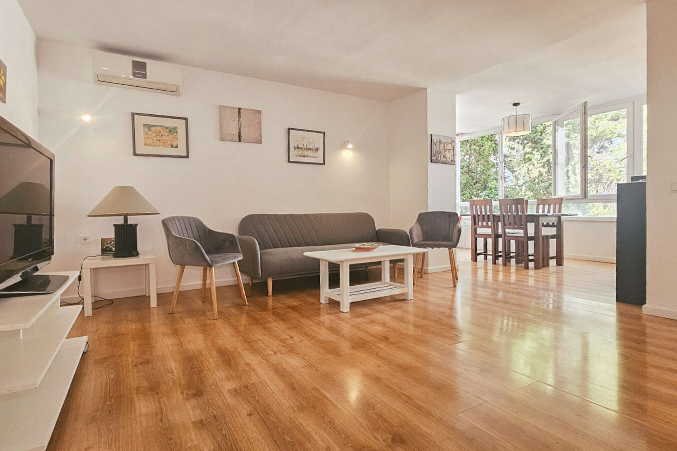 La pieza central del piso es el salón-comedor de planta abierta, que recibe mucha luz natural a través de grandes ventanales y crea un agradable ambiente de vida. Desde aquí se accede al soleado balcón, que invita a disfrutar del aire libre, ideal para desayunar con vistas a la vegetación o relajarse por la noche.