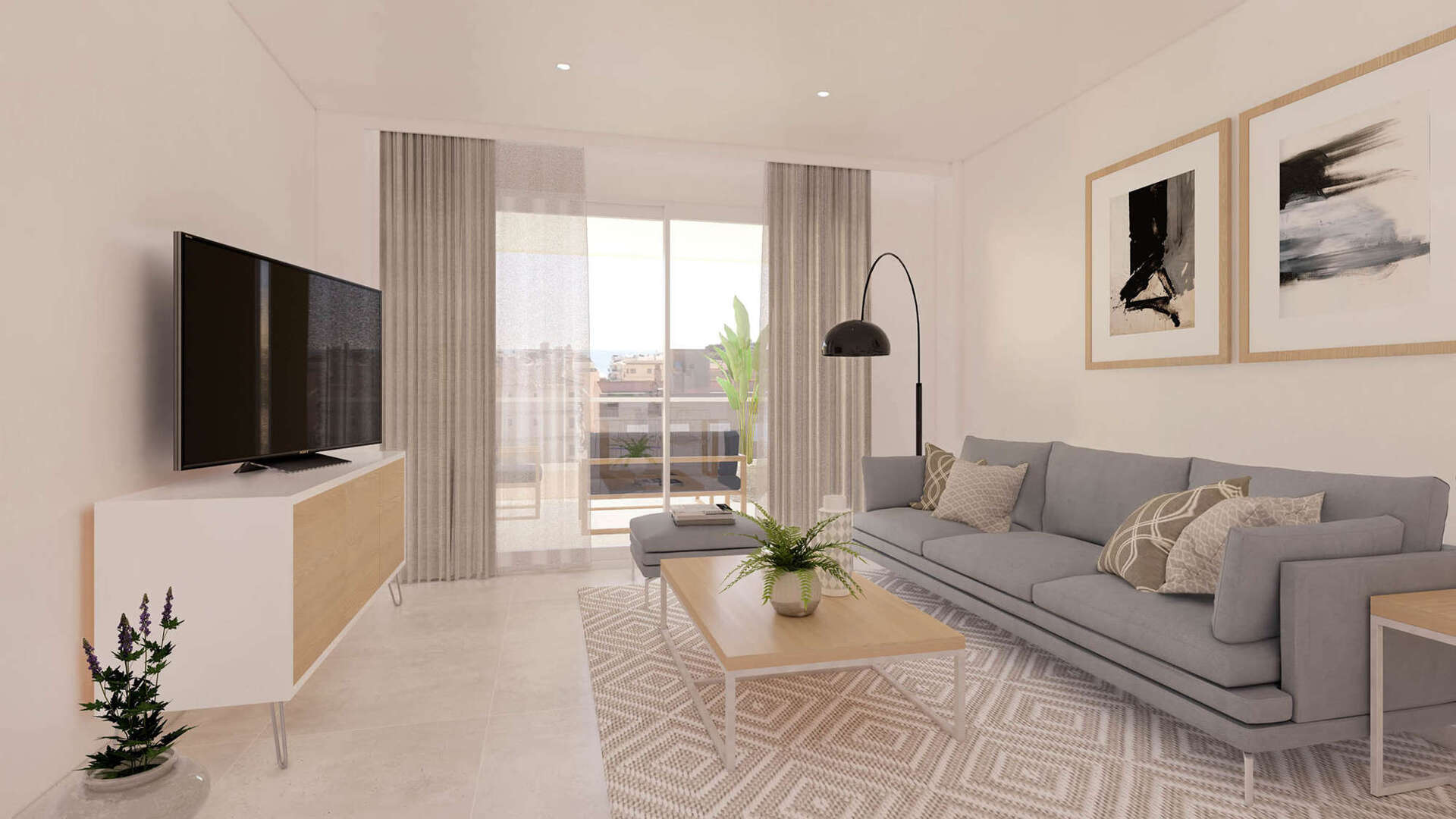 Este atractivo piso ofrece una vida cómoda y moderna en un espacio generoso. Tiene dos dormitorios luminosos, proporcionando un amplio espacio para familias y parejas. Los dos cuartos de baño proporcionan comodidad y conveniencia adicionales. El salón-comedor-cocina de planta abierta es la pieza central del piso e invita a relajarse, cocinar y socializar. La moderna cocina tiene un diseño funcional y se integra armoniosamente en la espaciosa estancia.