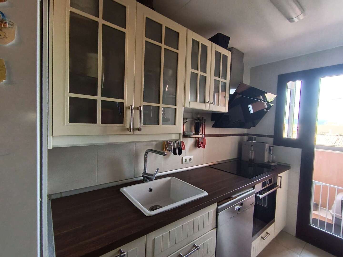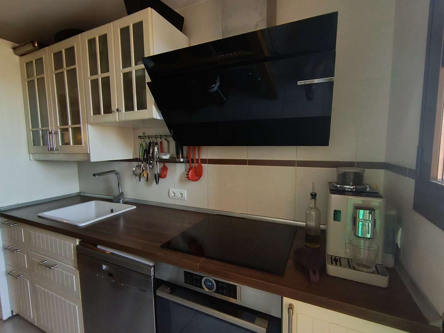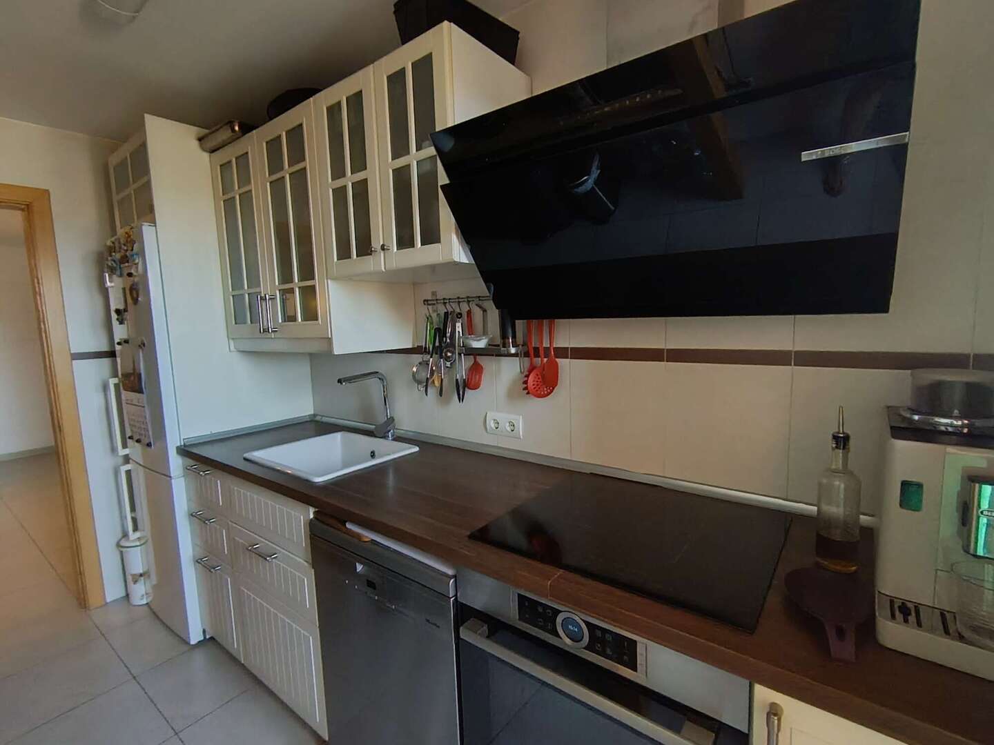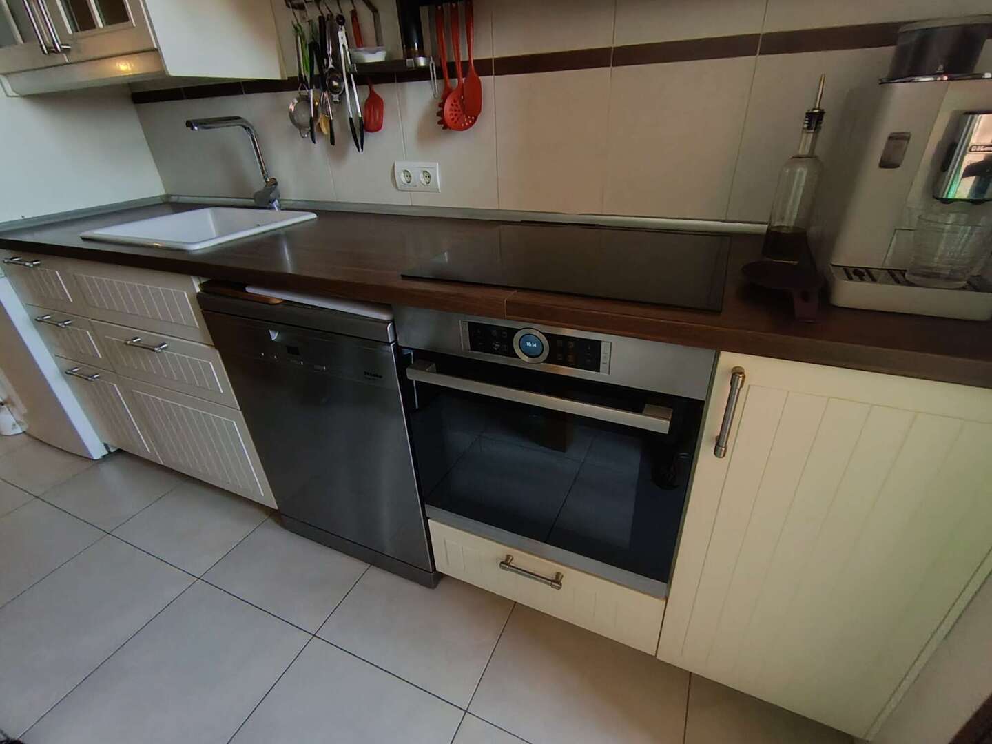 La cocina independiente, totalmente equipada, combina funcionalidad con un diseño atemporal y ofrece mucho espacio de almacenamiento. La cocina independiente, totalmente equipada, combina la funcionalidad con un diseño atemporal y ofrece mucho espacio de almacenamiento, que se complementa con un práctico lavadero al que se accede directamente, ideal para una lavadora, una secadora y espacio de almacenamiento adicional.