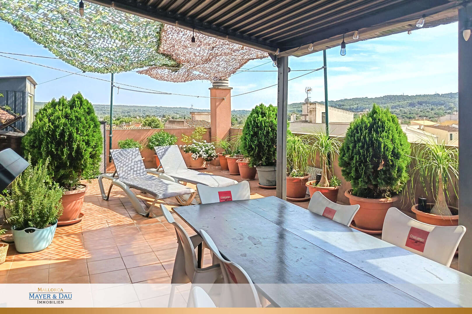 Un verdadero punto culminante le espera sólo una planta más arriba: su azotea privada con impresionantes vistas panorámicas. Aquí podrá disfrutar de inolvidables puestas de sol, acogedoras veladas con amigos o, simplemente, de un merecido descanso en lo alto de los tejados.