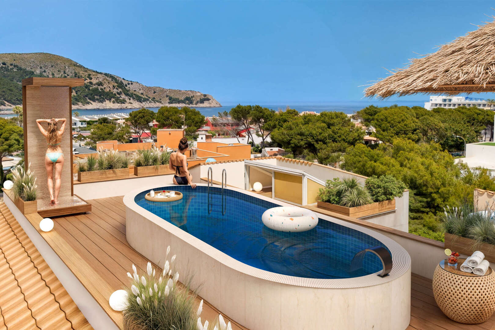 Genießen Sie von Ihrem privaten Pool auf der Dachterrasse den Sonnenuntergang hinter den Bergen der Cala Agulla...mehr geht nicht!