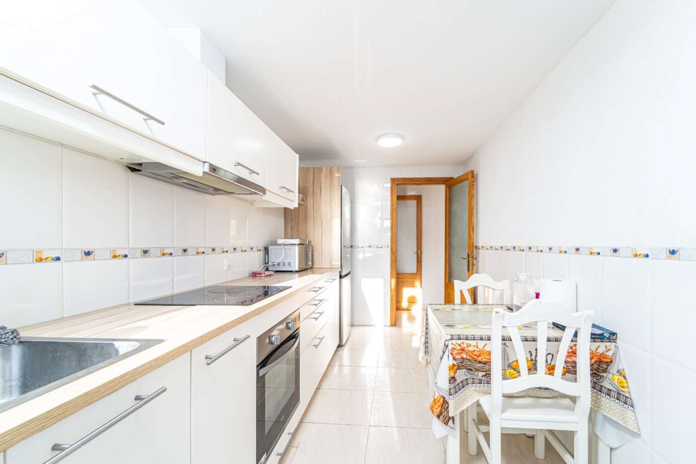El amplio salón-comedor impresiona por su diseño diáfano y su acceso directo a un soleado balcón desde el que podrá disfrutar de las vistas de los pintorescos alrededores de Artà. La moderna cocina amueblada y equipada con electrodomésticos de alta calidad es el lugar ideal para quienes disfrutan cocinando y quieren formar parte de la vida familiar al mismo tiempo.