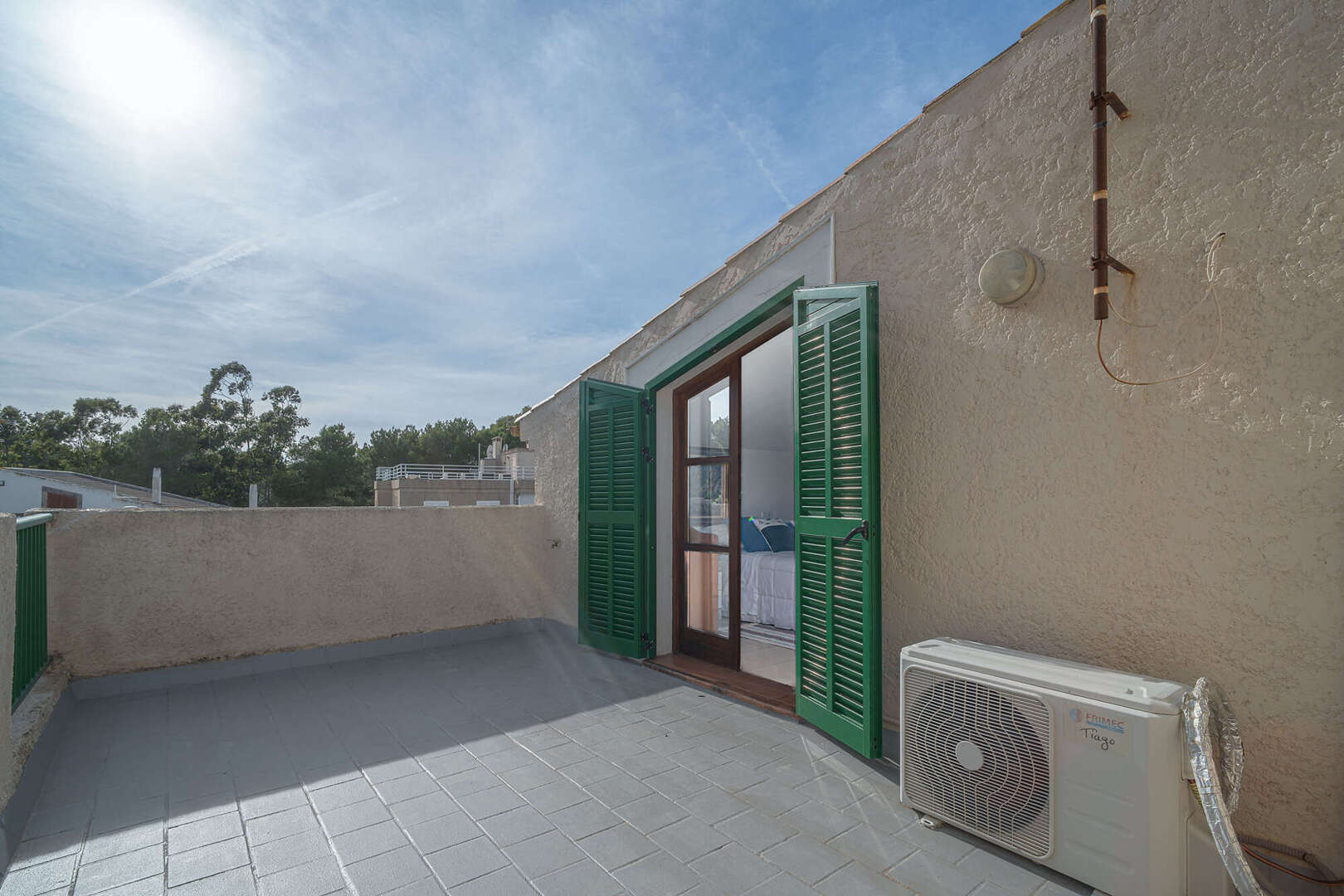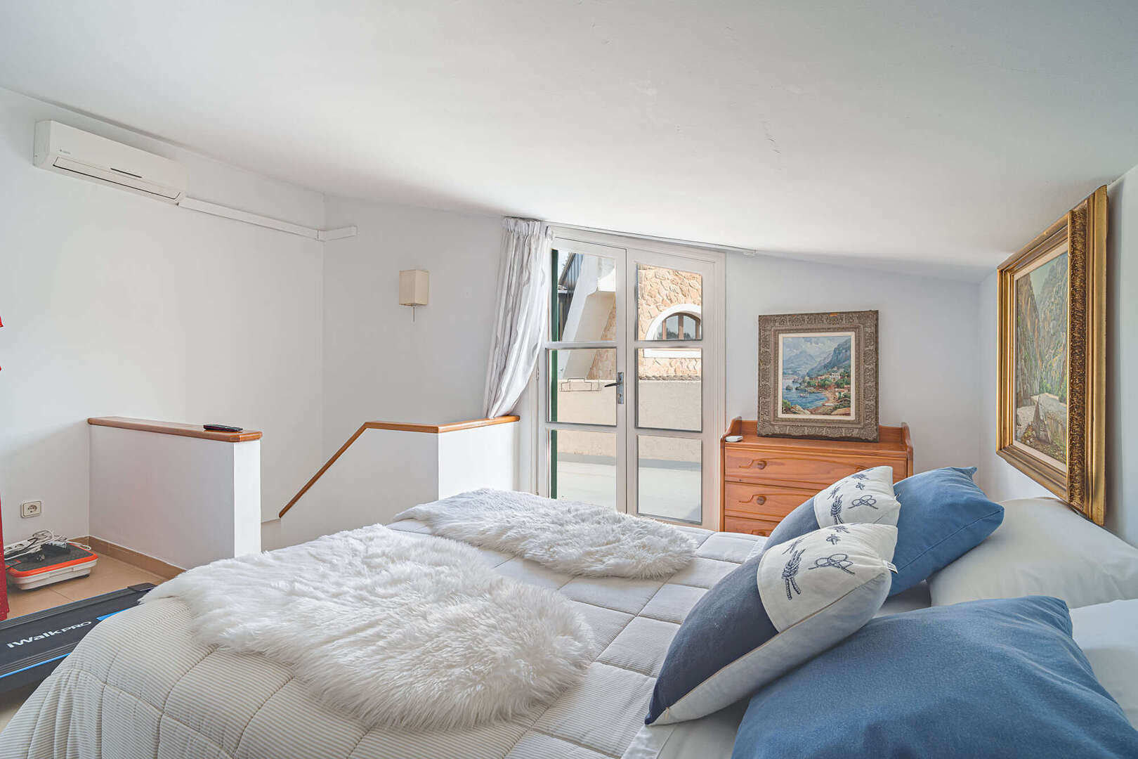 La segunda planta alberga un amplio dormitorio diáfano con acceso a un balcón privado desde el que se puede disfrutar de las vistas de los alrededores, un refugio ideal para pasar horas tranquilas y disfrutar de mucha intimidad.