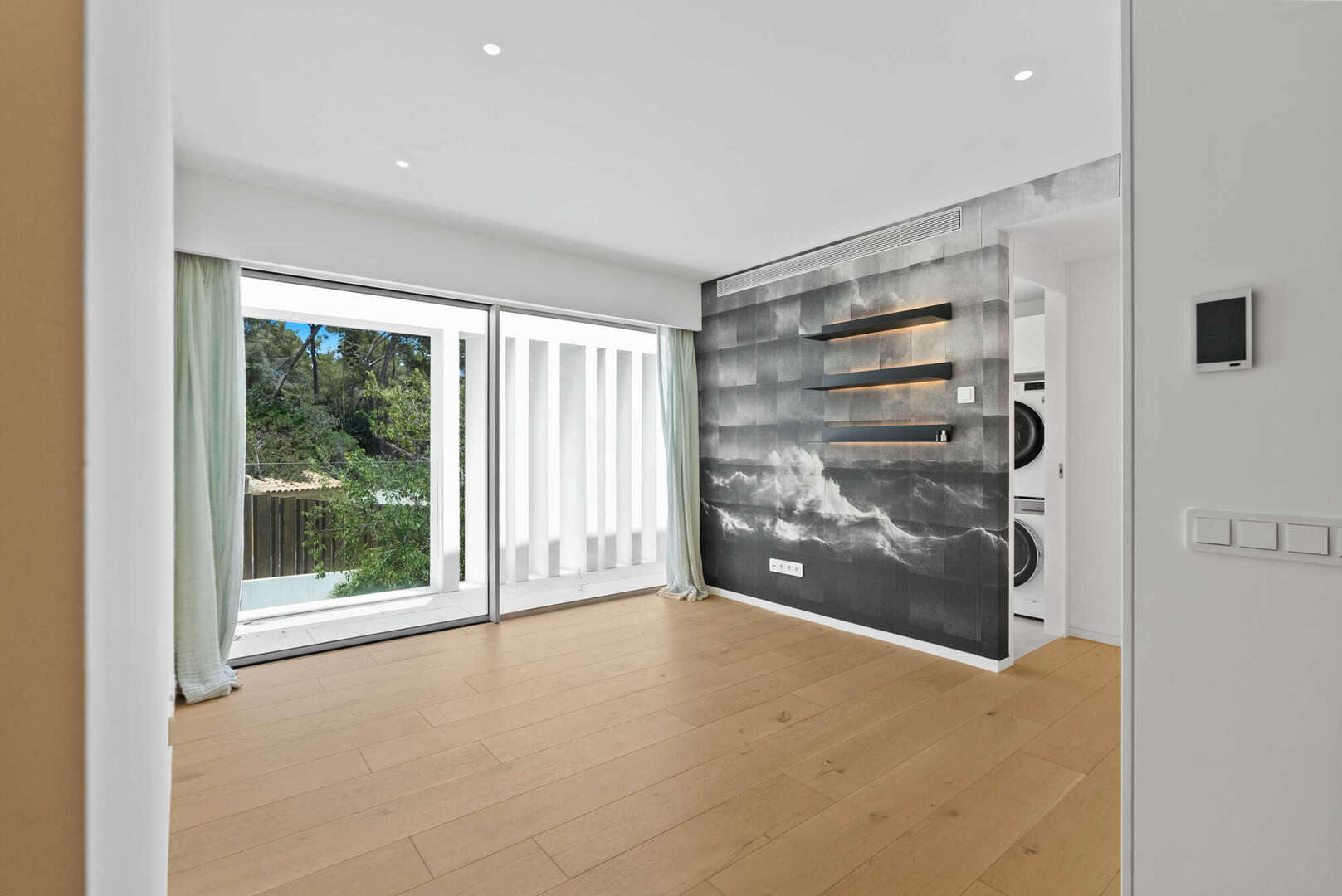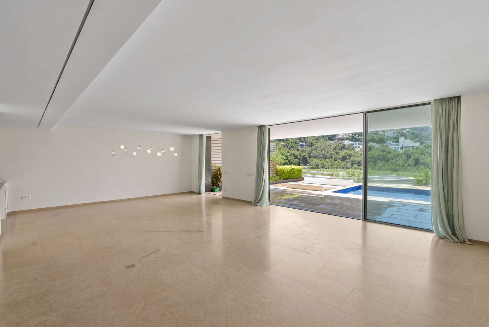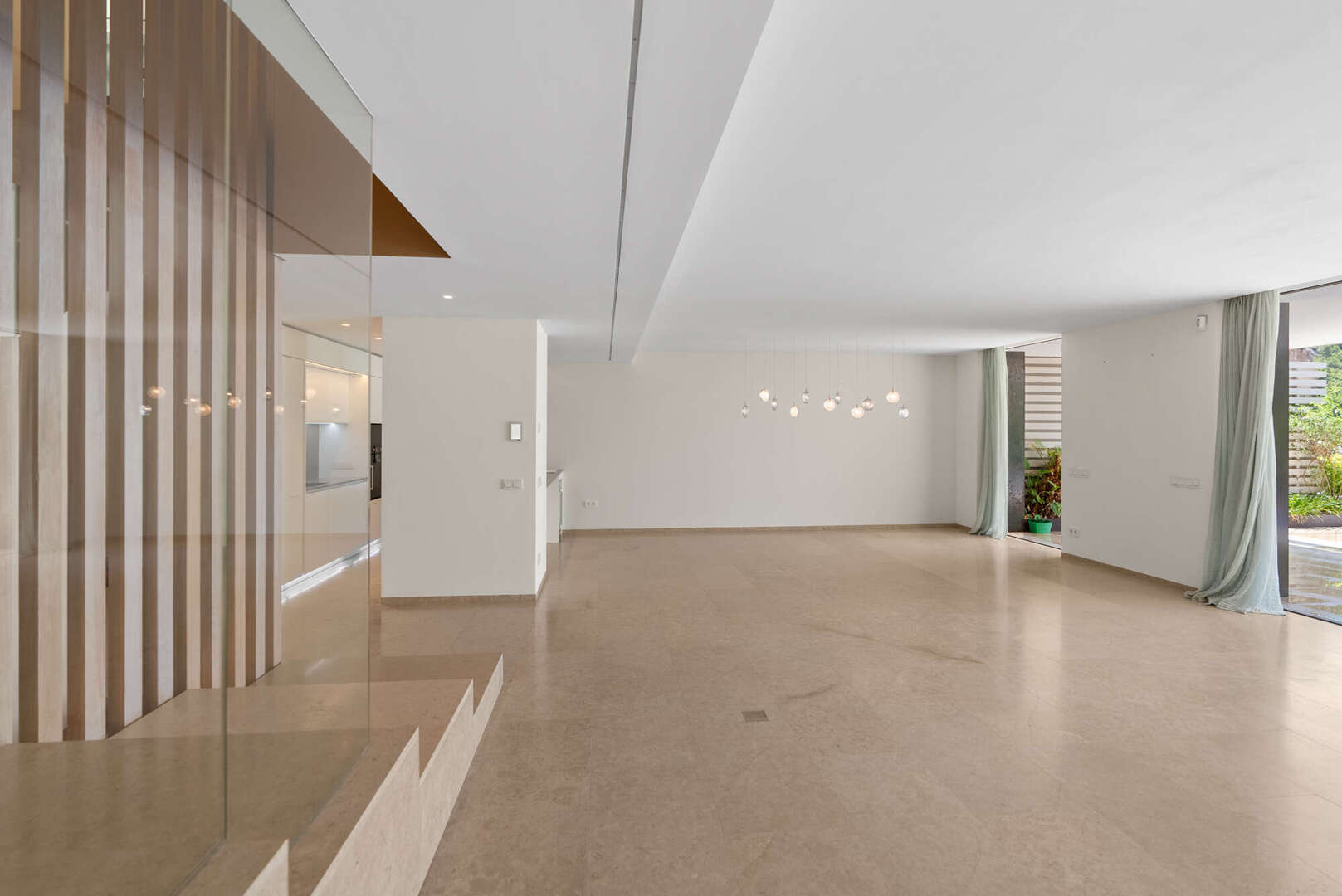 En la planta baja, encontrará un amplio salón-comedor con una cocina de lujo abierta (electrodomésticos Gaggenau), un aseo de invitados y un patio de diseño encantador. El acceso directo conduce a la gran terraza cubierta (41 m²), a la piscina privada (20 m²) y a otra zona de estar con vistas panorámicas al mar y a la montaña: su oasis personal de paz.