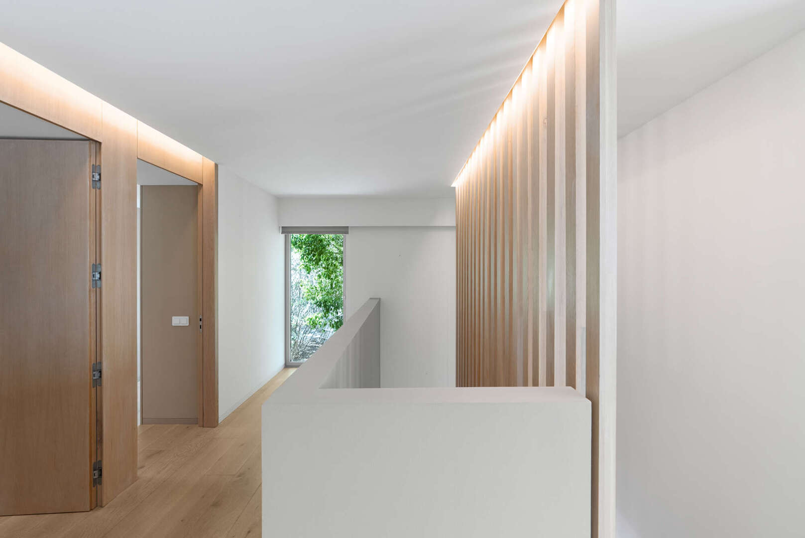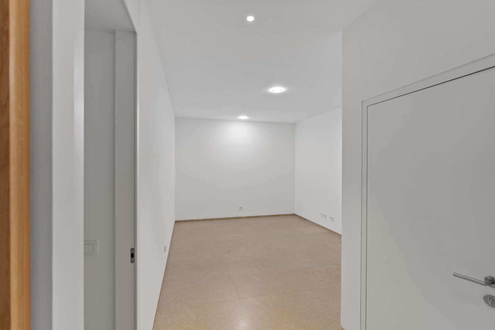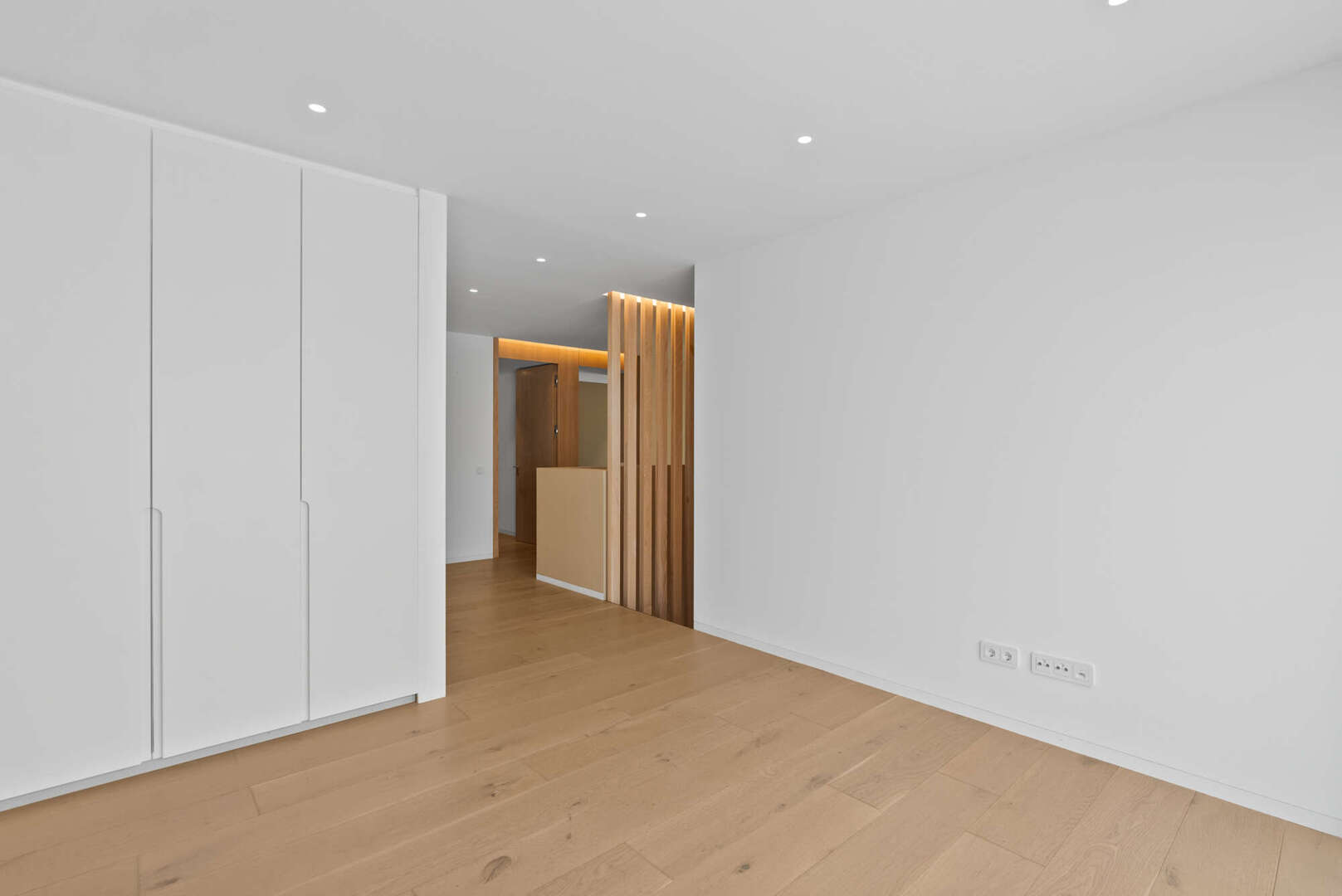 En la planta superior hay tres elegantes dormitorios en suite, cada uno con cuarto de baño, vestidor y acceso a unas vistas maravillosas. Una habitación adicional con lavadero contiguo y aseo de invitados puede convertirse opcionalmente en una cuarta suite con baño propio.