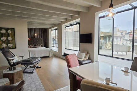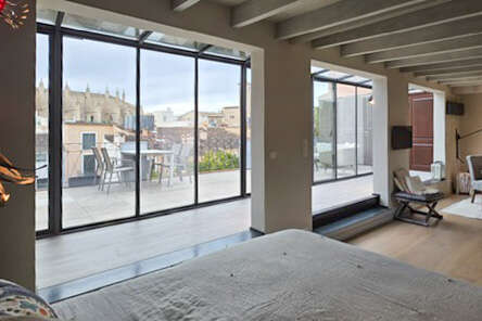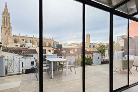 Dieses außergewöhnliche Studio-Apartment befindet sich im vierten Obergeschoss eines historischen Wohngebäudes im Herzen der Altstadt von Palma und vereint authentischen Altstadtscharm mit hochwertigem, modernem Wohnkomfort.