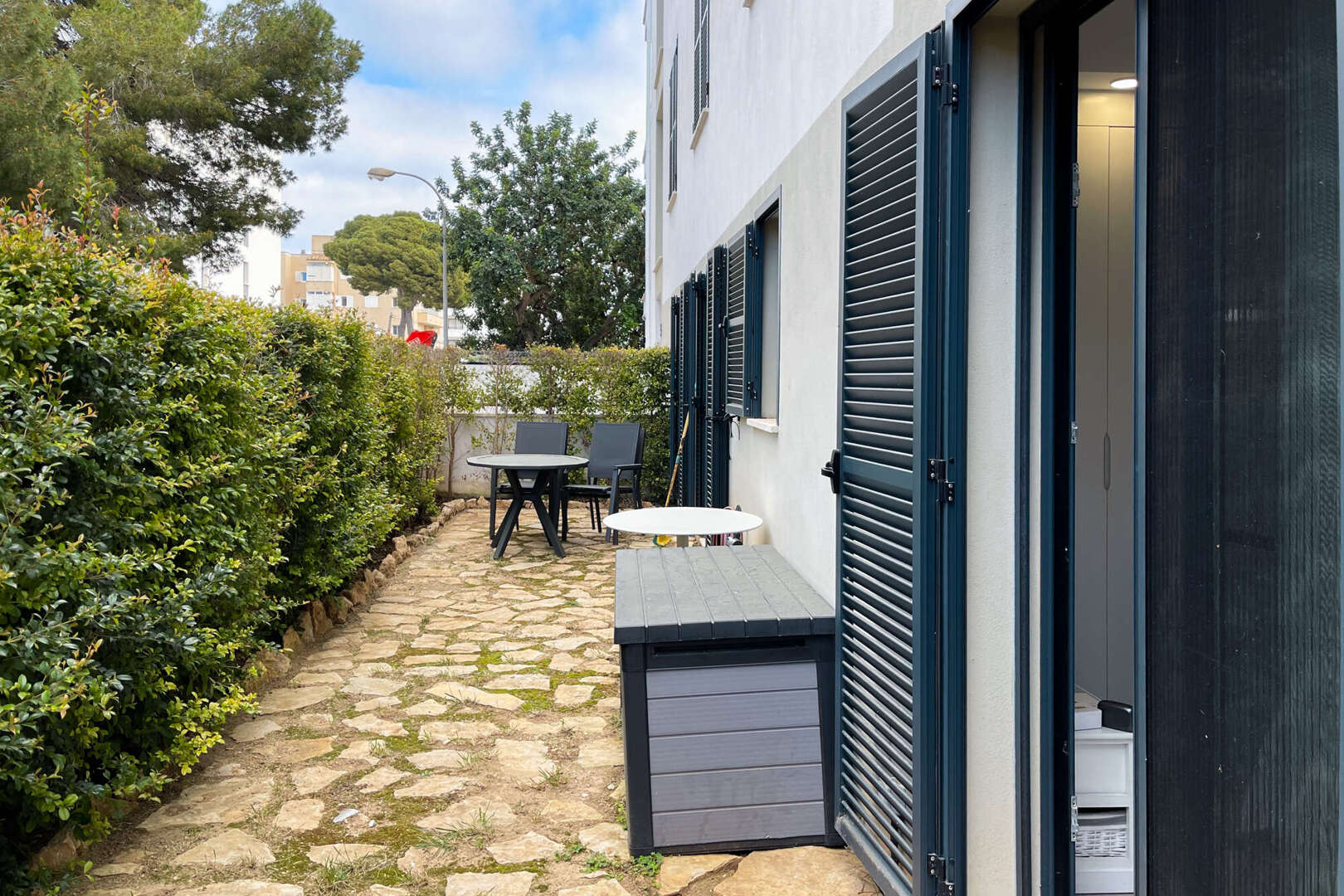 Este exclusivo piso en planta baja impresiona por su céntrica ubicación en Cala Ratjada, a pocos pasos de la popular bahía de Son Moll. Destaca especialmente la entrada privada e independiente, que ofrece privacidad e independencia del resto del edificio residencial. La plaza de aparcamiento privada al aire libre, justo delante de la puerta, permite un fácil acceso, lo que facilita llevar las compras o el equipaje a la casa.