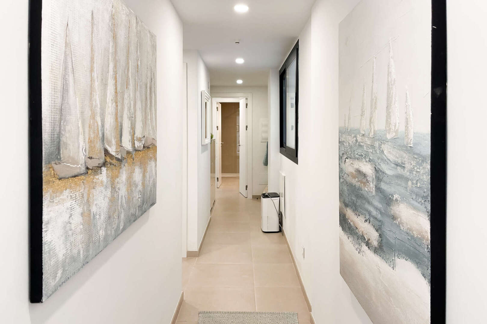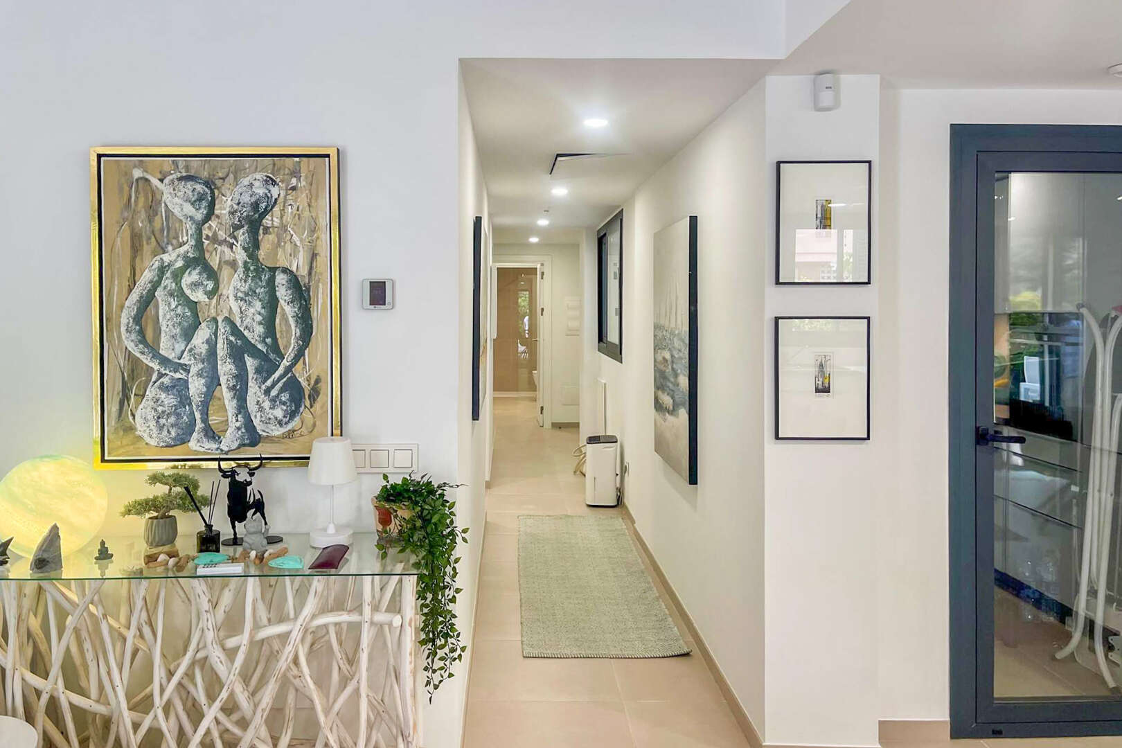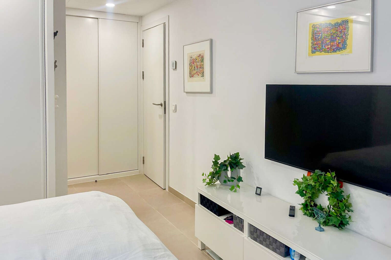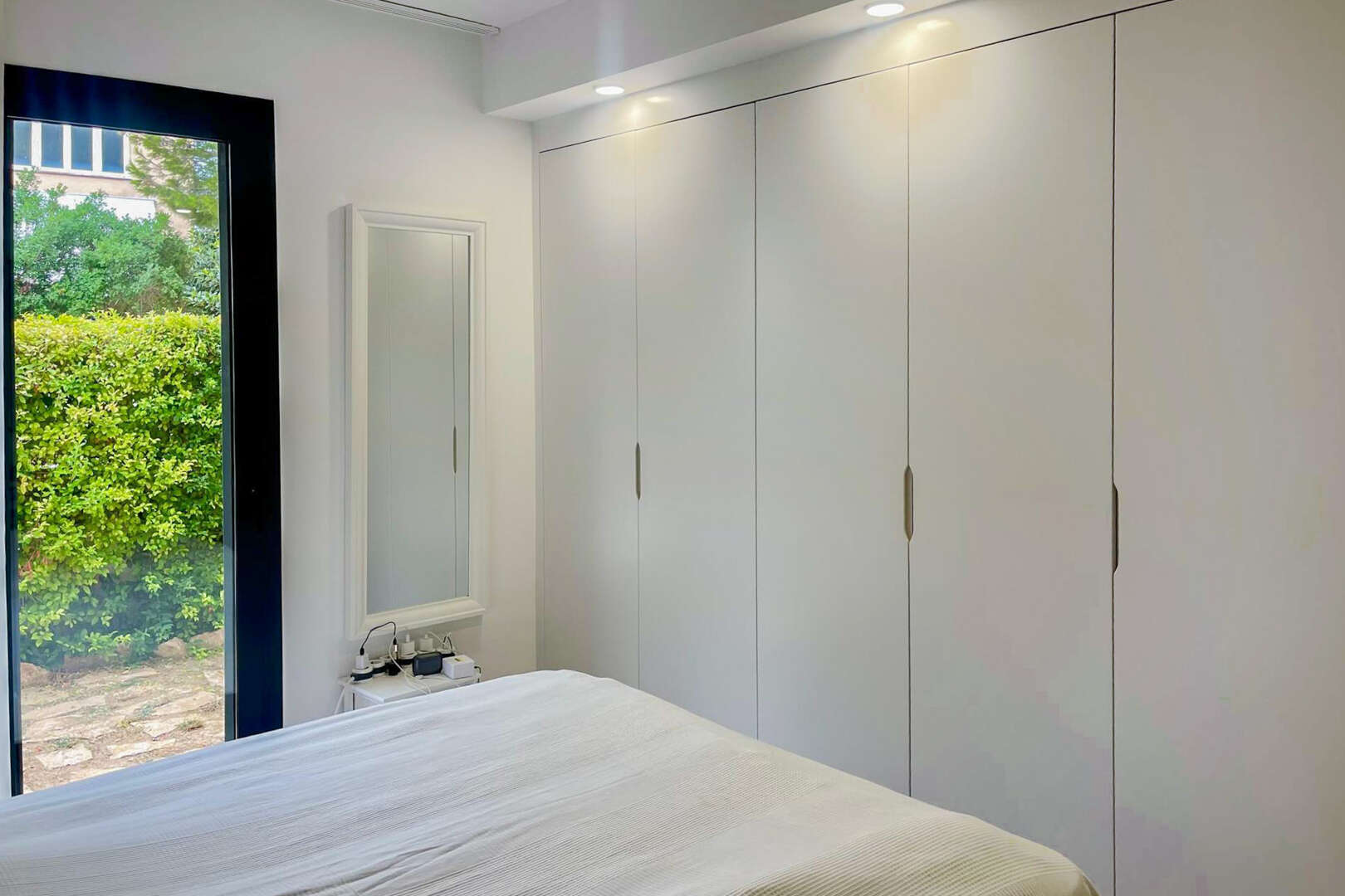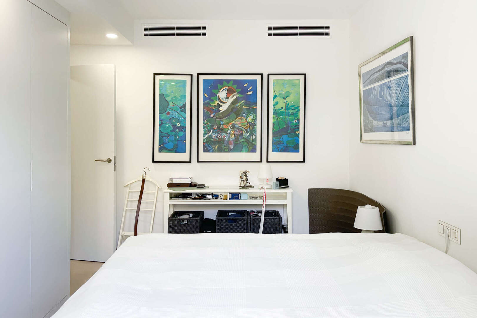 Tres luminosos dormitorios se abren a la amplia terraza, parcialmente cubierta. Dos modernos cuartos de baño, uno de ellos en suite, están equipados con calefacción por suelo radiante, calentador de toallas y ventilación eficaz, y uno de ellos dispone además de una ventana de luz natural.