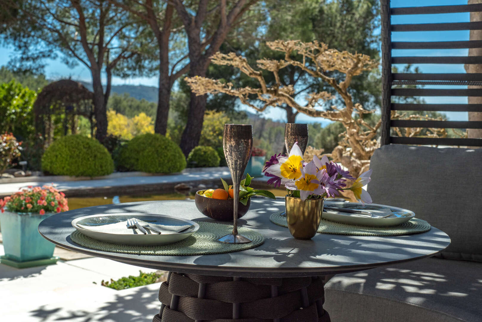 Das rund 4.000 m² große Grundstück besticht durch seine absolut privilegierte Lage, perfekte Ausrichtung und eine unvergleichlich friedvolle Atmosphäre. Mit höchster Sensibilität wurde das Areal von begnadeten Gartenarchitekten terrassenförmig gestaltet – stets im Einklang mit der umgebenden Natur. Heimische Pflanzen verschmelzen harmonisch mit exotischen Bonsai Bougainvilleas, duftenden Rosen und ausgewählten Obstbäumen. Ein vollständig integriertes Bewässerungssystem sorgt für nachhaltige Pflege und ganzjährigen Erhalt dieser grünen Oase.