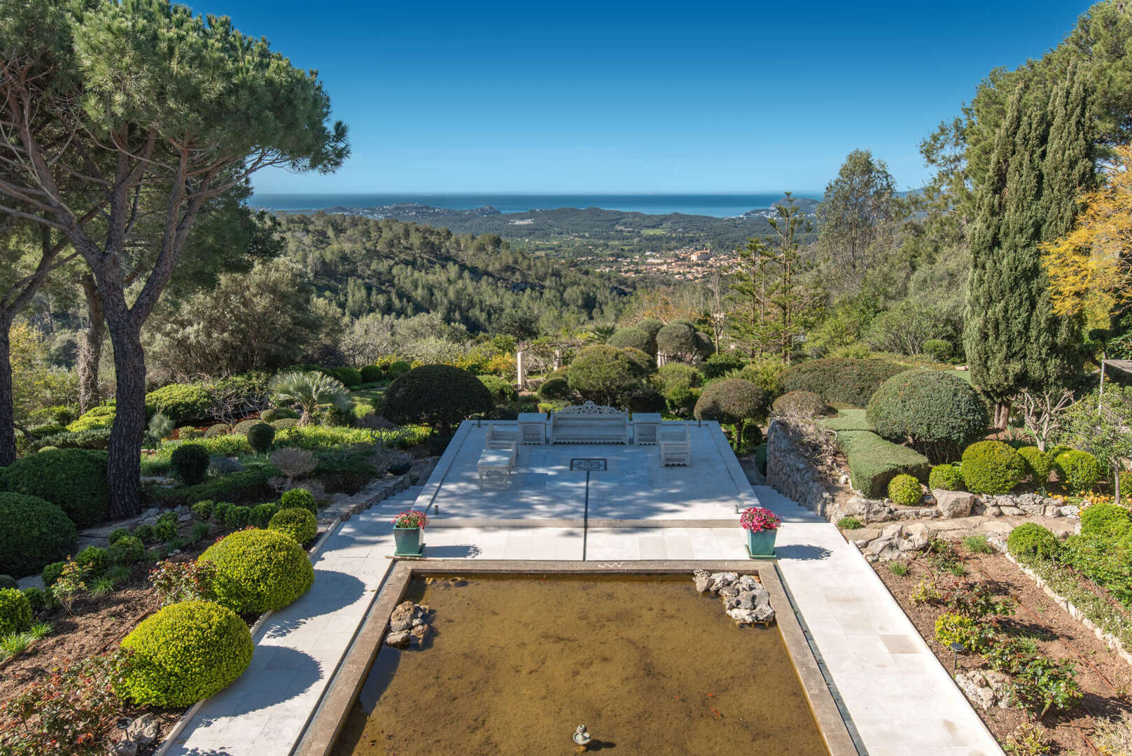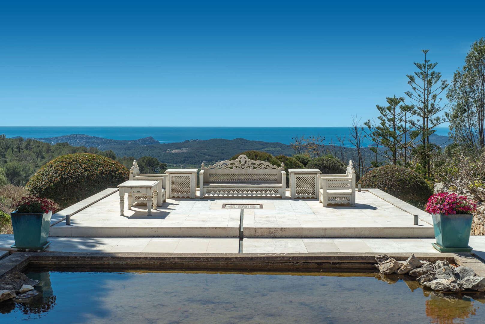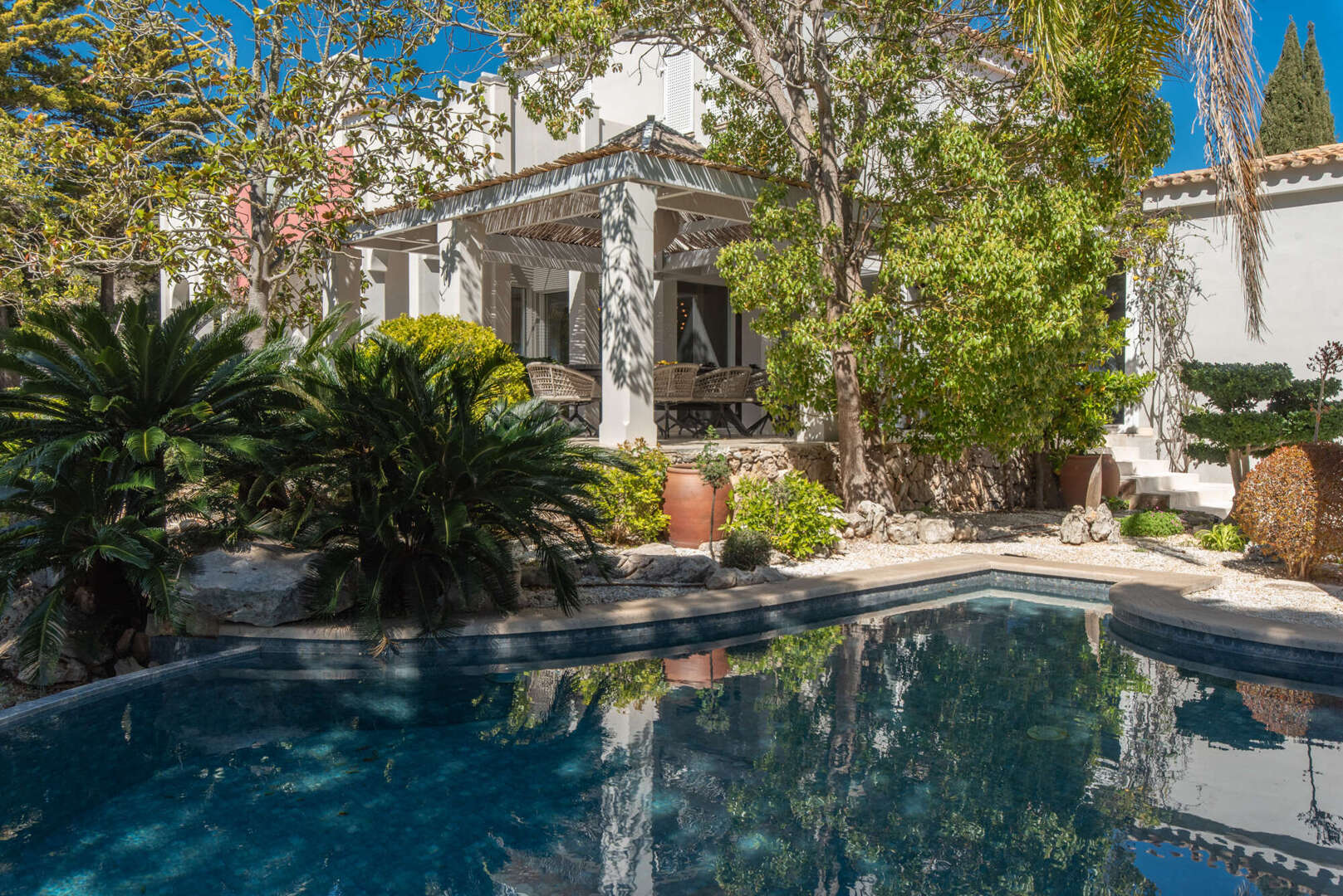 Der Garten präsentiert sich im japanischen Stil mit kunstvoll angelegten Wegen, liebevoll gestalteten Sitzecken, schattenspendenden Bäumen sowie verschiedenen Pavillons und Terrassen, die zum Innehalten und Genießen einladen. Herzstück der Anlage ist ein idyllischer Naturteich mit Seerosen. Ein separater Nutzgartenbereich steht im harmonischen Dialog mit dem repräsentativen Ziergarten – eine seltene Kombination aus Schönheit und Funktionalität. Aus jeder Perspektive präsentiert sich ein atemberaubender, unverbaubarer Panoramablick über die gesamte Bucht von Calvià – ein Schauspiel aus Licht, Meer und Himmel, das zu jeder Tageszeit neue Magie entfaltet. Ergänzt wird dieses besondere Ambiente durch einen Salzwasserpool, ein separates Gästehaus mit Küche und Bad, sowie eine Carpot Anlage mit Platz für 3 PKW´s.