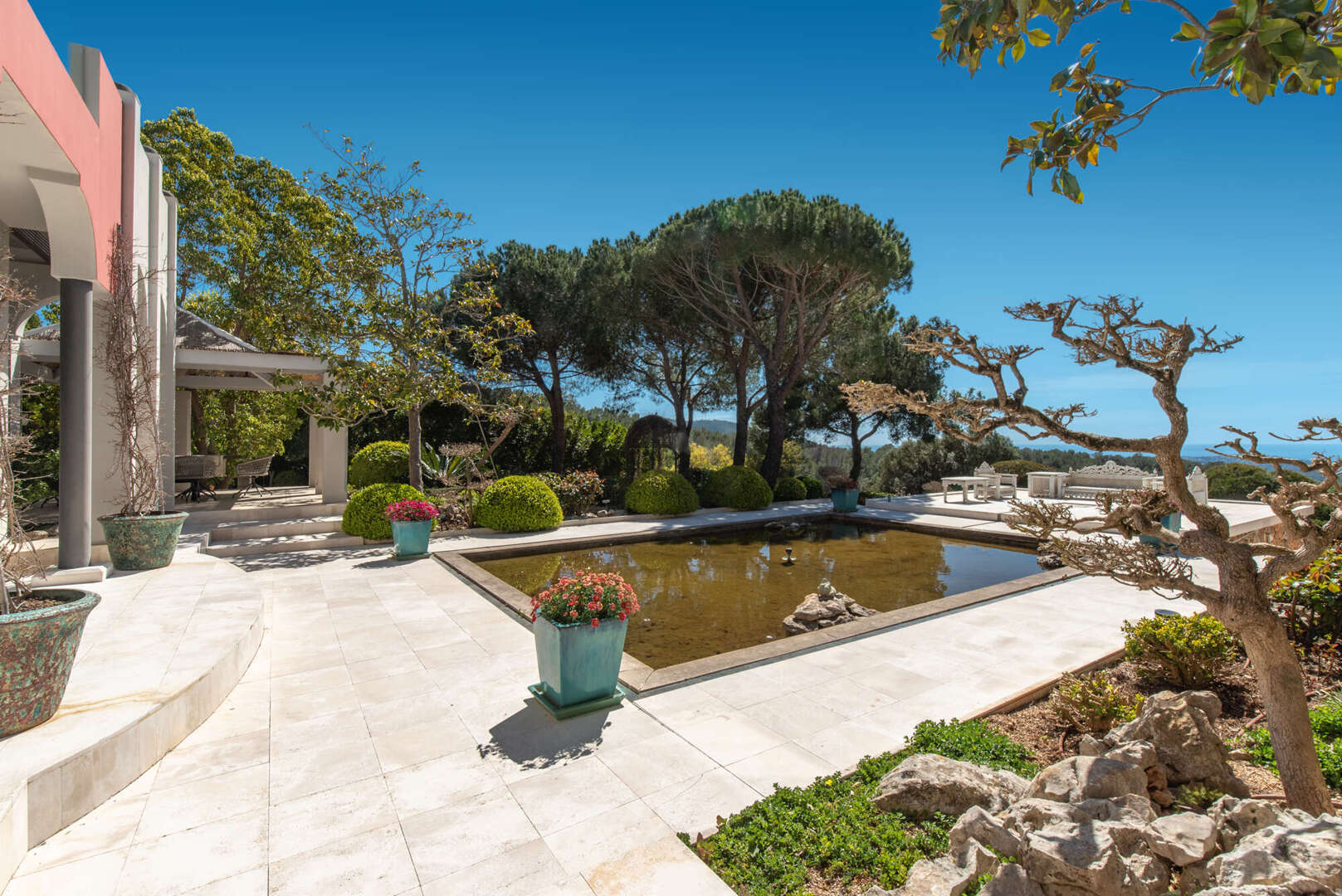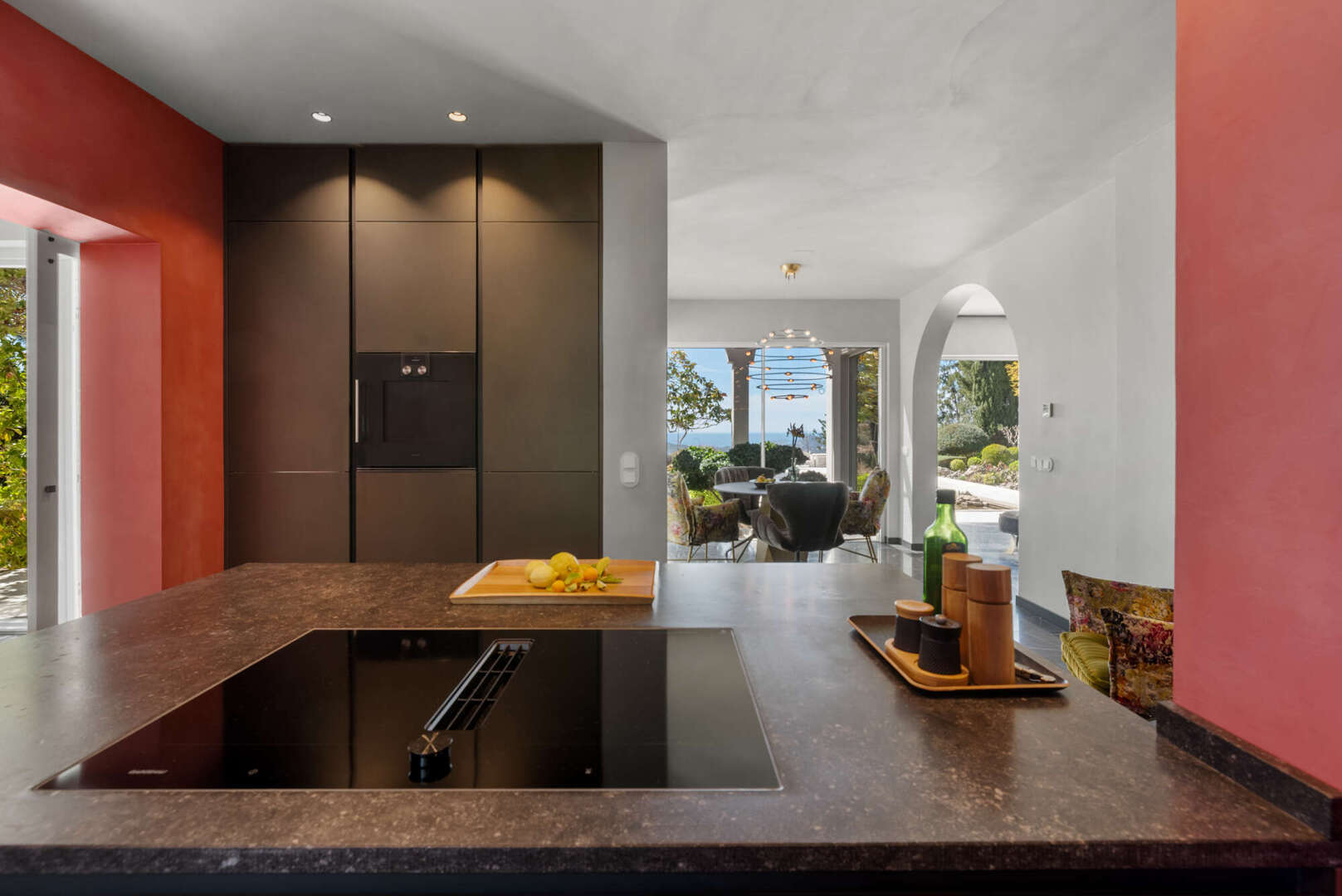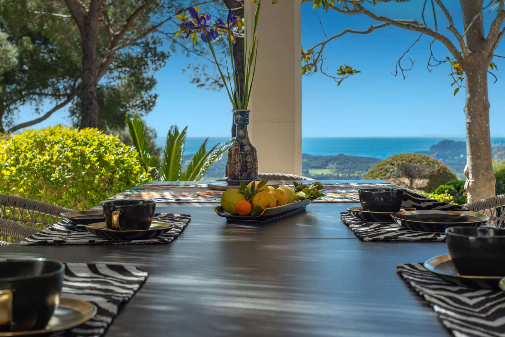 Der Garten präsentiert sich im japanischen Stil mit kunstvoll angelegten Wegen, liebevoll gestalteten Sitzecken, schattenspendenden Bäumen sowie verschiedenen Pavillons und Terrassen, die zum Innehalten und Genießen einladen. Herzstück der Anlage ist ein idyllischer Naturteich mit Seerosen. Ein separater Nutzgartenbereich steht im harmonischen Dialog mit dem repräsentativen Ziergarten – eine seltene Kombination aus Schönheit und Funktionalität. Aus jeder Perspektive präsentiert sich ein atemberaubender, unverbaubarer Panoramablick über die gesamte Bucht von Calvià – ein Schauspiel aus Licht, Meer und Himmel, das zu jeder Tageszeit neue Magie entfaltet. Ergänzt wird dieses besondere Ambiente durch einen Salzwasserpool, ein separates Gästehaus mit Küche und Bad, sowie eine Carpot Anlage mit Platz für 3 PKW´s.