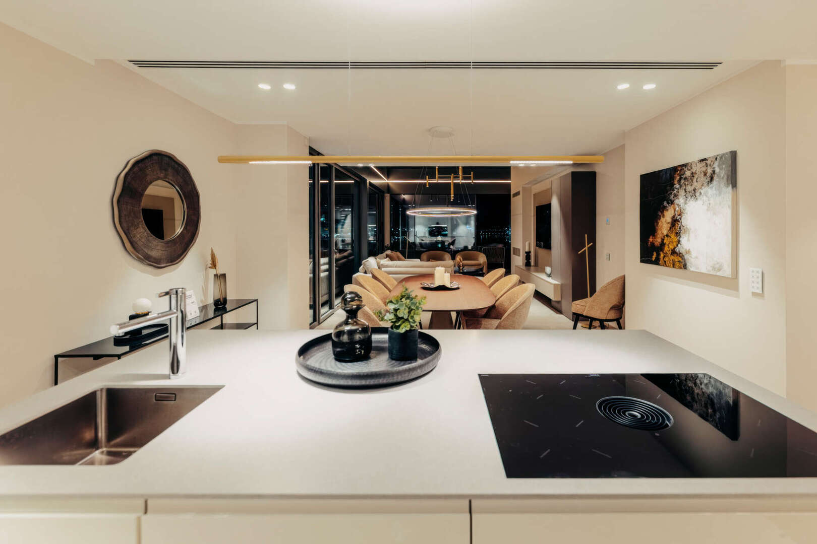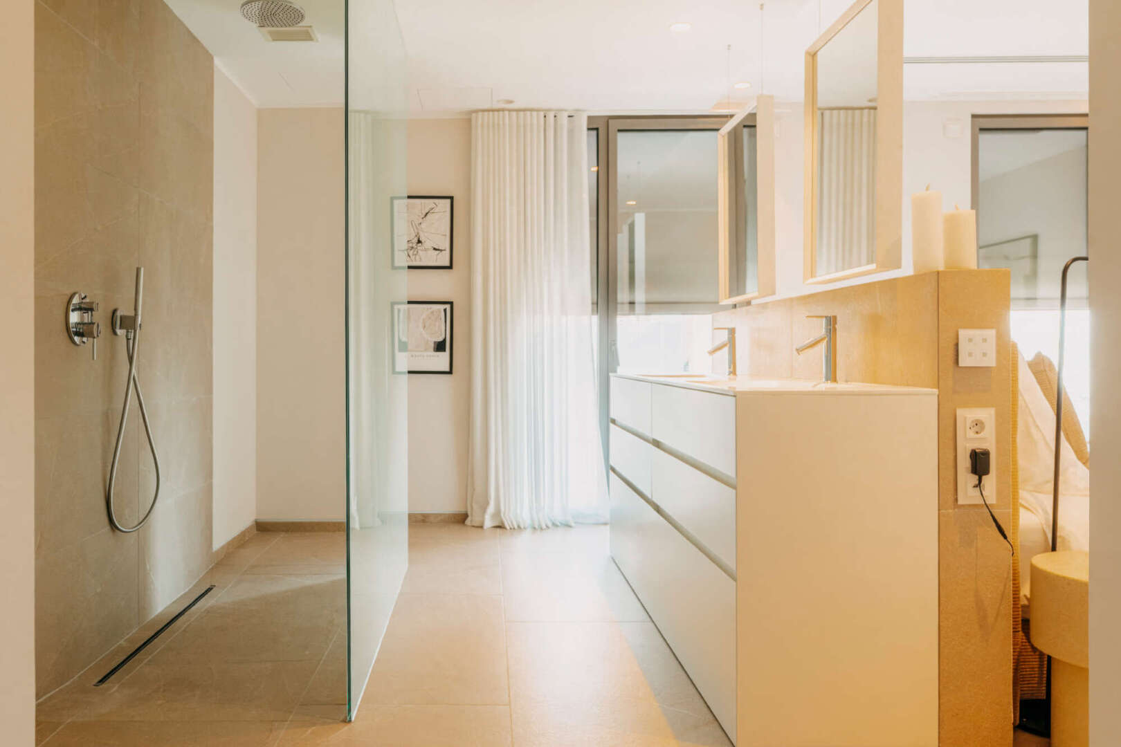 El ático ofrece una fantástica suite principal, otros 2 dormitorios principales en suite repartidos en ambos niveles y un aseo de invitados independiente. Una moderna cocina americana totalmente equipada, complementada por un práctico lavadero, satisface los más altos estándares de confort y funcionalidad.