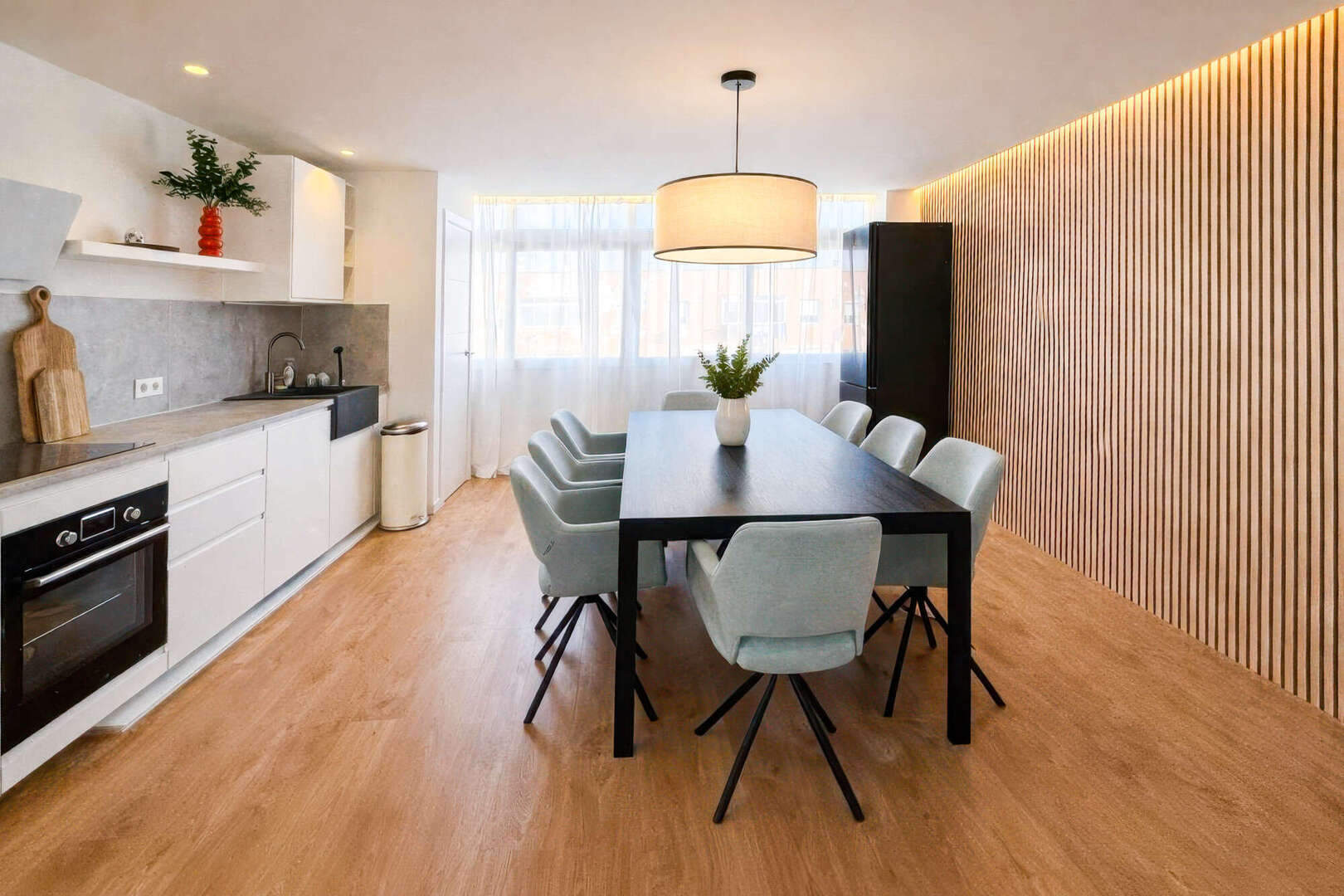 El piso fue ampliamente reformado en 2025-2026 y hoy se presenta al más moderno nivel técnico y de diseño. El resultado es una vivienda de gran calidad y estilo, con una arquitectura clara, un diseño moderno y una planta diáfana y luminosa.