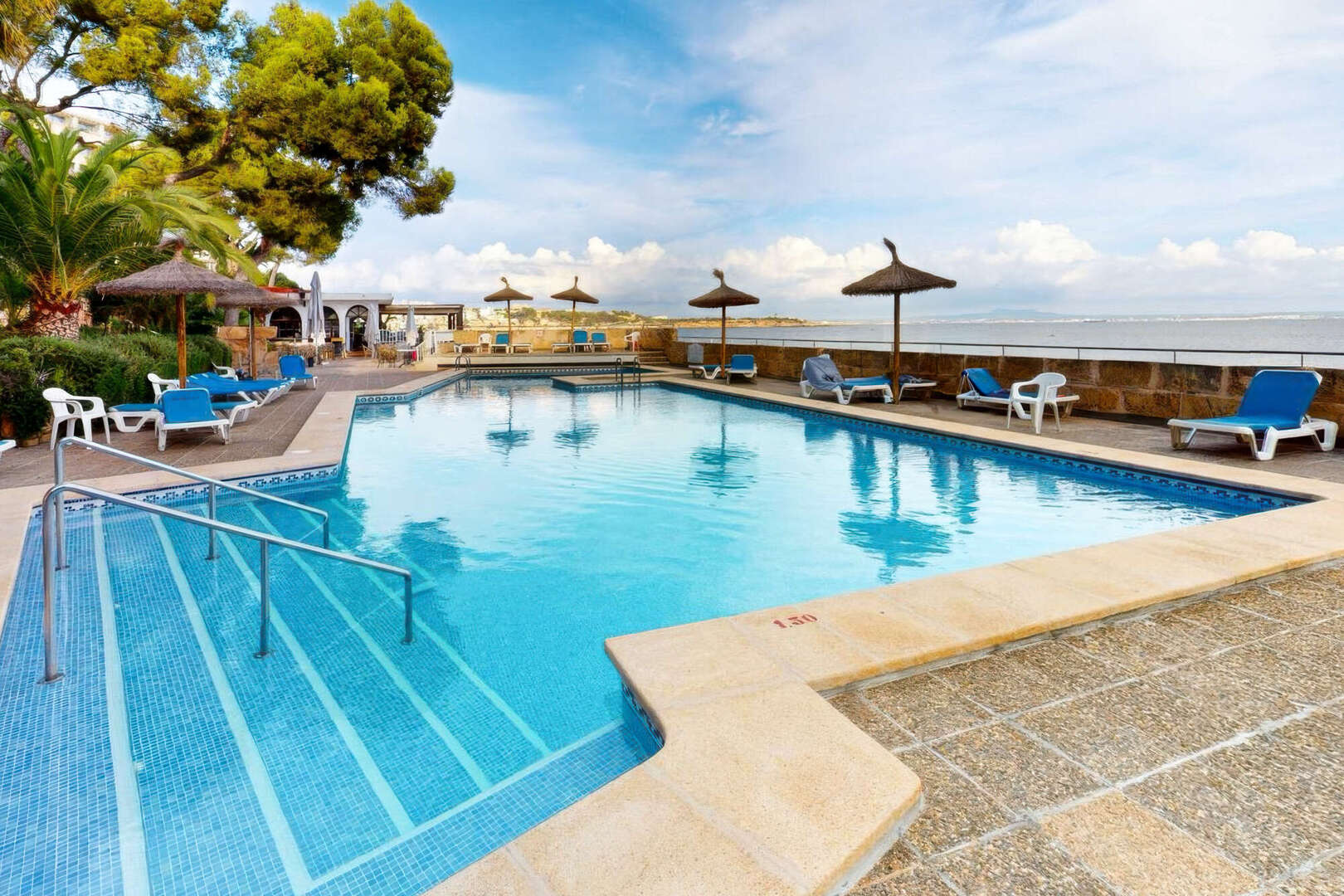 En la zona de la piscina del complejo también hay un bar y un restaurante de primera clase directamente junto al mar, que está reservado exclusivamente para los residentes.