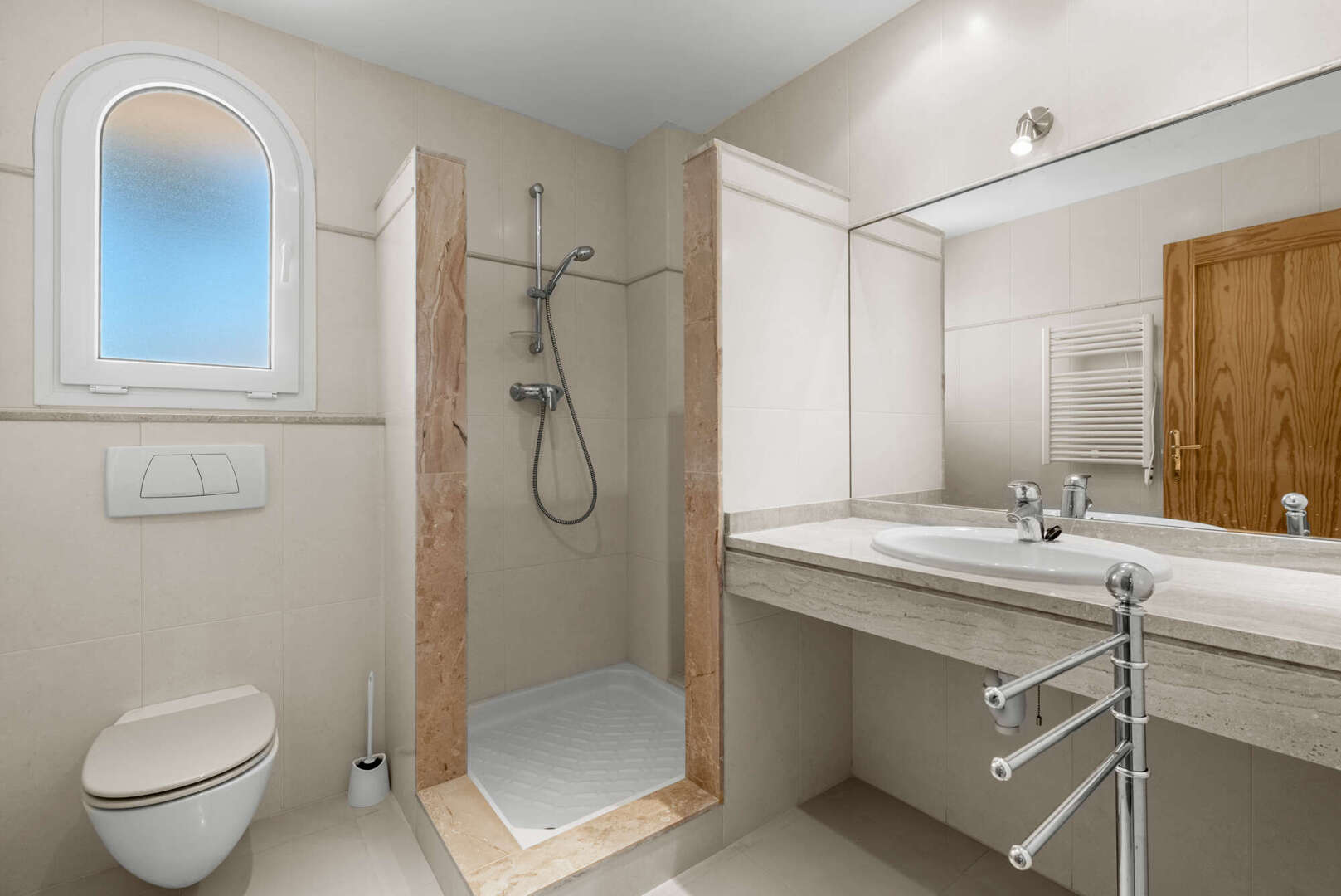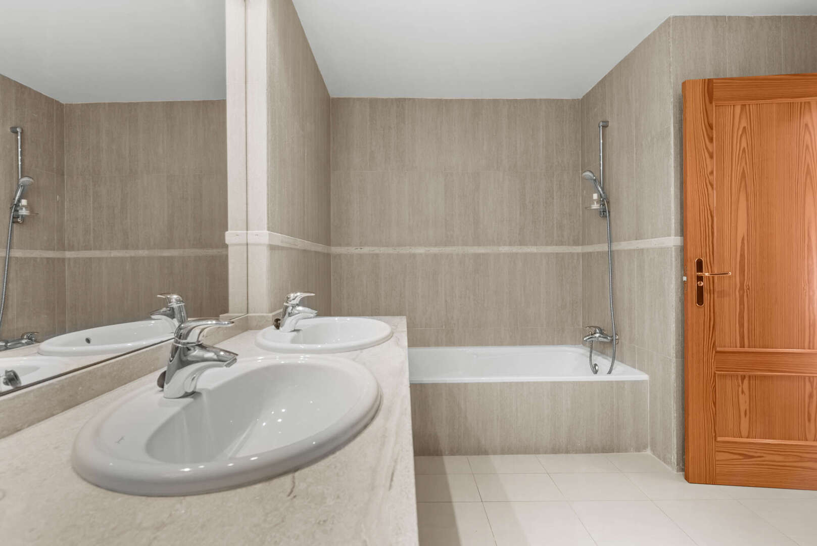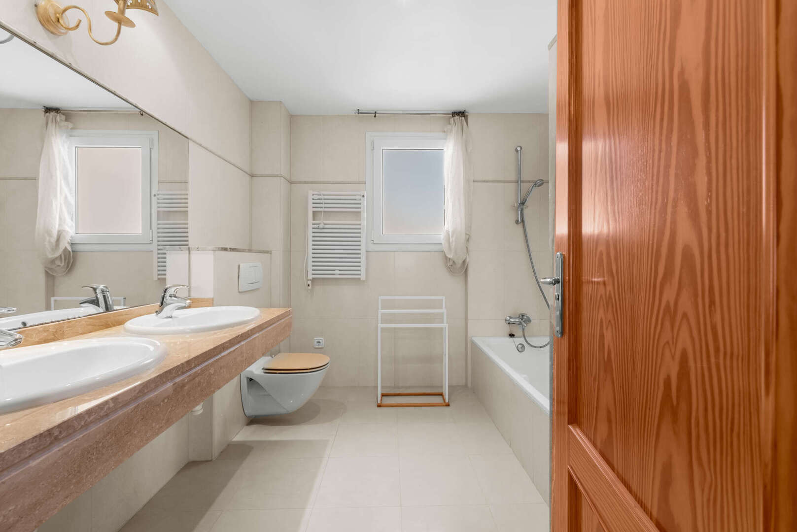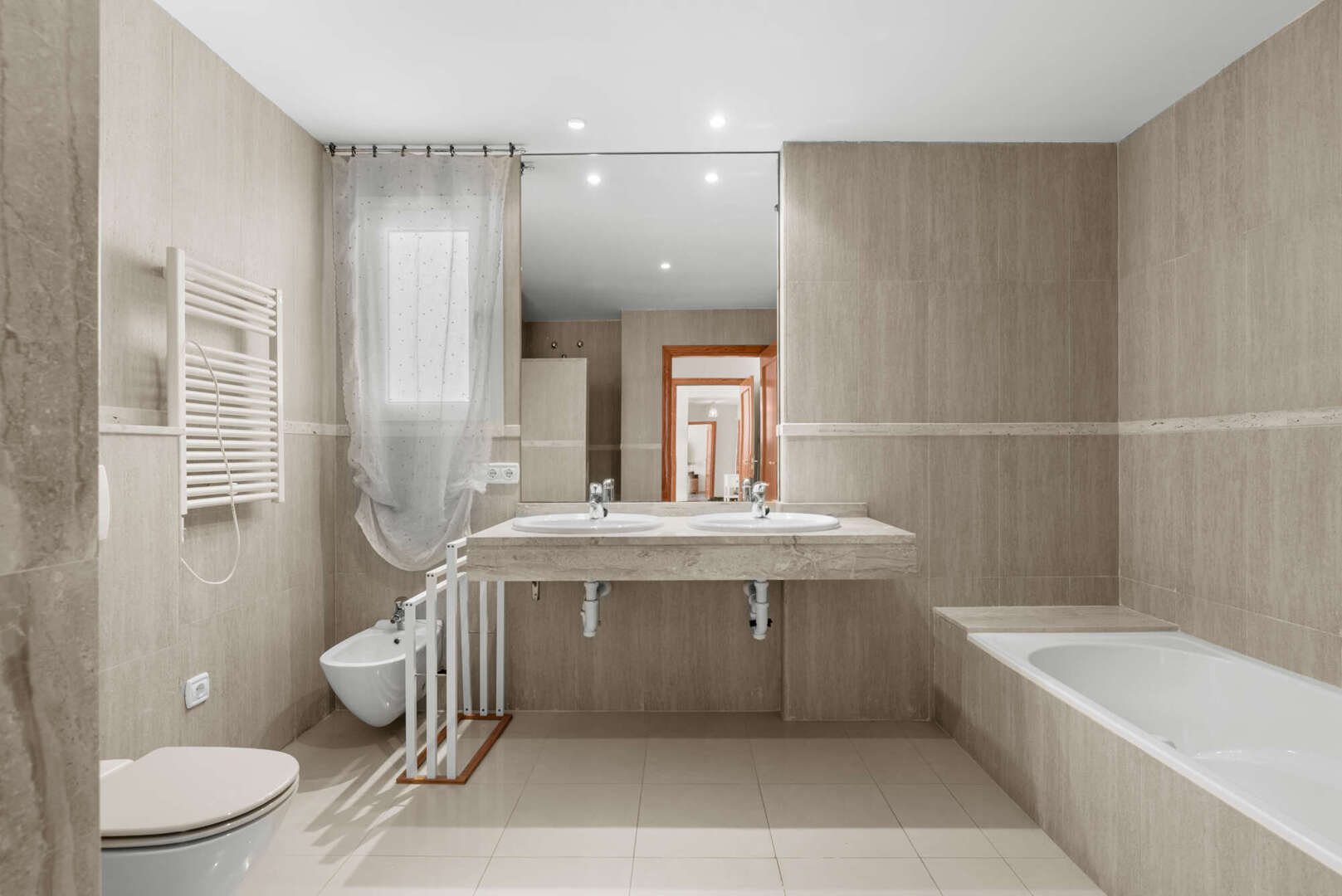 El piso cuenta con un total de tres amplios dormitorios, dos de ellos con baño en suite, así como otro baño independiente. Una cocina independiente con lavadero contiguo y un amplio salón-comedor completan la oferta. La oferta también incluye dos plazas de aparcamiento.