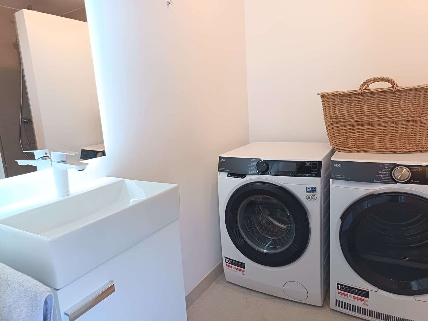 Otro punto a favor es el cuarto de baño adicional en la planta baja, equipado con ducha y WC, así como lavadora y secadora AEG (últimos modelos).
