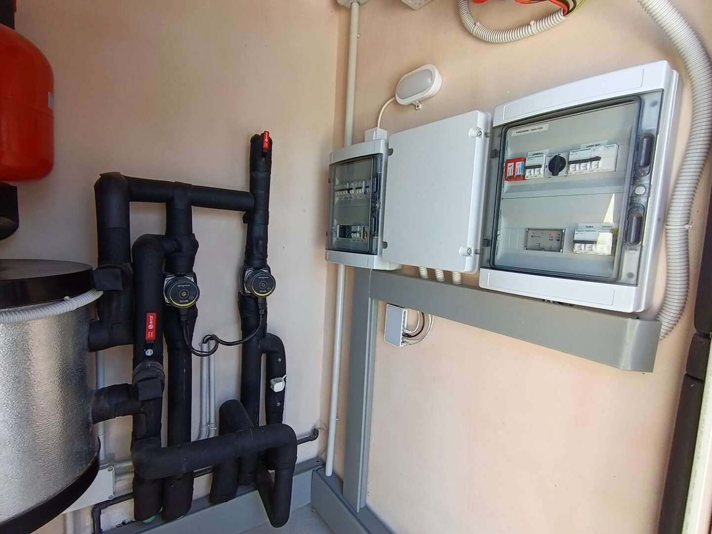 Destaca especialmente el suministro de energía sostenible: La propiedad cuenta con un sistema de energía solar en combinación con una bomba de calor de última generación y una cómoda calefacción por suelo radiante.