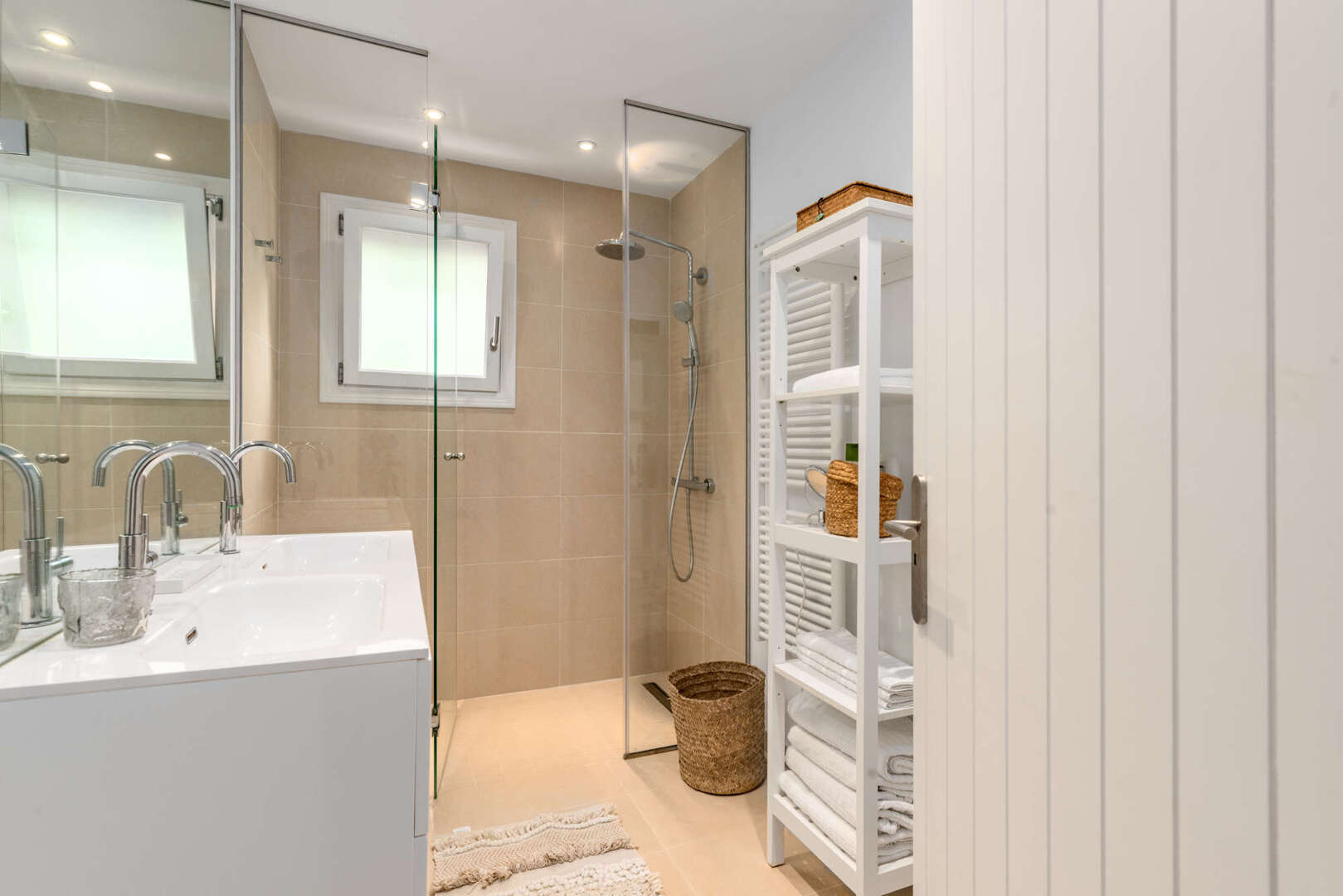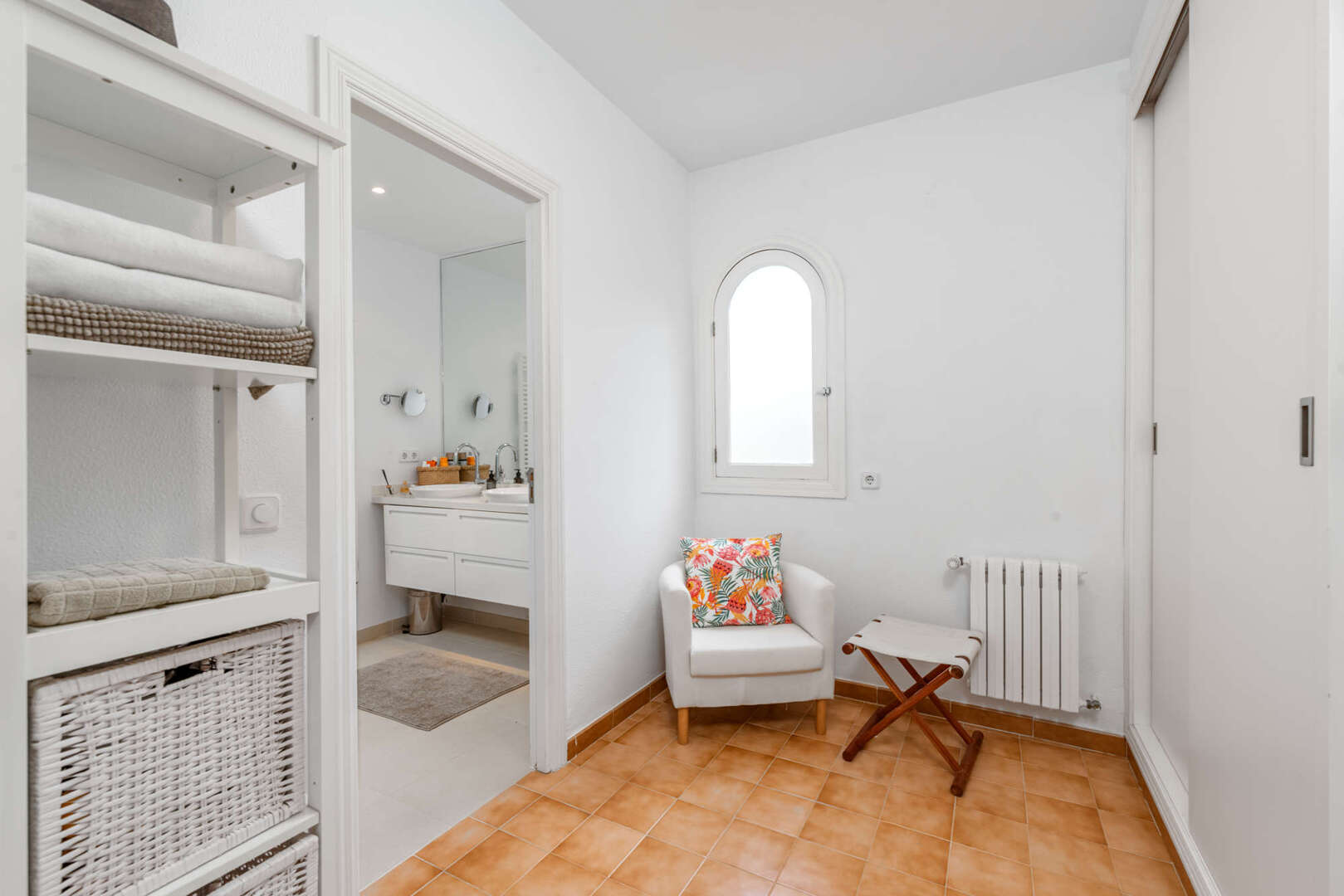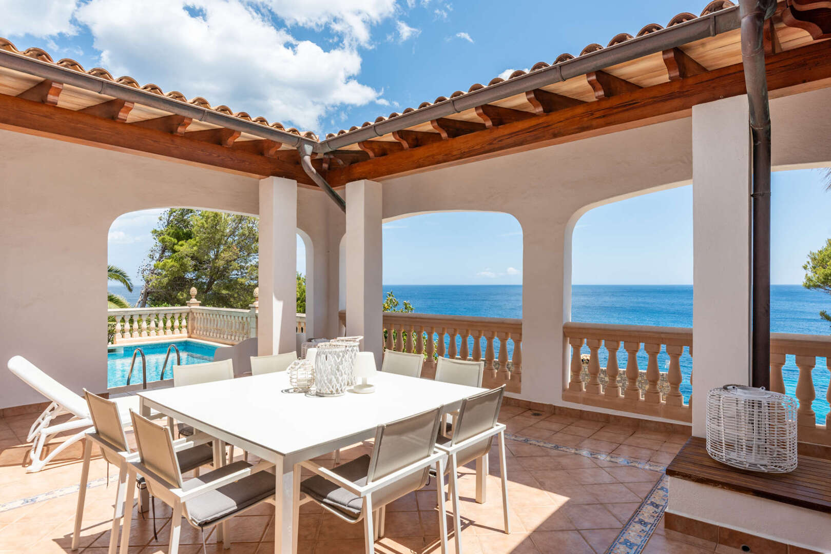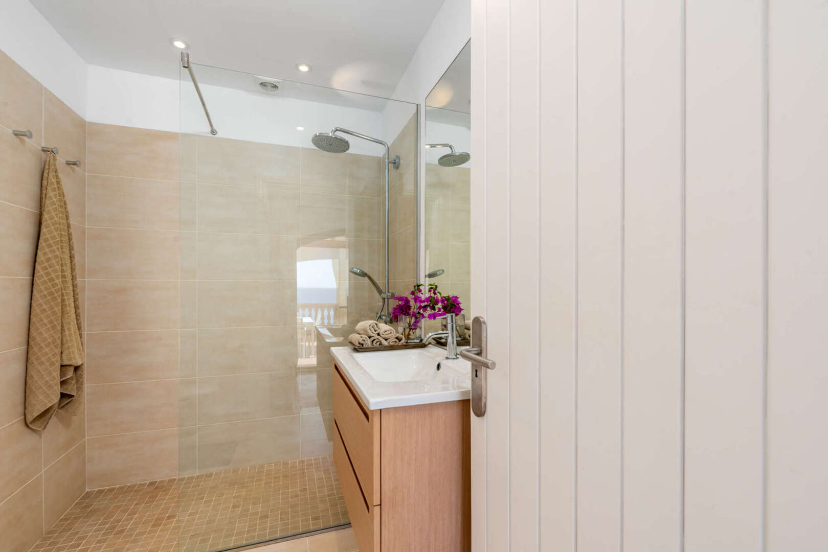 La casa dispone de 5 dormitorios y 5 baños, situados en la primera planta, con una terraza que rodea la casa donde el azul del mar no pasa desapercibido.