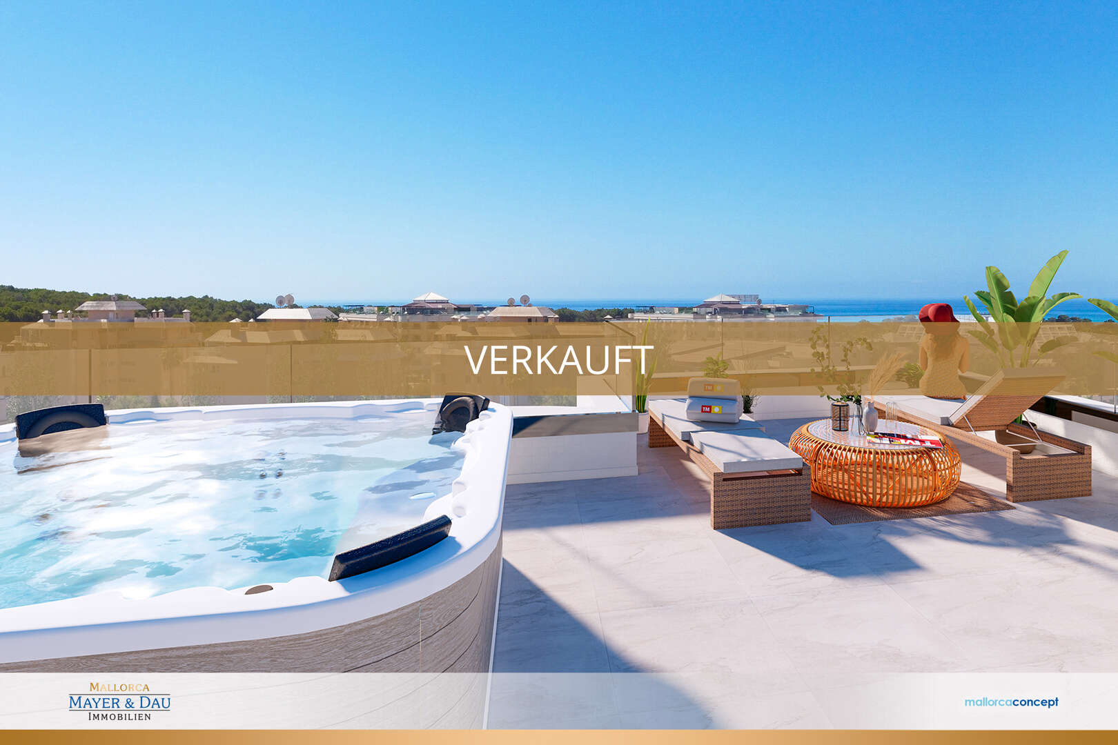 El edificio de 5 plantas dispone de un aparcamiento subterráneo con trasteros y plazas de aparcamiento al aire libre. Usted puede tomar fácilmente el ascensor a su ático chic. Este dispone de 2 dormitorios más 2 baños - uno de ellos en suite, una cocina abierta al salón/comedor e impresiona por su ambiente luminoso. Desde el dormitorio y el salón, tiene acceso directo a la espaciosa terraza con fantásticas vistas a través de las ligeras puertas correderas. La vista es aún más impresionante en su terraza privada en la azotea, donde podrá disfrutar del sol de Mallorca desde su propio jacuzzi. La cocina exterior instalada aquí es perfecta para acogedoras tardes de barbacoa y le permite sentir el estilo de vida mediterráneo.