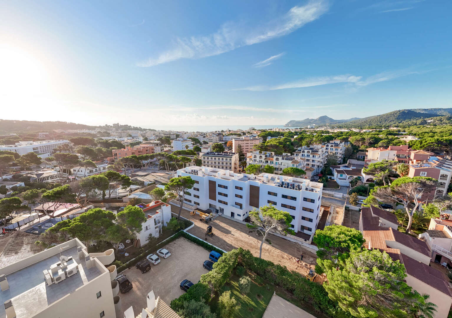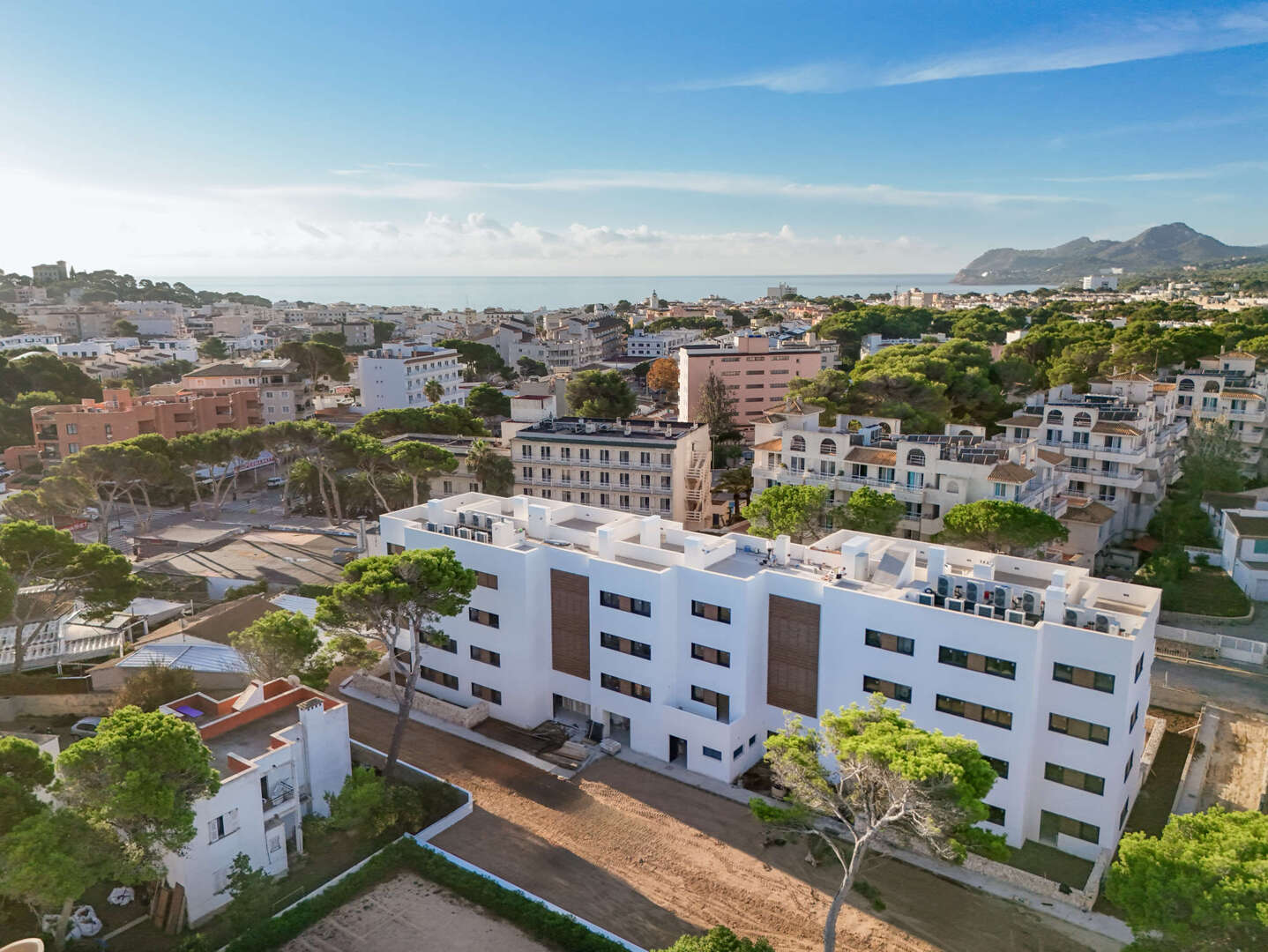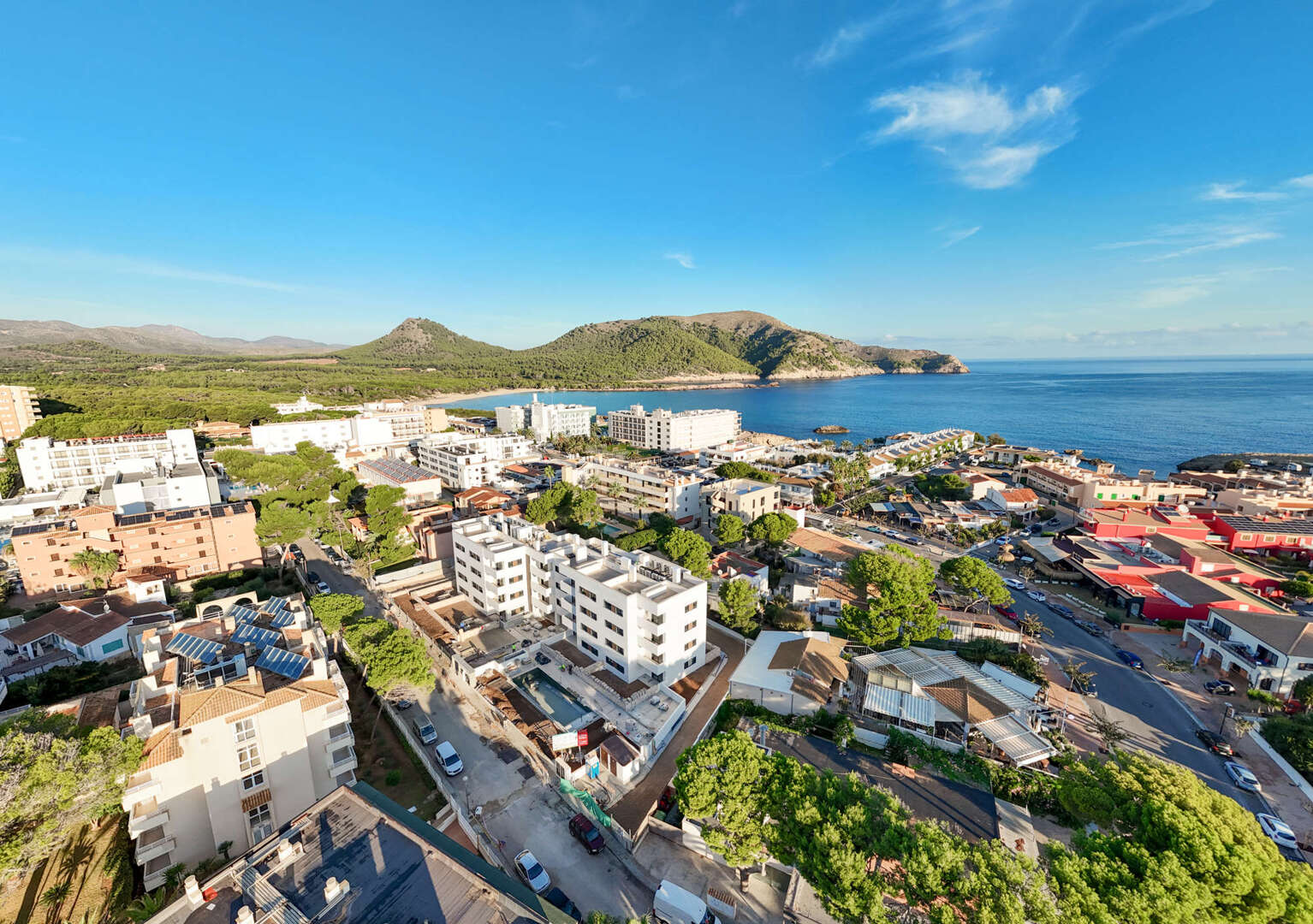 En una tranquila calle lateral de Cala Ratjada, no lejos de la Avenida Cala Agulla, a unos 800 metros de las bahías de Calla Agulla y Cala Lliteras, se encuentra esta propiedad de nueva construcción de un conocido promotor en el noreste de Mallorca.