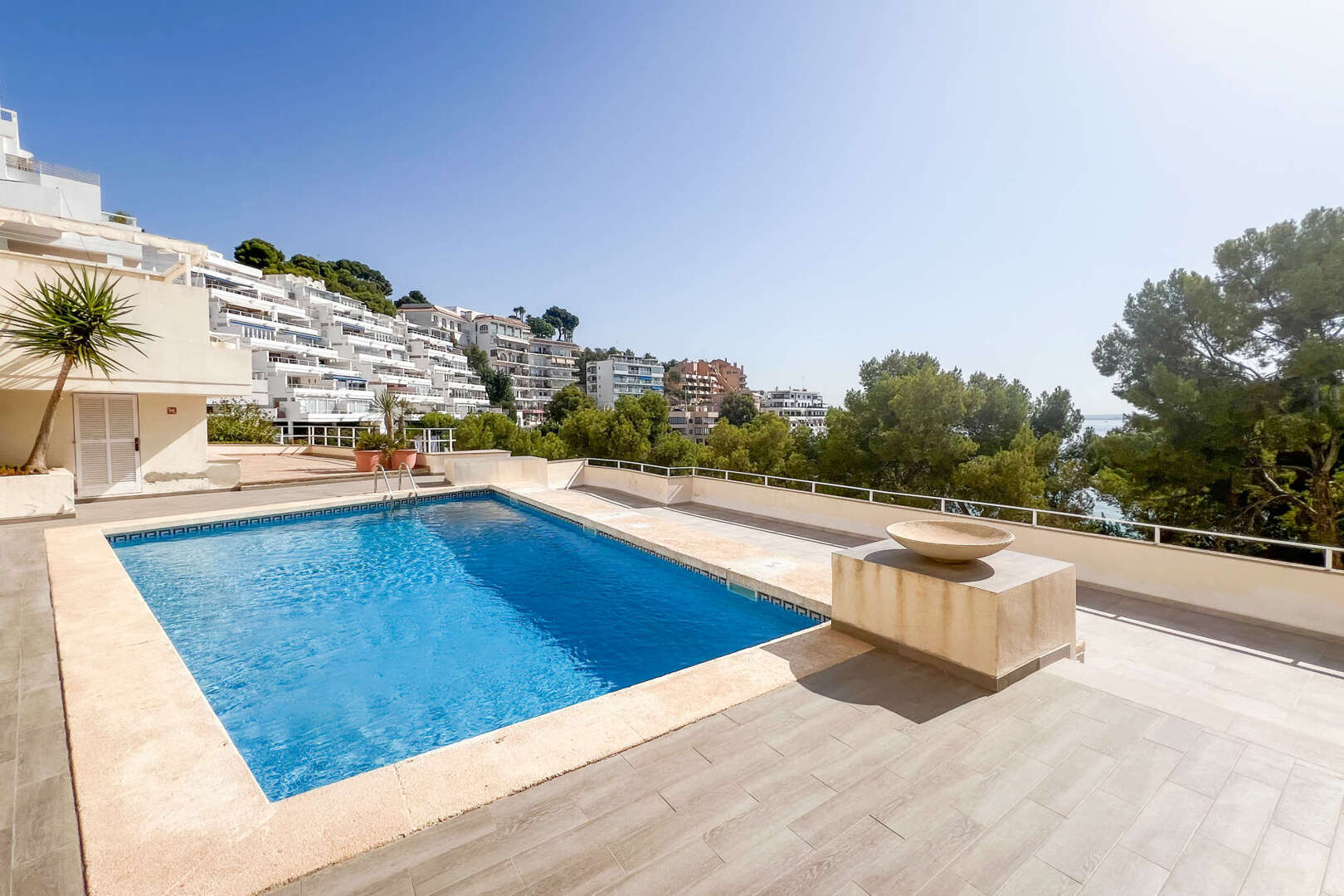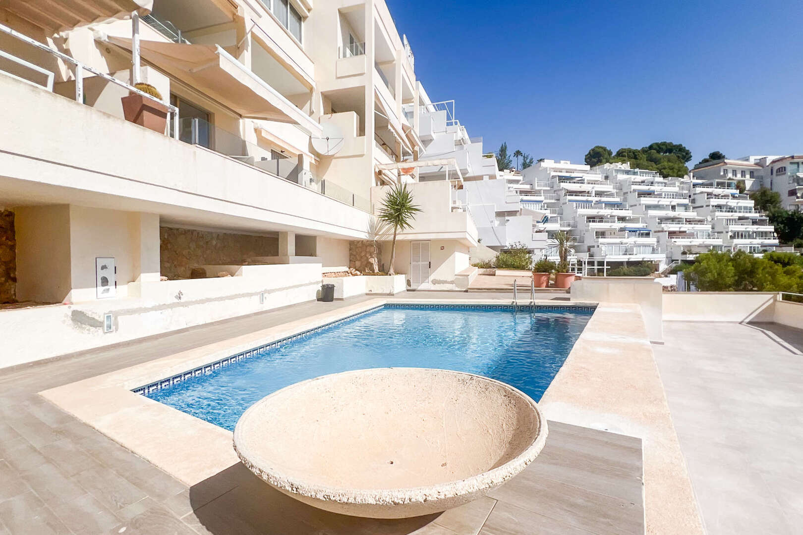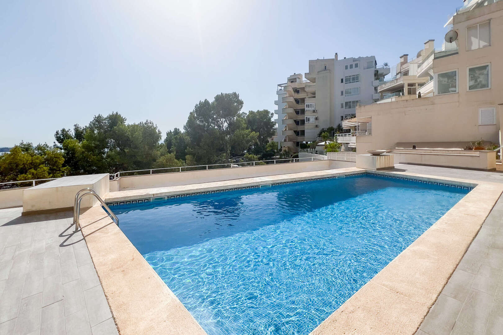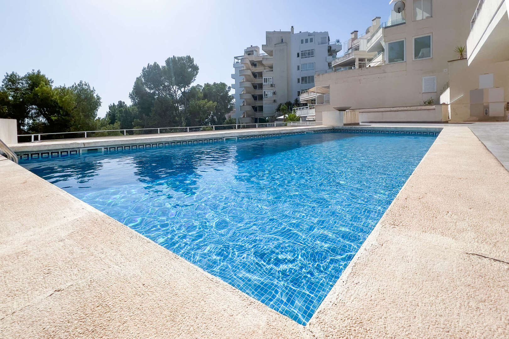 Die Wohnung befindet sich in einer gepflegten Anlage mit einem großzügigen Gemeinschaftspool, der an heißen Tagen für eine erfrischende Abkühlung sorgt. Ein privater Parkplatz bietet zusätzlichen Komfort und Sicherheit für Ihr Fahrzeug.