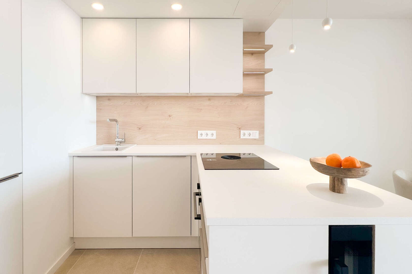 Die moderne, offene Küche ist mit einer hochwertigen Nolte-Küche ausgestattet, die keine Wünsche offen lässt. Hier finden Sie alles, was das Herz eines jeden Hobbykochs höher schlagen lässt. Die hochwertige Verarbeitung der Materialien setzt sich in den eleganten Einbauschränken fort, die nicht nur praktisch, sondern auch optisch ansprechend sind.
