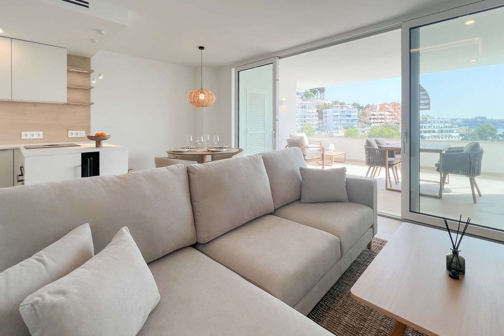 Ein absolutes Highlight der Wohnung ist die große Terrasse mit atemberaubendem Meerblick. Hier können Sie die warmen Sonnenstrahlen genießen, den Tag mit einem Frühstück im Freien beginnen oder den Abend bei einem Glas Wein ausklingen lassen, während Sie den Blick über das glitzernde Mittelmeer schweifen lassen.