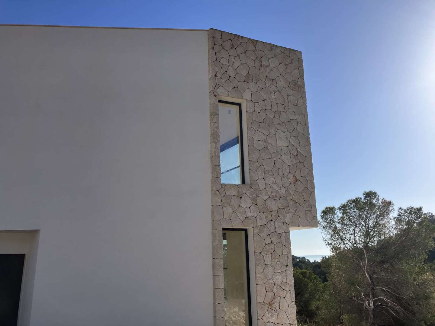 Von verschiedenen Bereichen des Hauses genießen Sie einen teilweise vorhandenen Meerblick, der das Wohngefühl zusätzlich aufwertet. Der Außenbereich bietet eine großzügige Terrasse sowie einen privaten Pool, ideal für entspannte Stunden im Freien. Abgerundet wird dieses exklusive Angebot durch eine Tiefgarage, die Platz für zwei Fahrzeuge bietet. Dieses Einfamilienhaus vereint stilvolles Design, Funktionalität und eine herausragende Lage in Costa den Blanes.