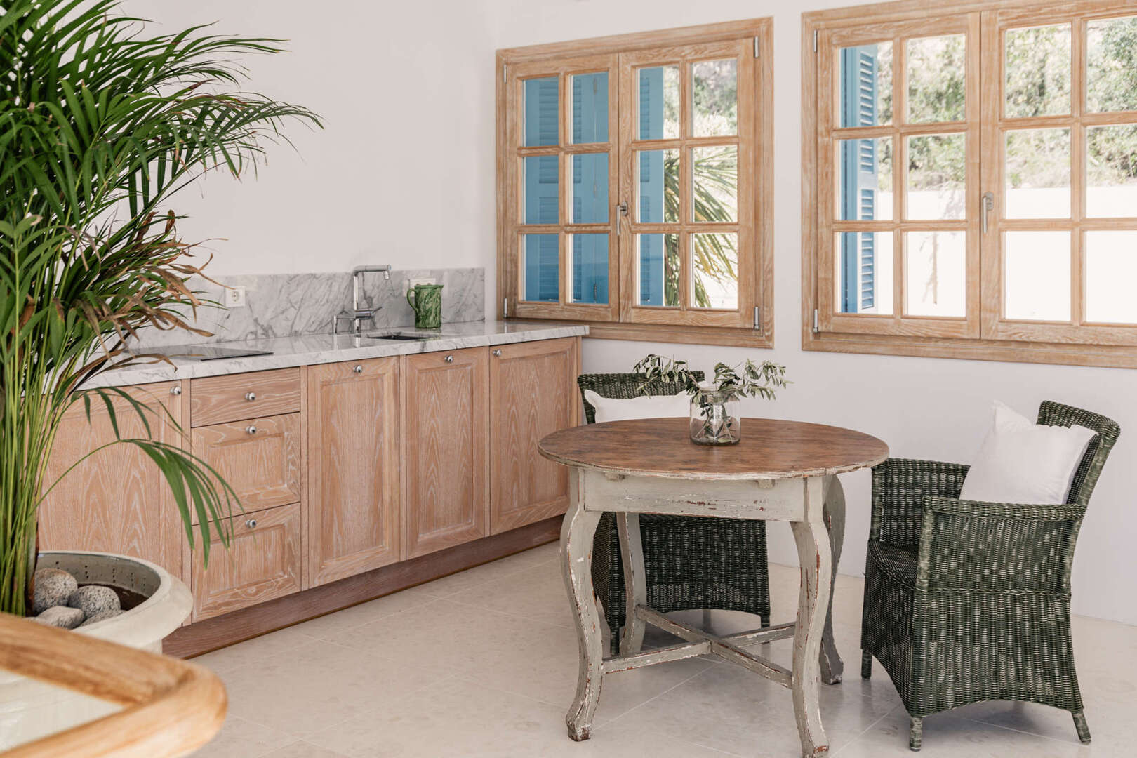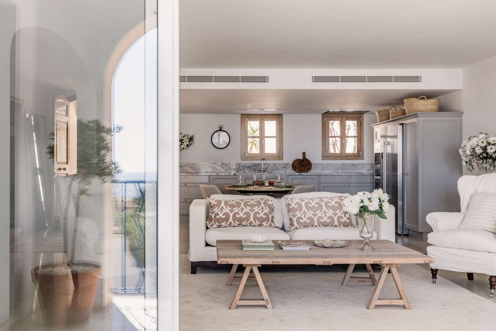 Die Ausstattung umfasst Fußbodenheizung über beide Etagen, eine Klimaanlage mit Wärmepumpe, voll ausgestattete Küchen sowie Handtuchwärmer in allen Badezimmern – für höchsten Wohnkomfort in einer der exklusivsten Lagen Mallorcas.