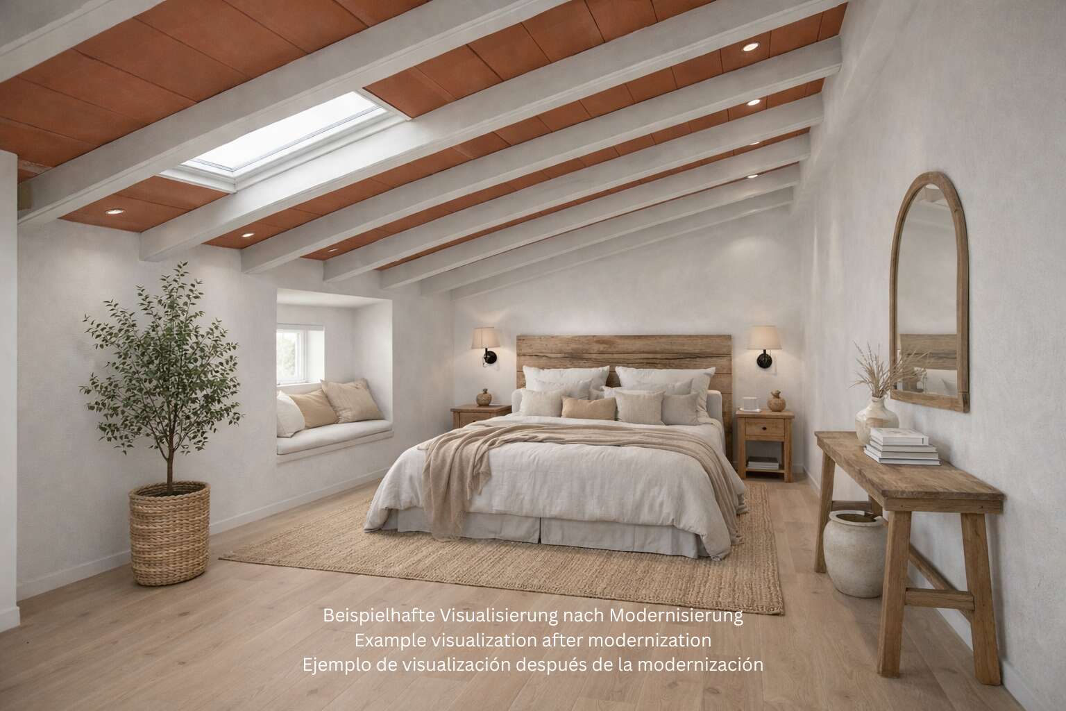 Das Projekt sieht eine umfassende Kernsanierung vor, um modernen Wohnkomfort mit traditionellem Charme zu vereinen. Im Obergeschoss entsteht ein stilvolles Studio als privater Rückzugsort, ausgestattet mit einem offenen Wohnbereich, separatem Schlafzimmer, Bad und einer großzügigen Panoramaterrasse mit spektakulärem Blick auf die Natur.