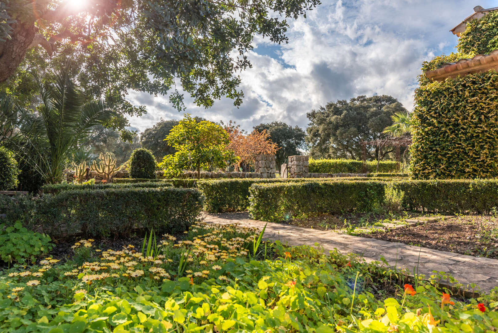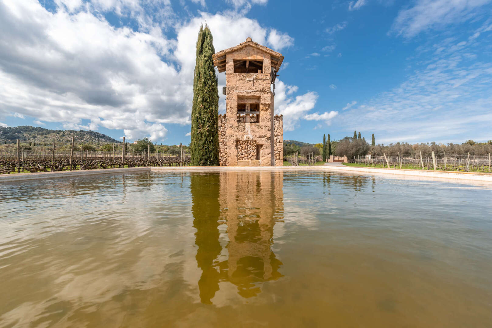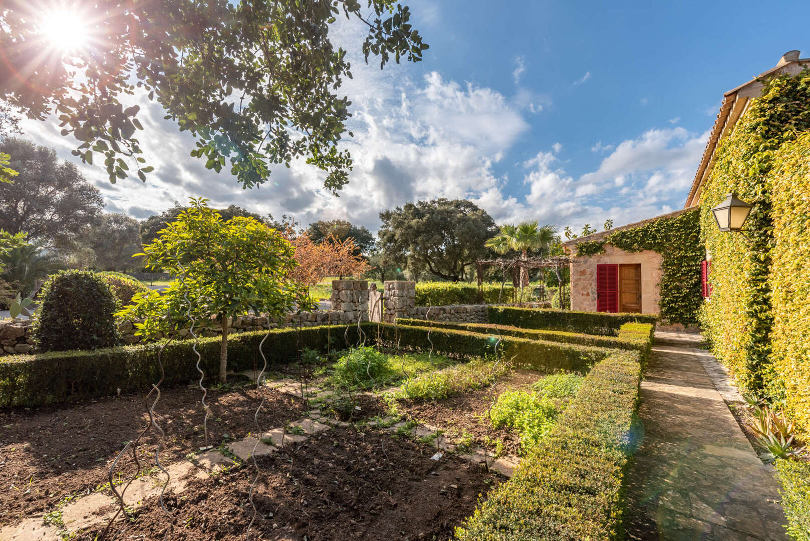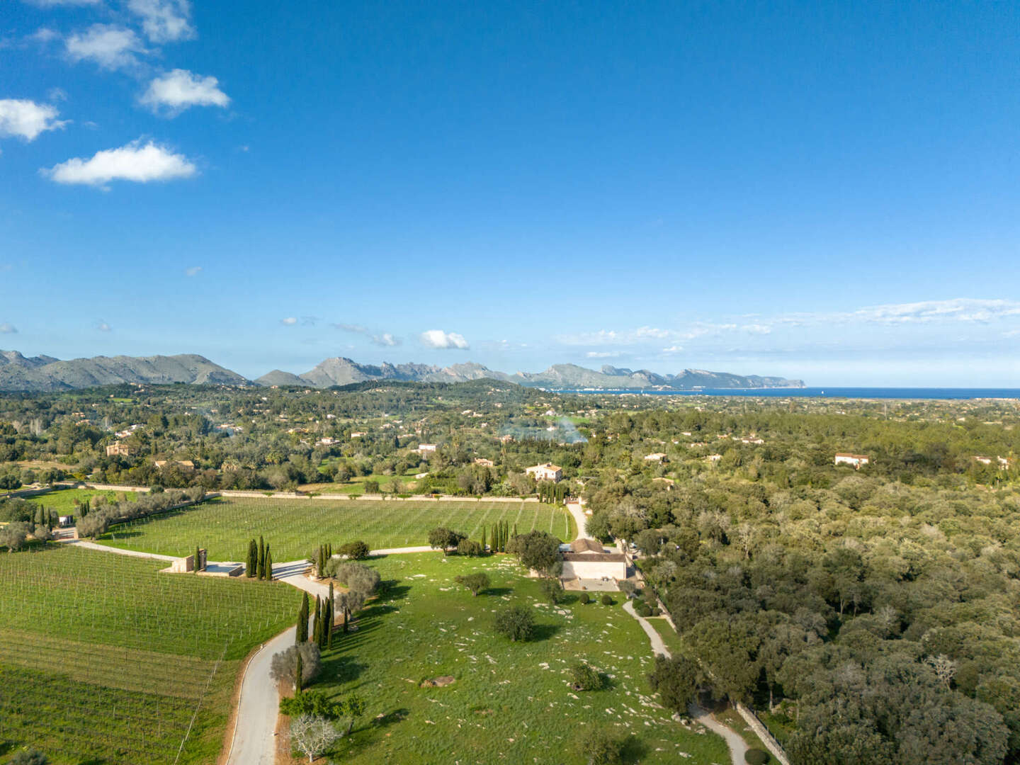 Mitten in der malerischen Hügellandschaft von Pollensa, im Norden Mallorcas, liegt dieses außergewöhnliche Weinberg-Anwesen, ein Rückzugsort für Natur- und Weinliebhaber. Auf einem 17 Hektar großen Grundstück vereint die Finca luxuriöses Wohnen mit mediterranem Charme und nachhaltiger Landwirtschaft. Sechs Hektar Agrarland beherbergen Weinberge, Oliven- und Zitronenbäume, während 11 Hektar privater Wald zu Spaziergängen und Reitausflügen einladen.