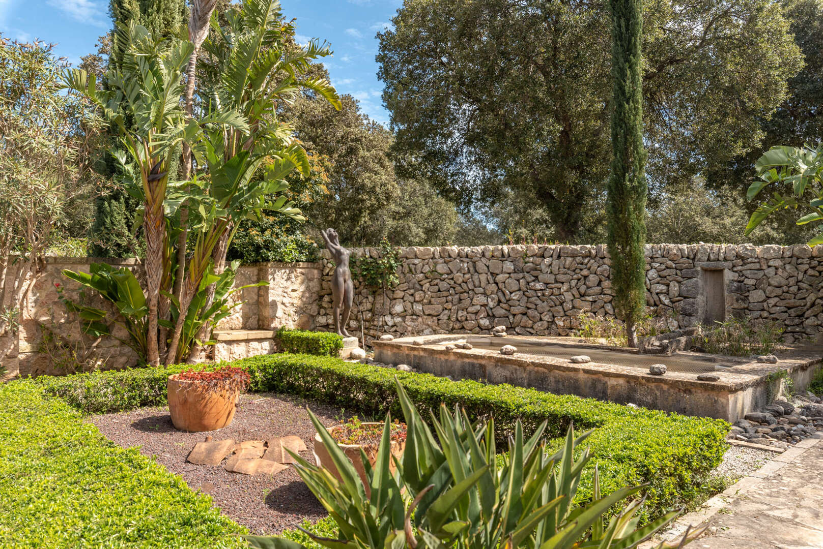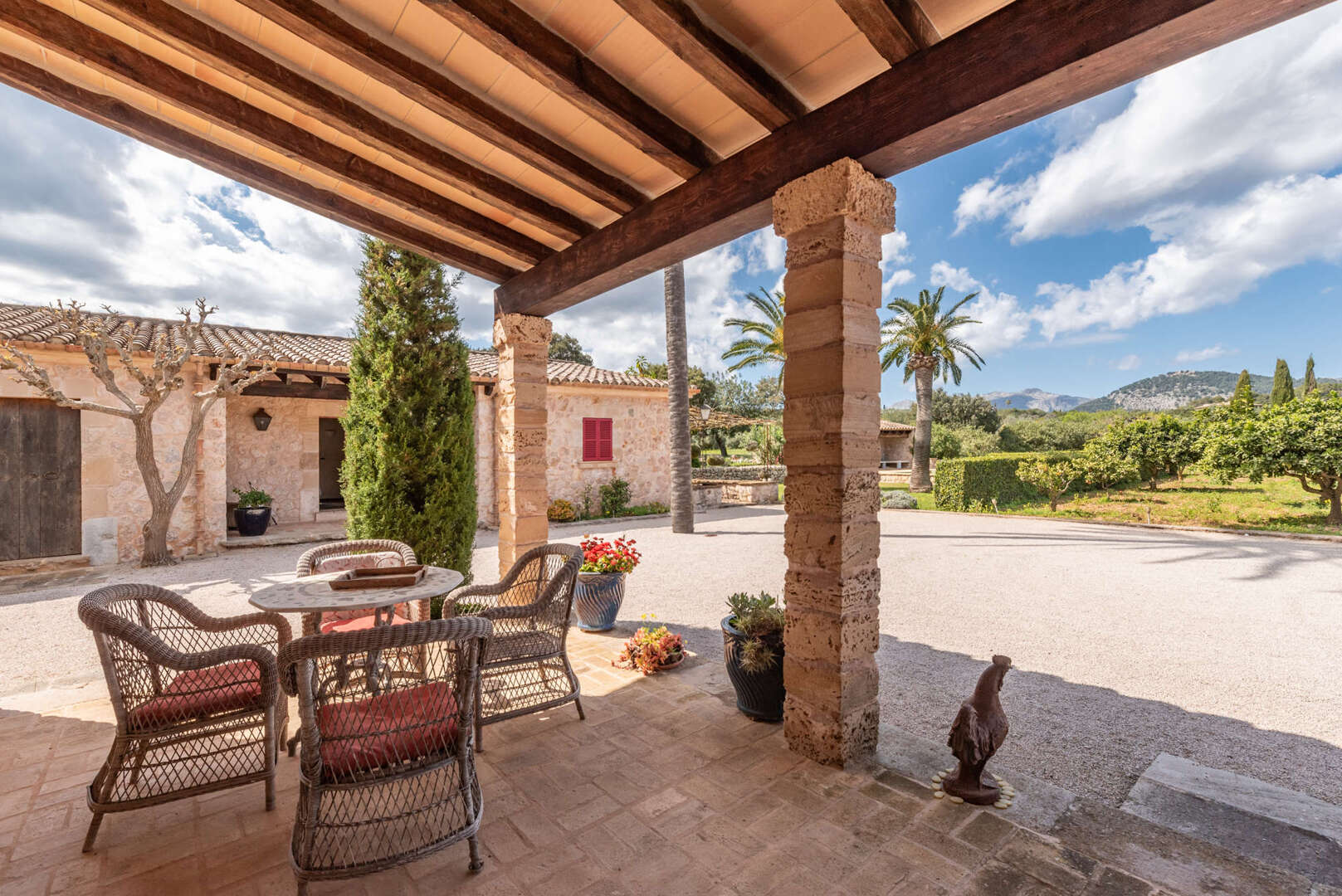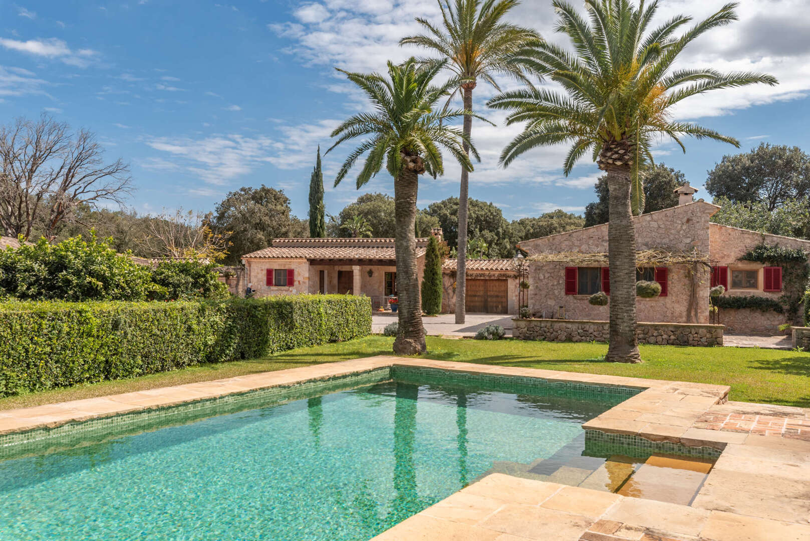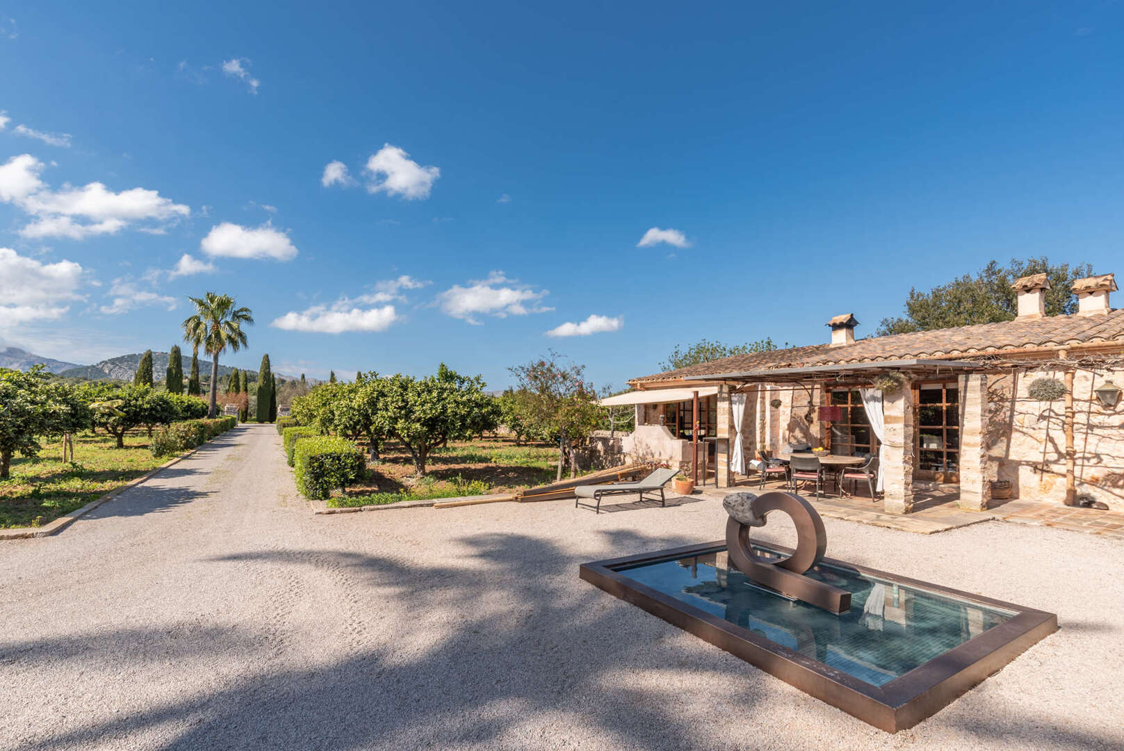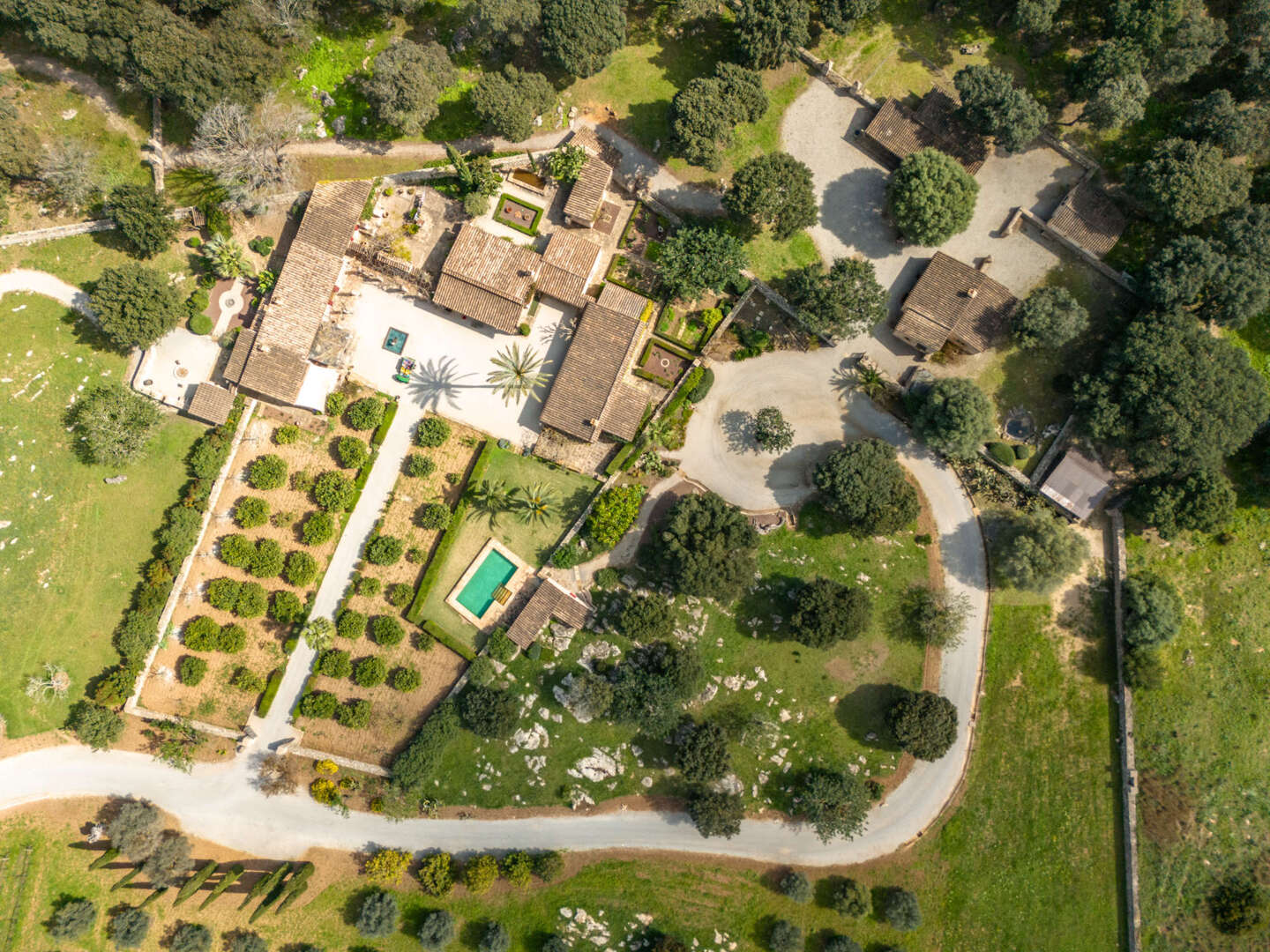 Die Finca ist mit Fußbodenheizung, Sauna, Swimmingpool sowie eigenem Brunnen- und Zisternensystem ausgestattet. Für Tierliebhaber gibt es Ställe für Pferde, Ziegen und Schweine, dazu Reitwege und Koppeln.
