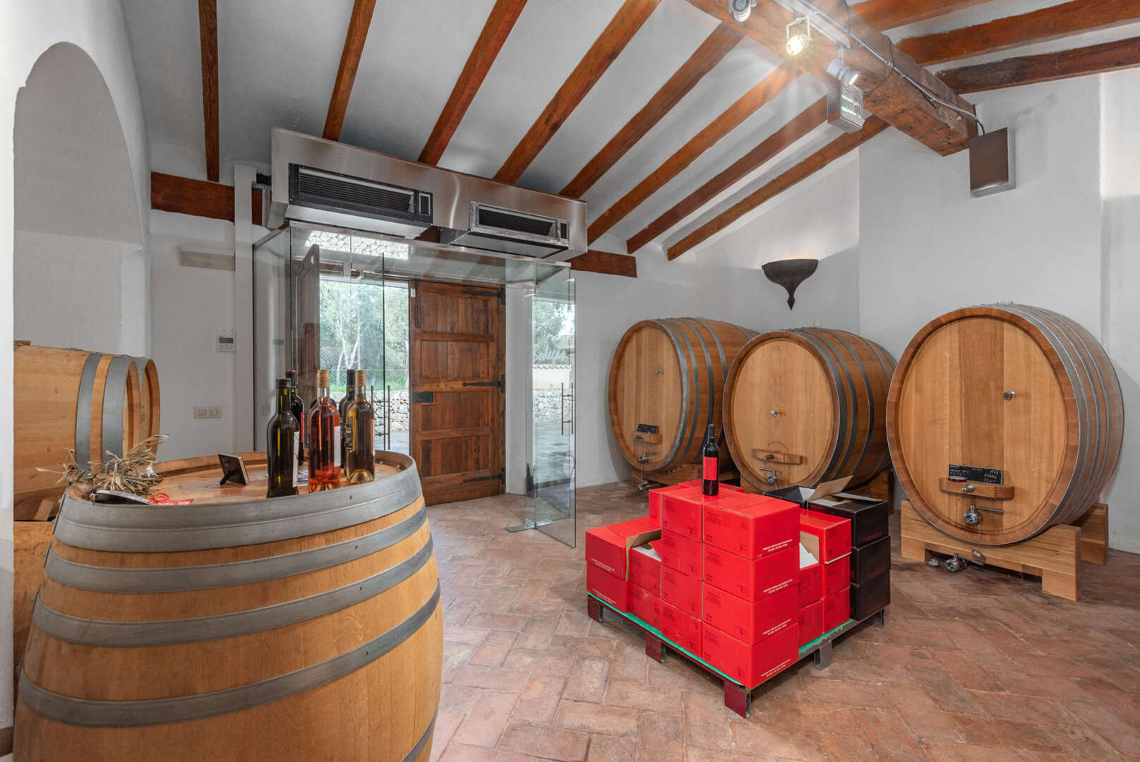 Ein Highlight ist das etablierte Weingut mit 2,5+ Hektar Rebfläche, eigener Bodega, Verkostungsterrasse, Herstellungs- und Lagerraum. Jährlich werden rund 15.000 Flaschen produziert, 60 % Rotwein, mit einem Lagerbestand von etwa 1 Million Euro. Die Weine sind international ausgezeichnet: Vivino 4,3, Google 4,4, Falstaff 93 Punkte, über 30 internationale Preise, darunter Mundus Vini. Ergänzt wird die Landwirtschaft durch die Olivenbäume mit eigener Ölproduktion, wodurch ein Jahresumsatz von bis zu 400.000 € erzielt werden kann.