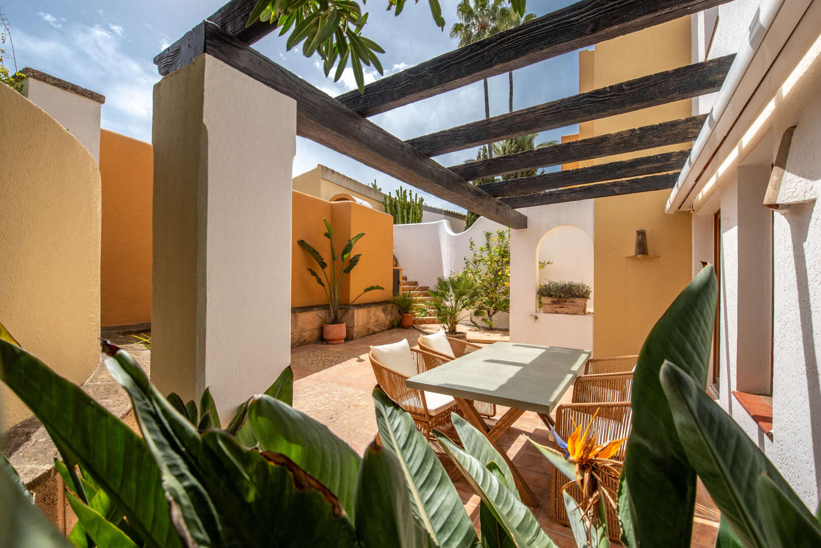 In erstklassiger Lage direkt am Golfplatz erwartet Sie dieses geschmackvoll kernsanierte Reihenhaus mit einer bebaute Fläche von ca. 200 m². Die Immobilie besticht durch ihre traditionelle mallorquinische Architektur und vereint gekonnt mediterranen Charme mit modernem Wohnkomfort.