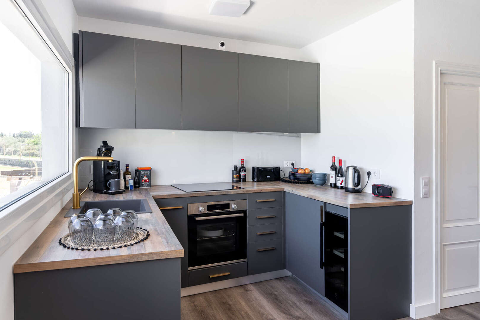 * voll ausgestattet mit Markengeräten und Weinkühlschrank
