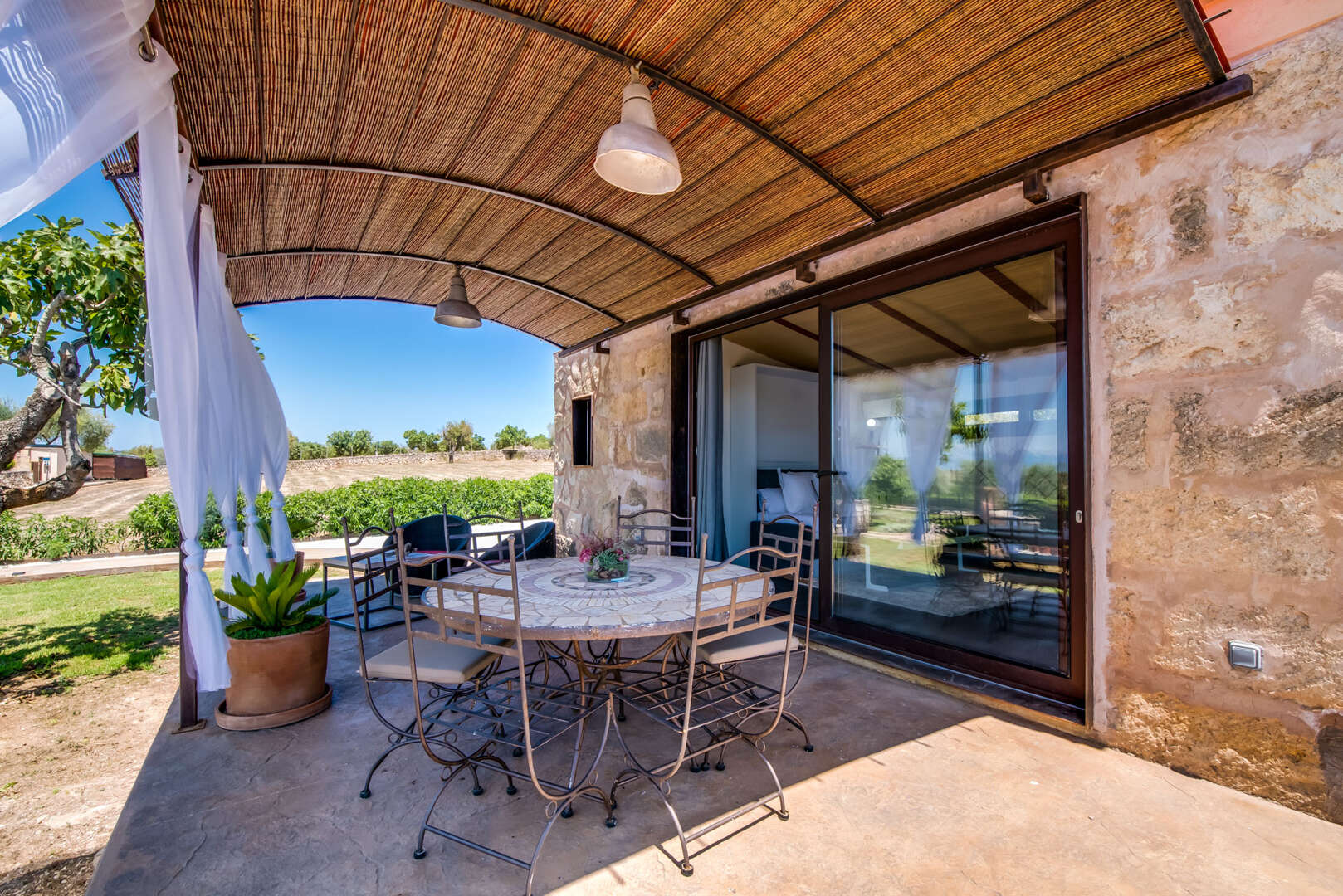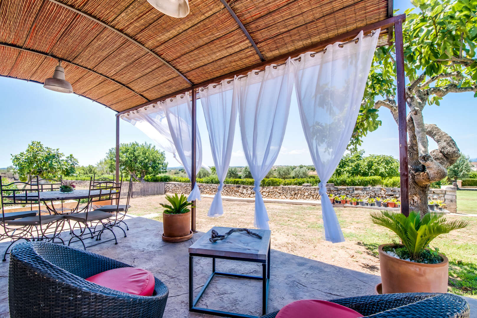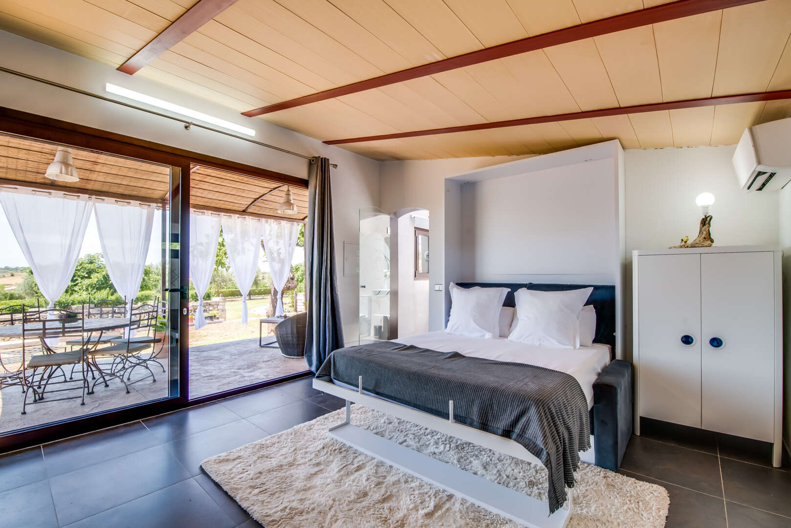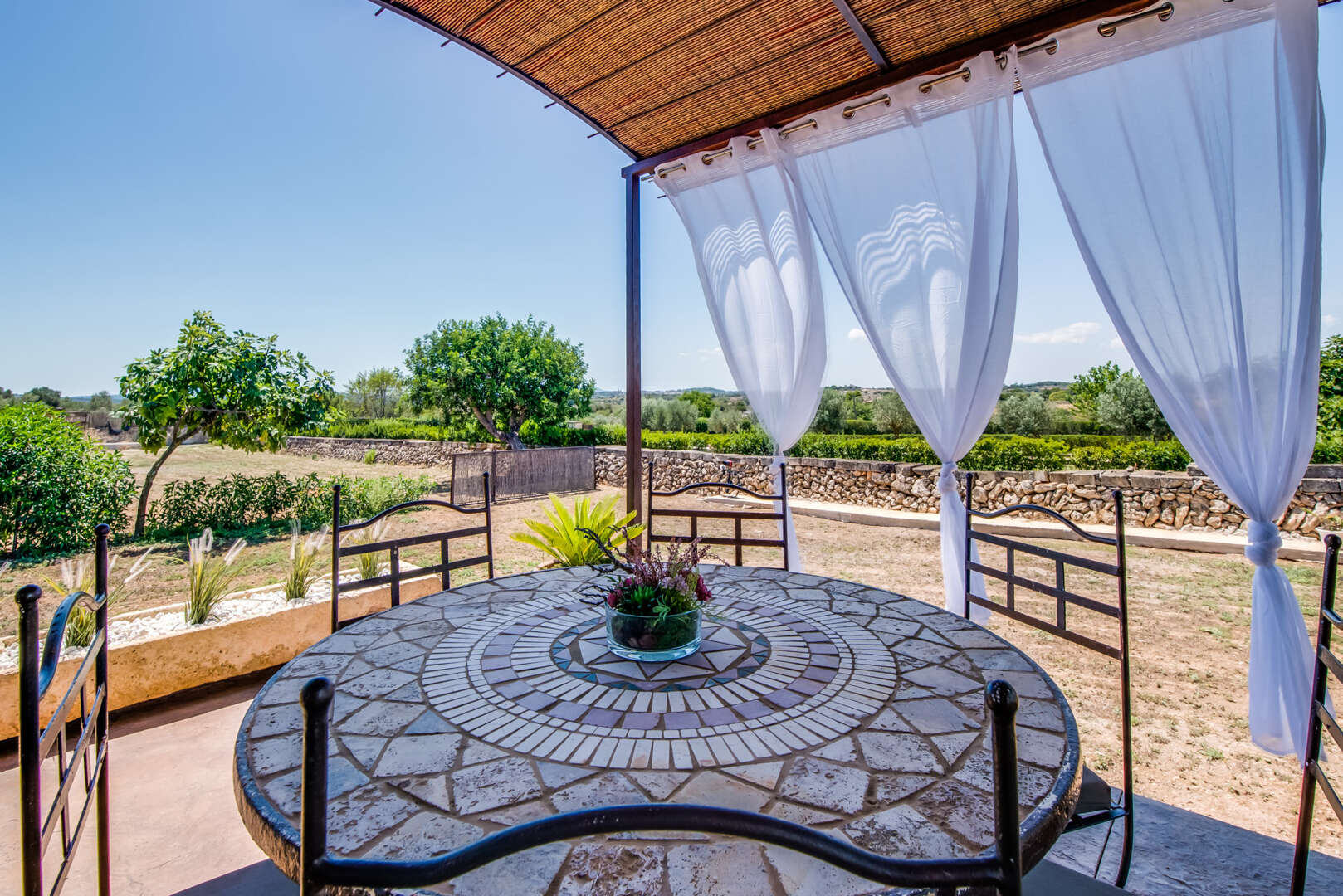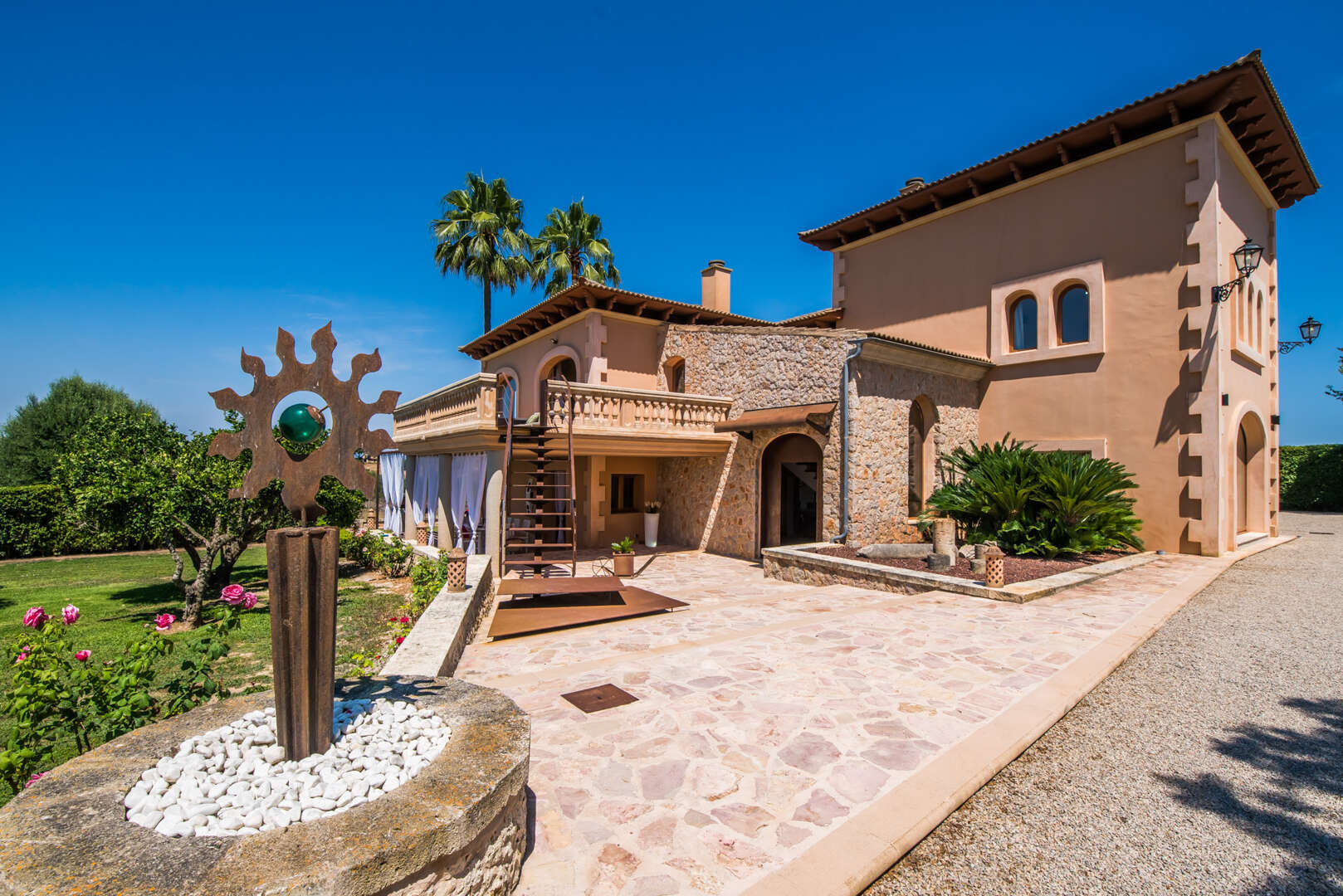 Die Zufahrt? Perfekt. Kein holpriger Feldweg, absolute Ruhe, Natur pur und ein Gefühl von grenzenloser Freiheit. Schon beim Einfahren eröffnet sich ein Panorama, das schwer in Worte zu fassen ist: Das elegante Haupthaus, ein einladender Chill-out-Bereich am großen Pool, das separate Gästehaus, herrliche Gartenanlagen und liebevoll gestaltete Rückzugsorte lassen sofort ein tiefes Gefühl von "Ankommen" entstehen.
