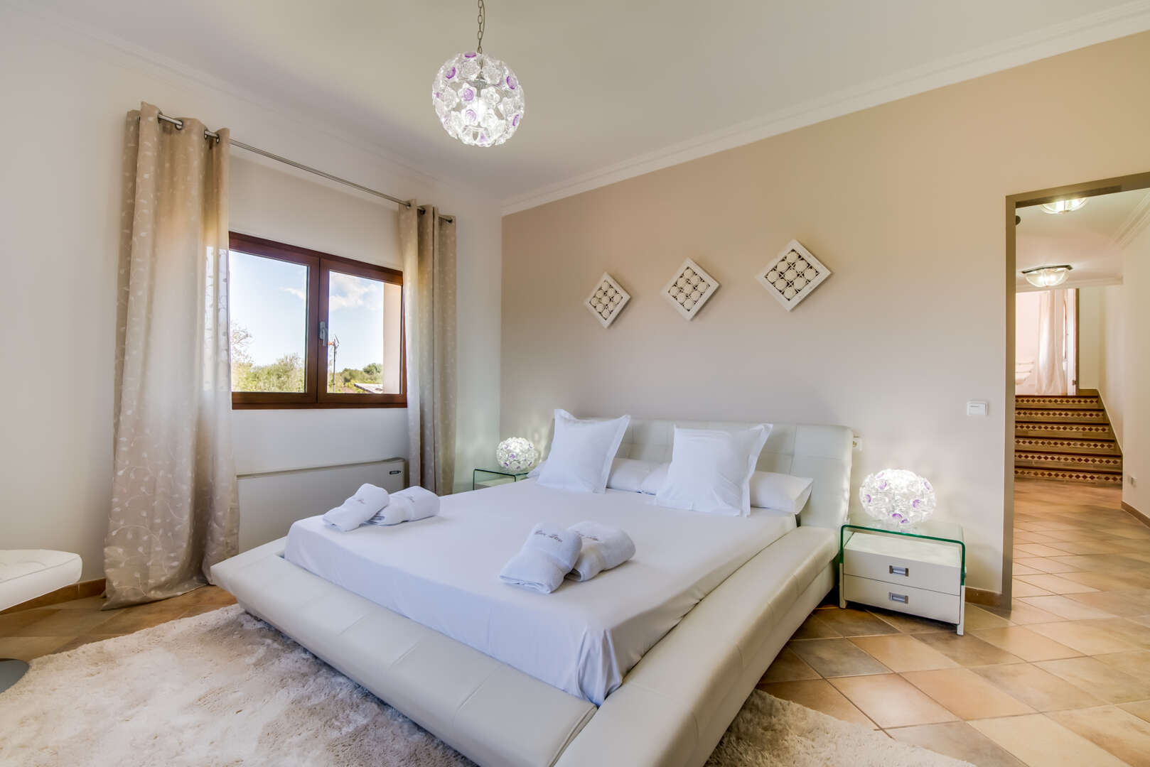 Eine stilvolle Treppe führt ins Obergeschoss, wo ein lichtdurchfluteter Wohnbereich zum Verweilen einlädt. Drei Schlafzimmer – darunter ein luxuriöses Masterschlafzimmer mit Bad en Suite – bieten höchsten Komfort. Die beiden weiteren Doppelschlafzimmer teilen sich ein elegantes, großzügiges Badezimmer.