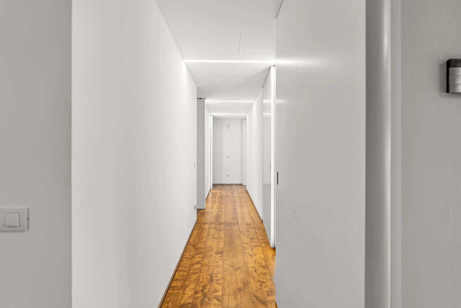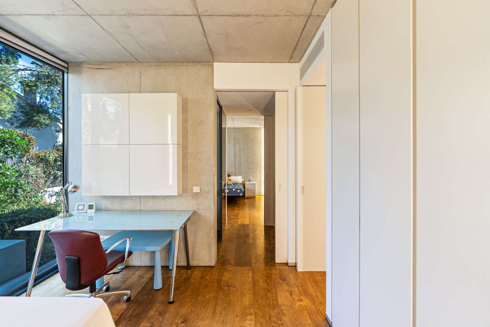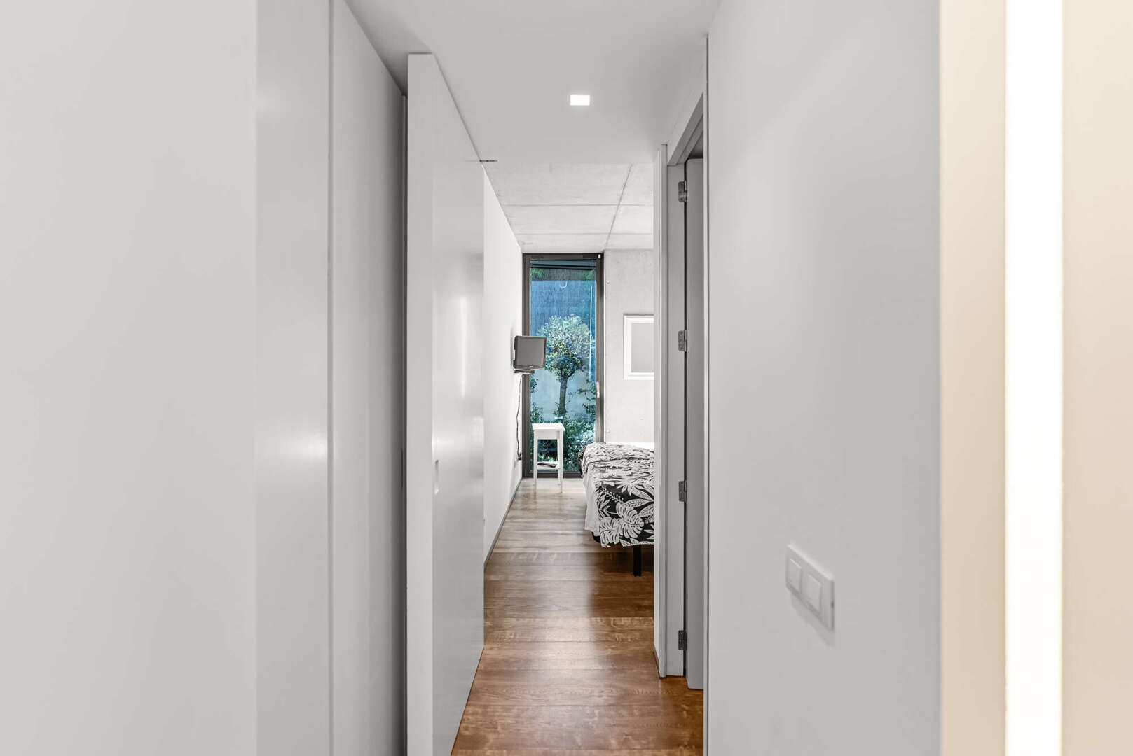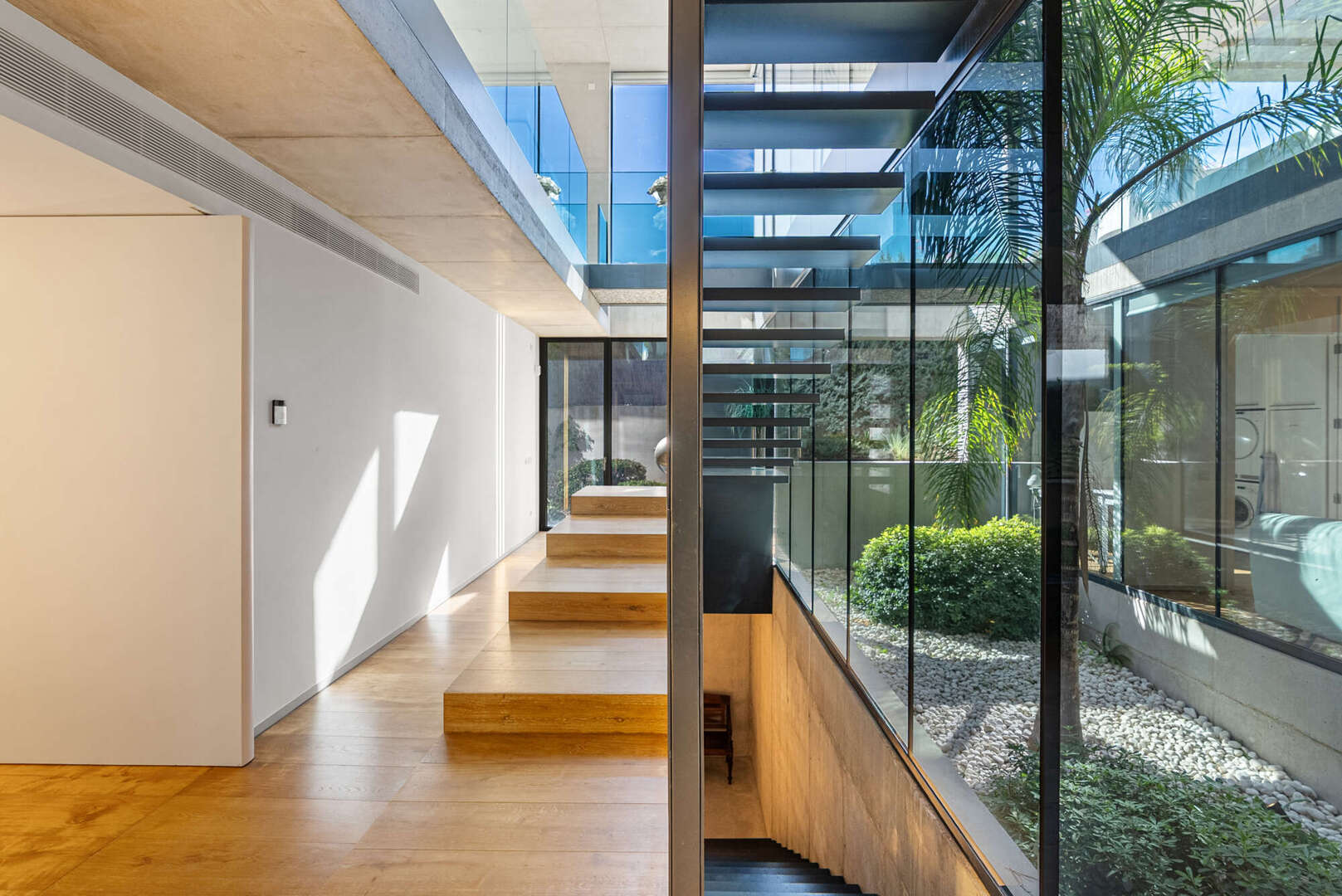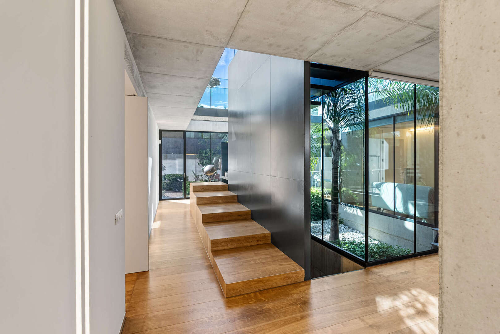 Schon beim Betreten eröffnet sich ein Wohngefühl von Weite und Licht. Die Ebenen sind harmonisch miteinander verbunden, klare Linien und großzügige Raumhöhen schaffen eine Atmosphäre voll zeitloser Ästhetik. Im Hauptwohnbereich erwartet den Bewohner ein exquisiter Master Bedroom mit privater Ankleide und ensuite Bad – ein Rückzugsort, der durch seine feinsinnige Gestaltung Ruhe und Geborgenheit ausstrahlt. Drei weitere, elegant ausgestattete Schlafzimmer sowie zwei stilvolle Bäder bieten höchsten Komfort für Familie und Gäste. Eine gemütliche TV-Lounge, die sich ebenso als Gästezimmer oder Fitnessbereich eignet, erweitert das vielseitige Raumensemble, während praktische Nebenräume diskret Funktionalität sicherstellen.