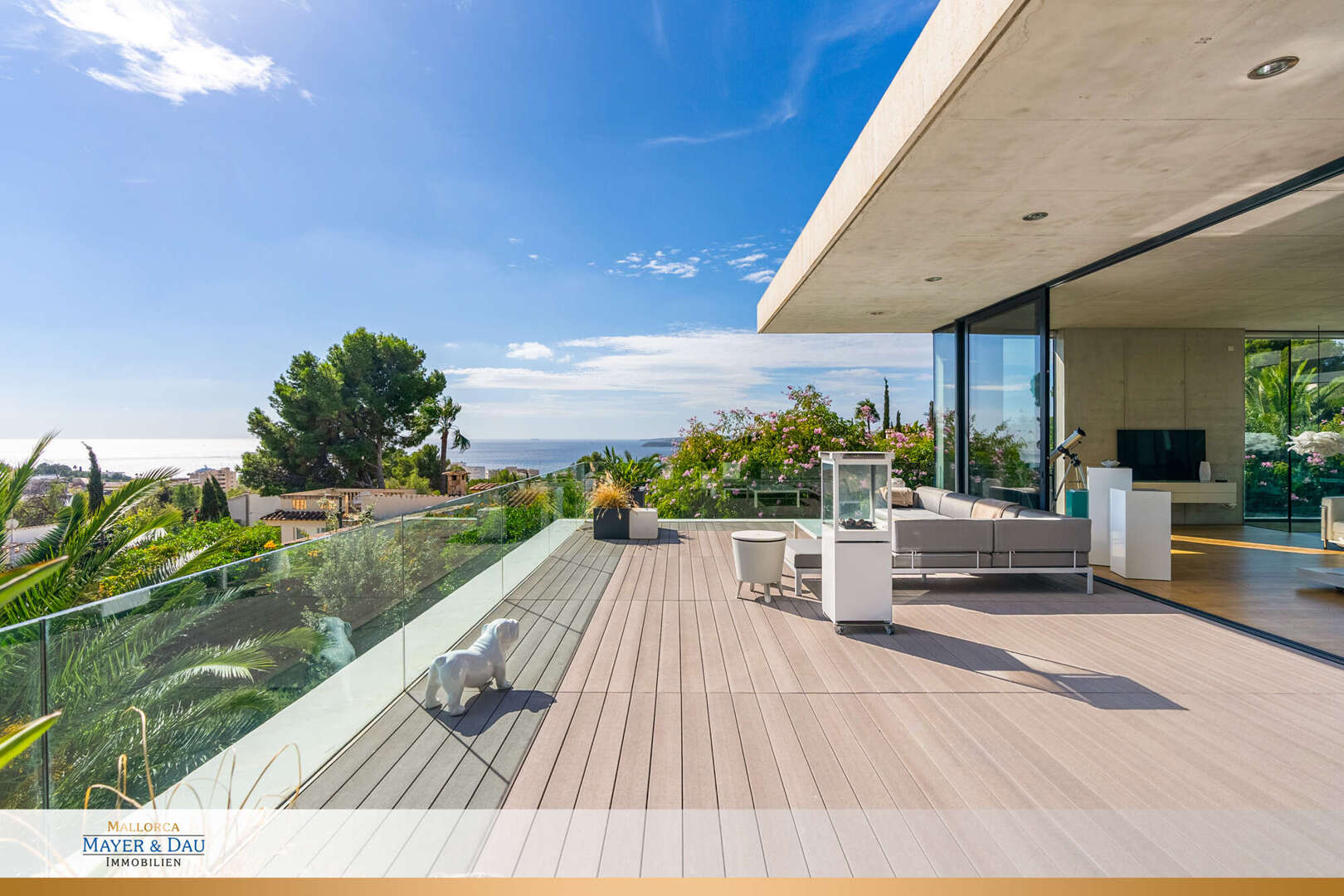- Raumhohe Fensterfronten und Sonnenterrasse