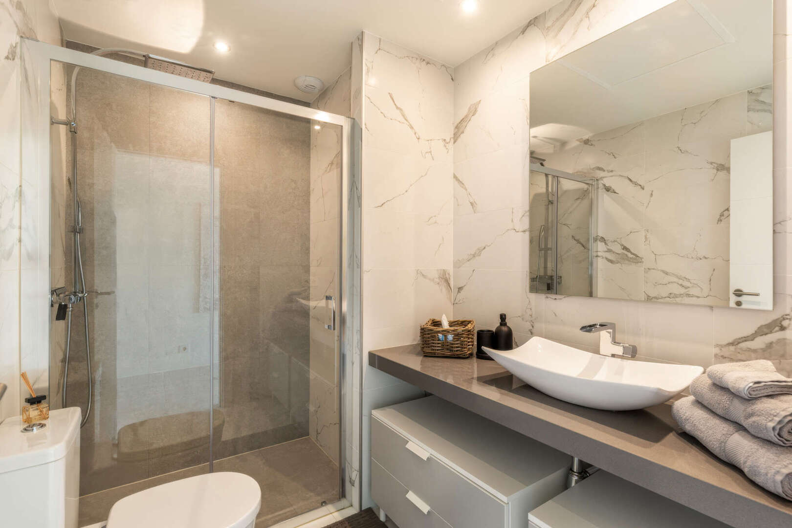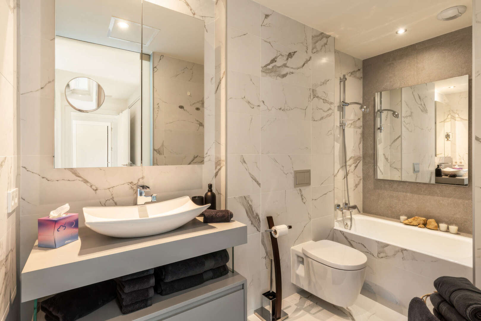 Für ganzjährigen Wohnkomfort sorgen eine Klimaanlage sowie eine Fußbodenheizung über eine energieeffiziente Luft/Wasser-Wärmepumpe.