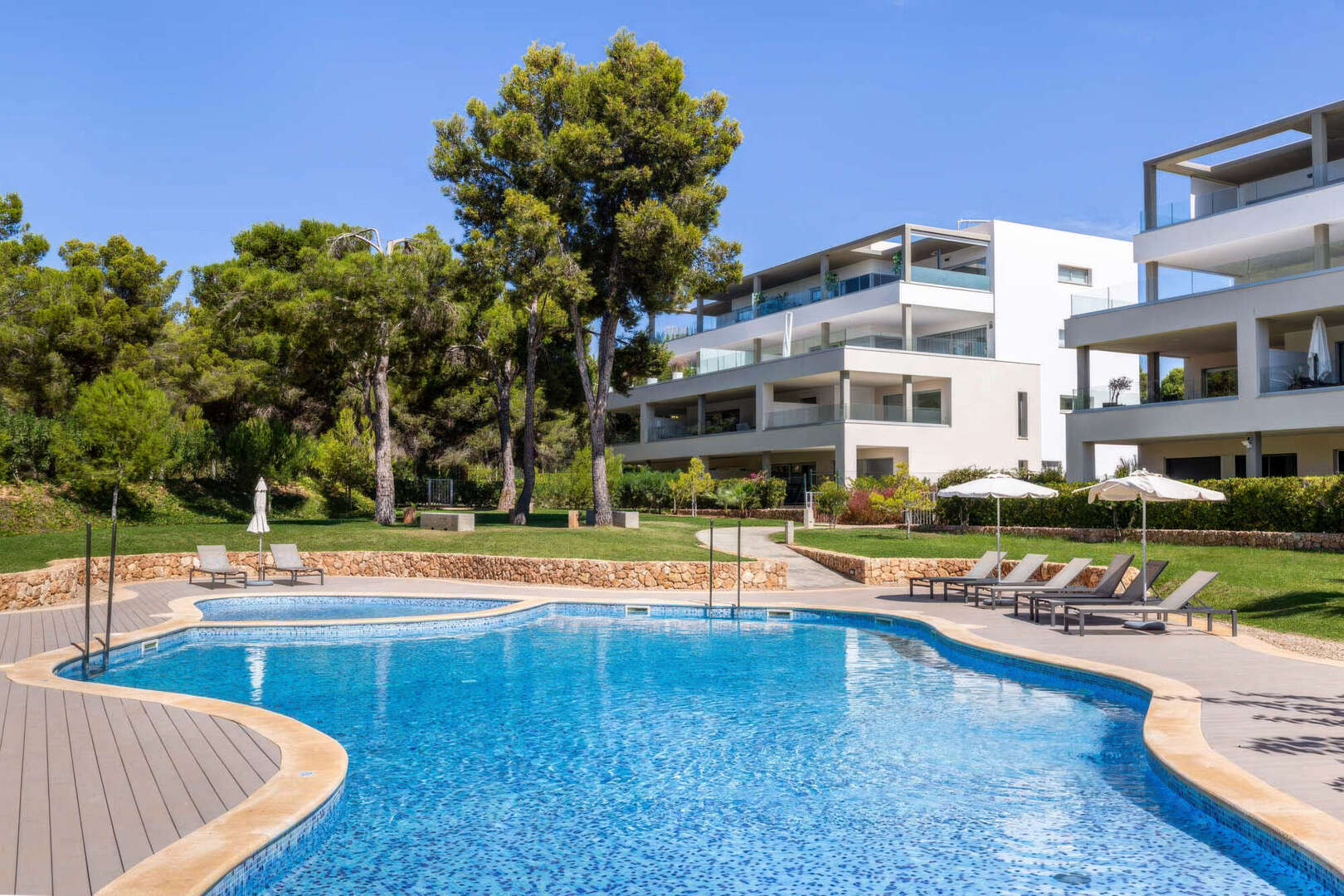 In begehrter Lage von Nova Santa Ponsa, nahe dem renommierten Golfplatz Santa Ponsa, erwartet Sie dieses moderne Penthouse in einer 2019 fertiggestellten und äußerst gepflegten Wohnanlage mit zwei großzügigen Gemeinschaftspools.